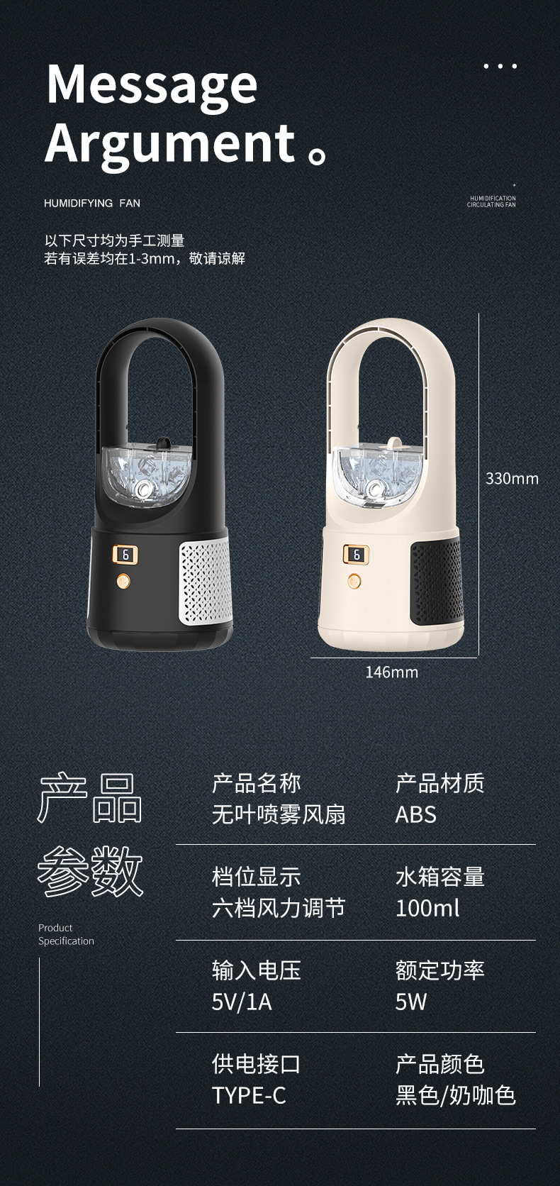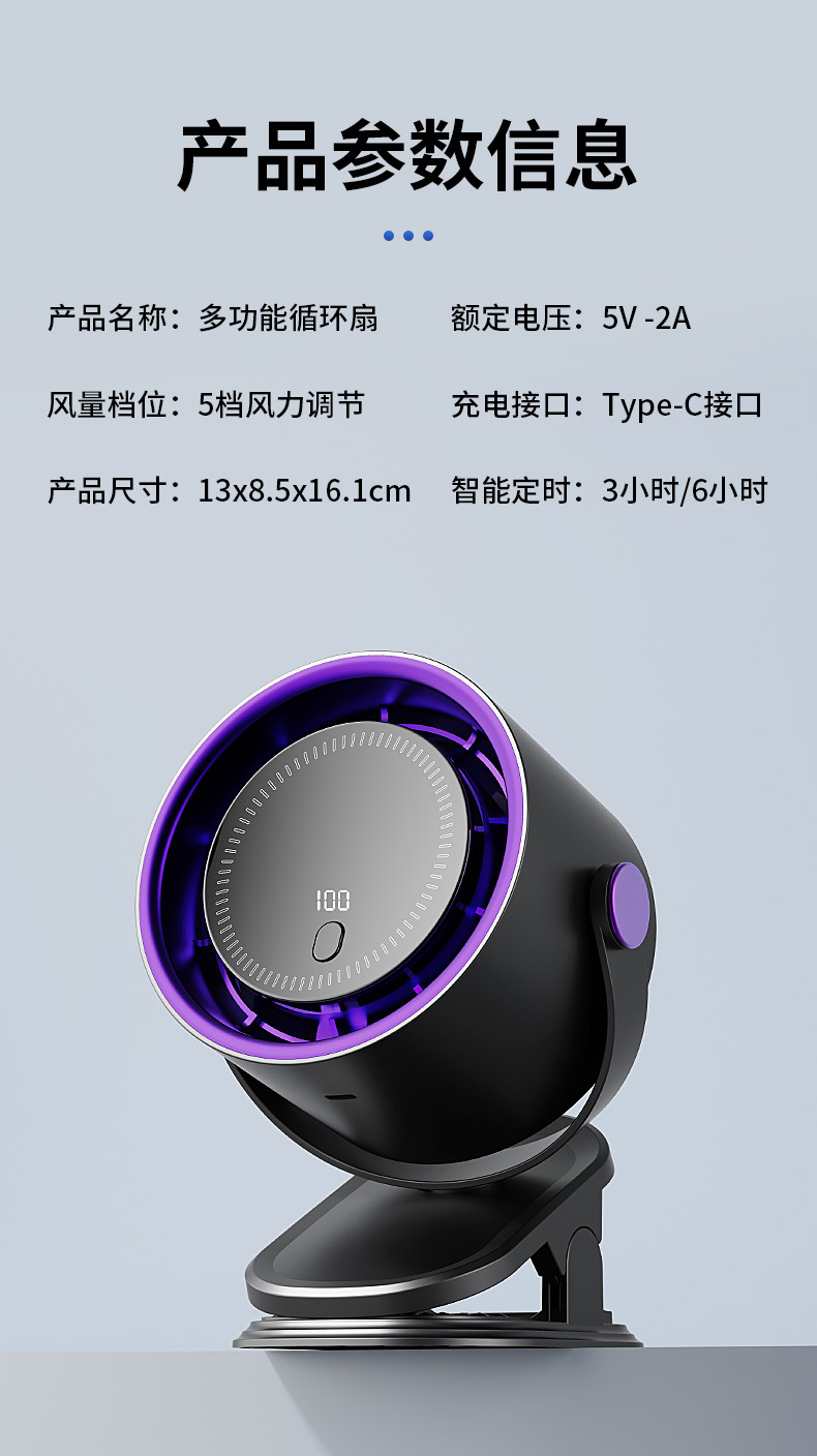 新款空气循环扇大风量家用折叠风扇加湿户外电风扇手持灯光风扇