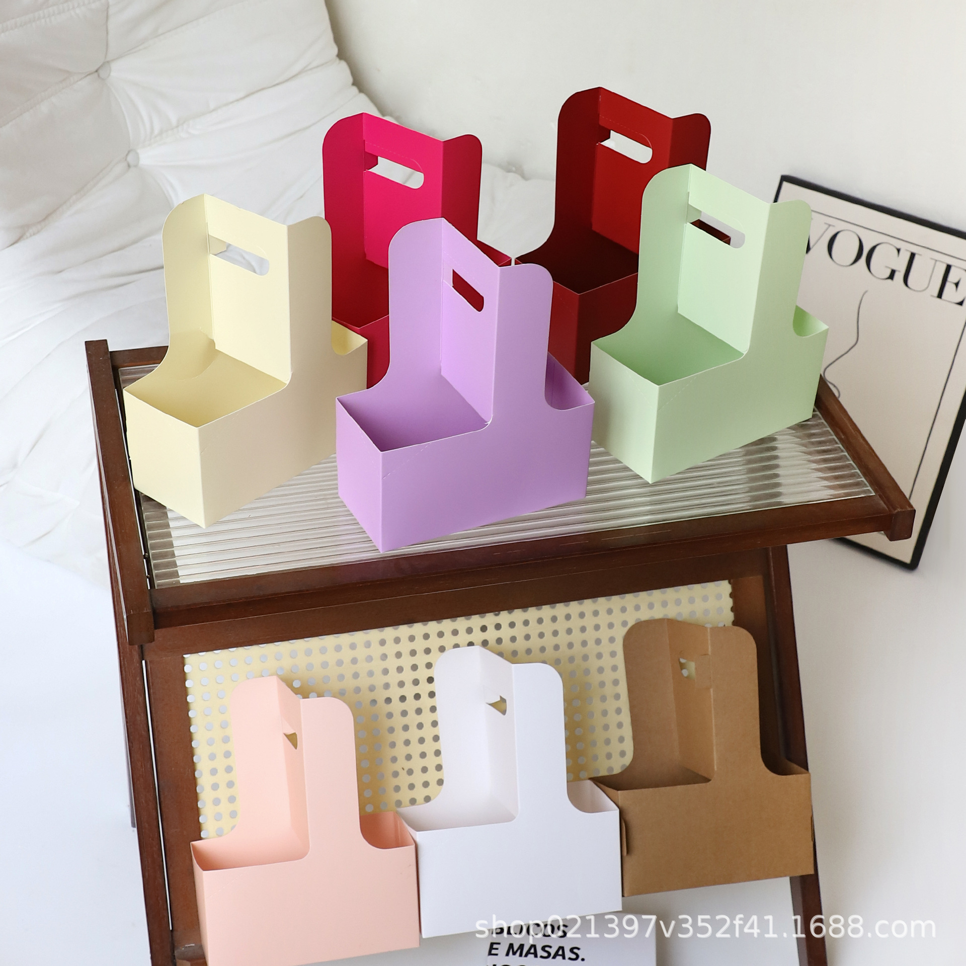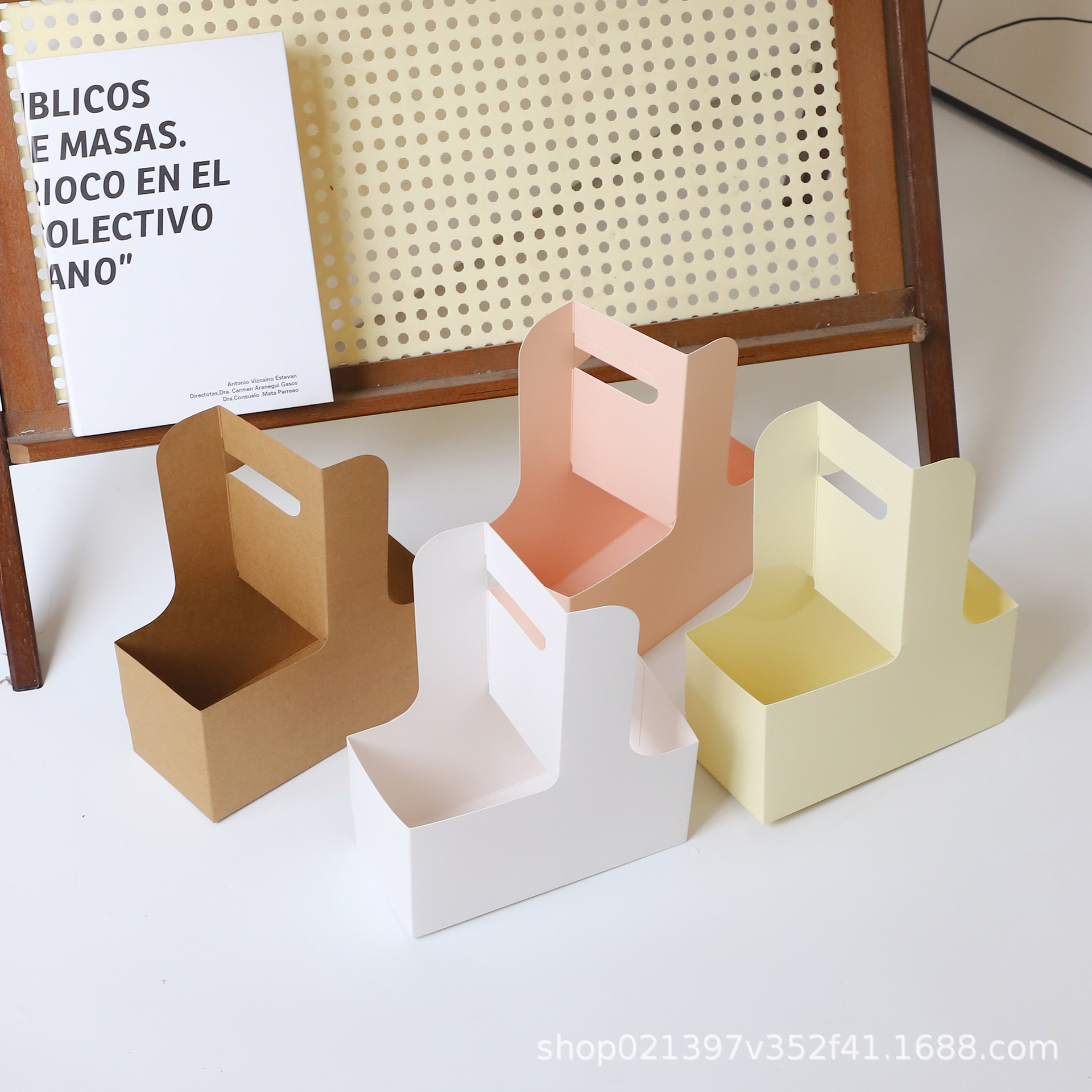 白卡手提花盒咖啡奶茶外带包装盒鲜花礼盒炫彩柔情手提花盒