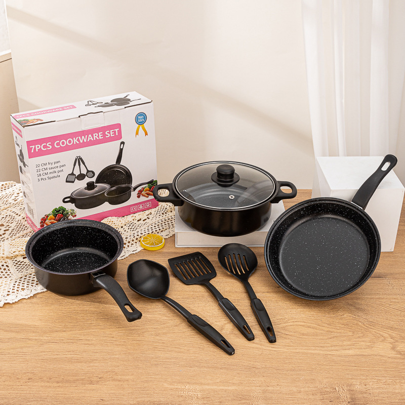 外贸出口 新品套装炒锅不粘铁锅炖锅家用不粘锅七件套中式
