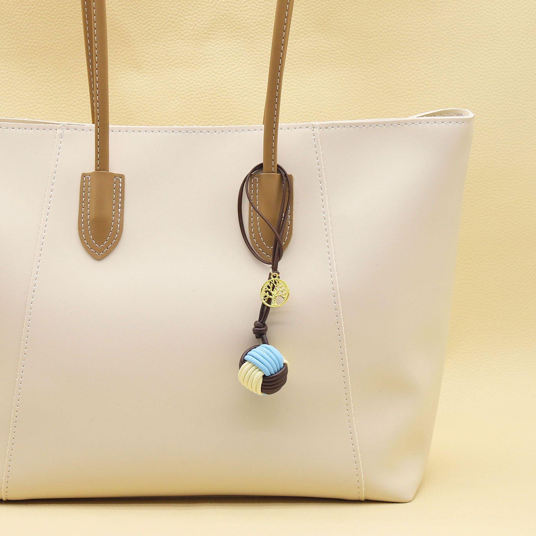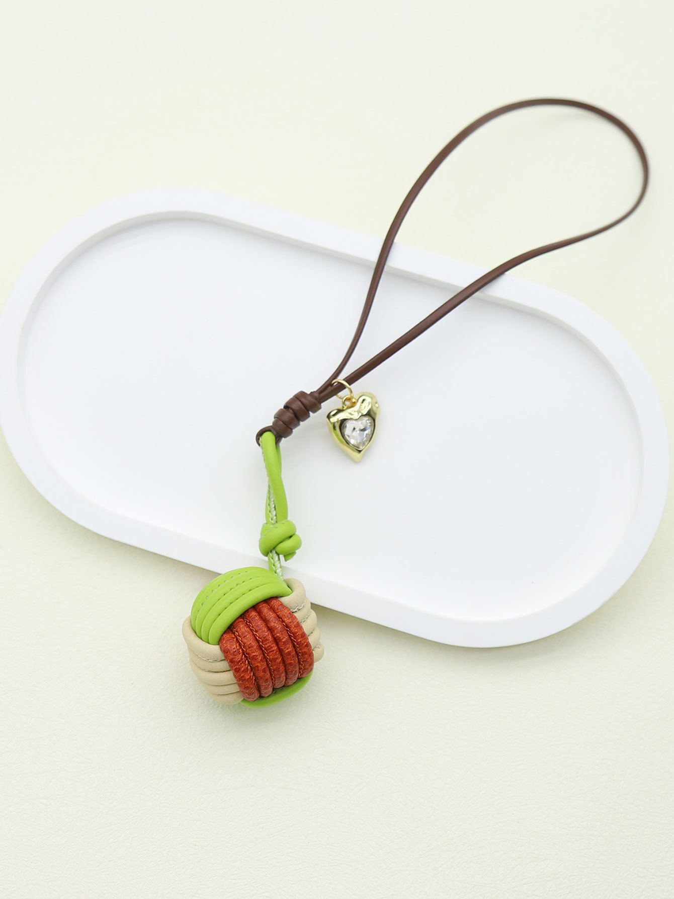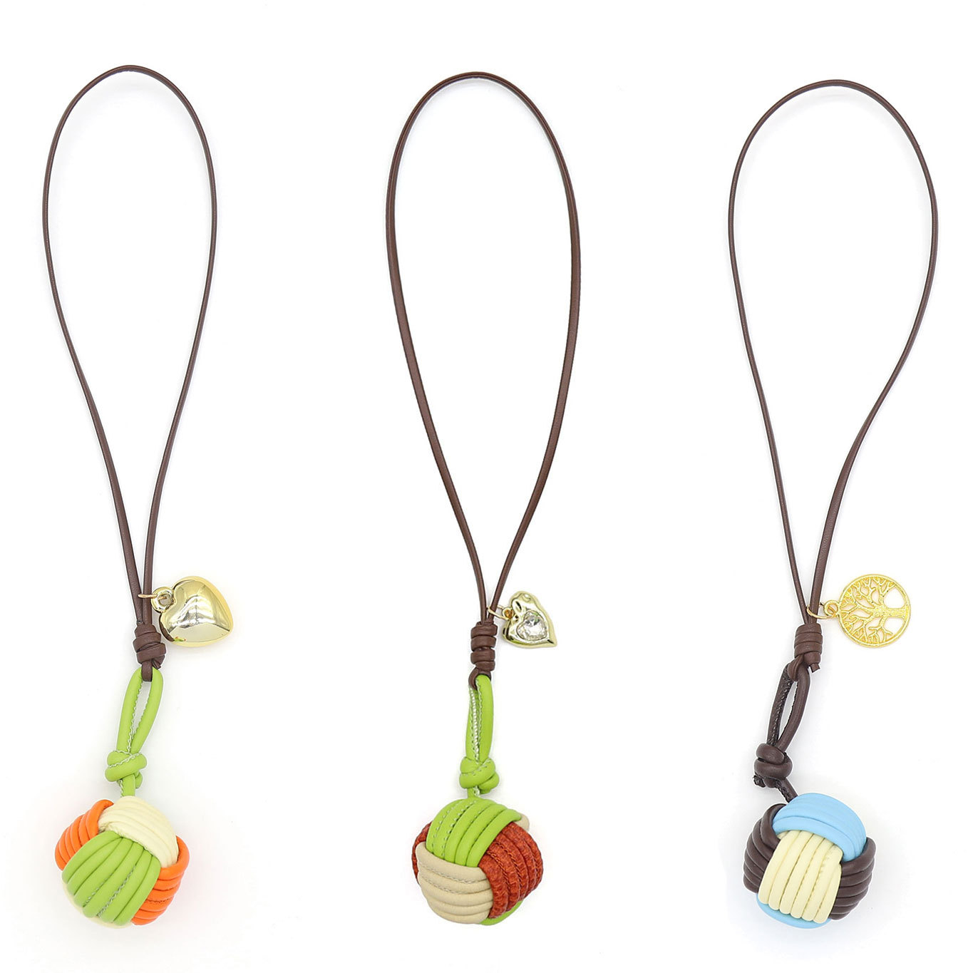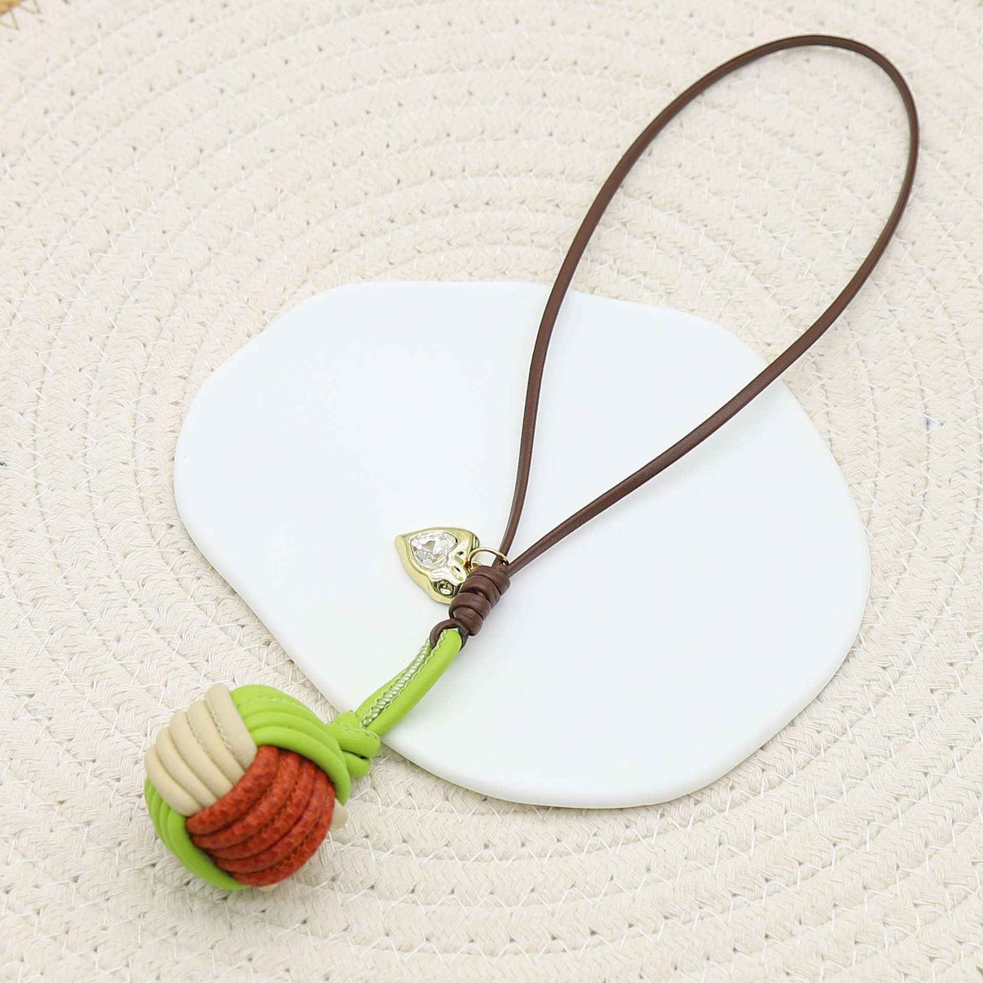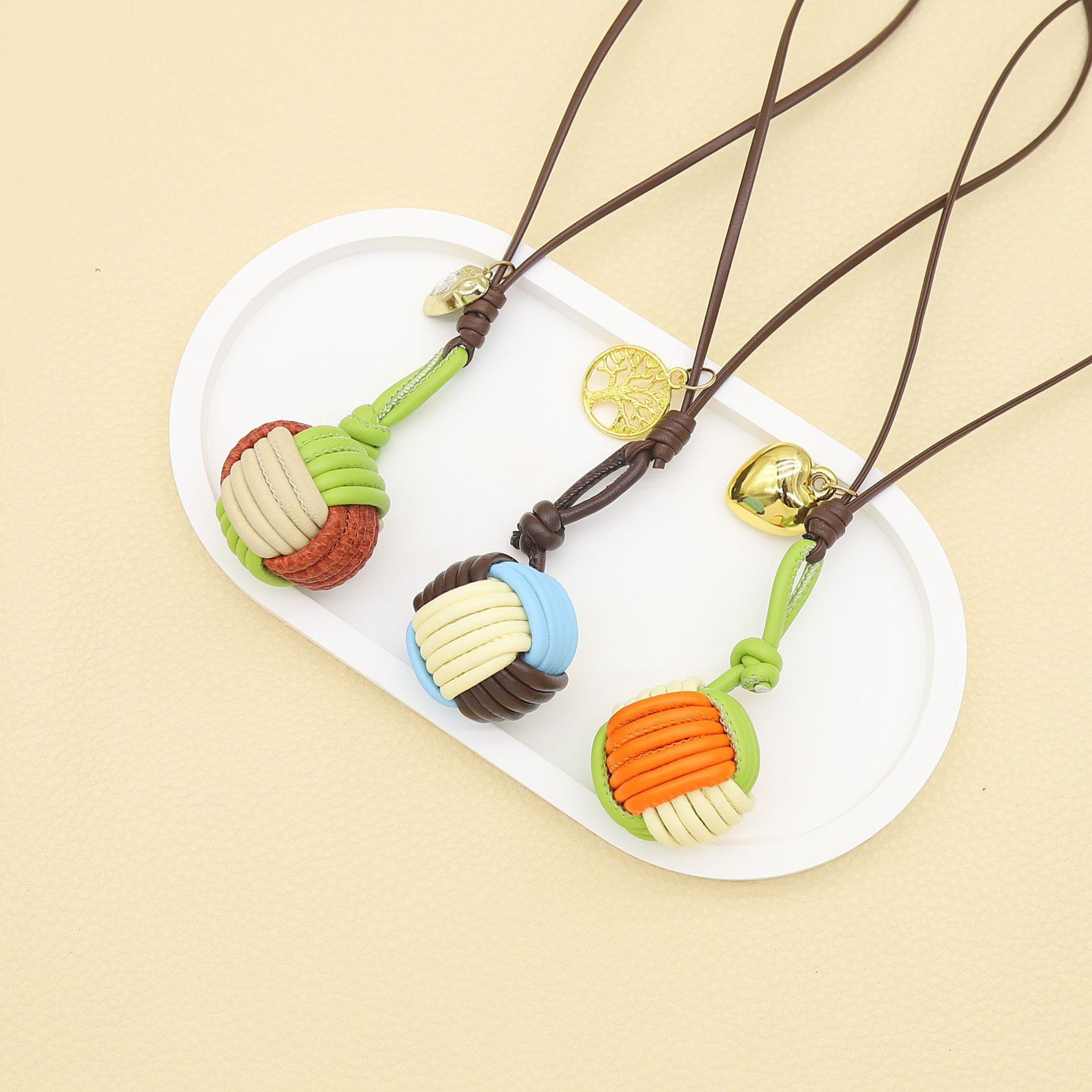 miu系撞色马卡龙纯手工编织PU皮绳球形钥匙扣手机挂件包挂配饰