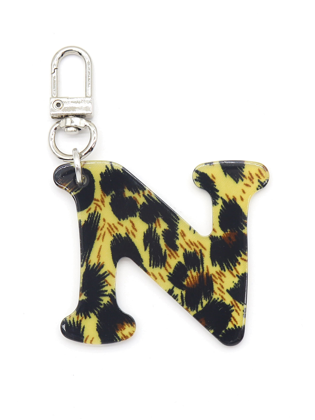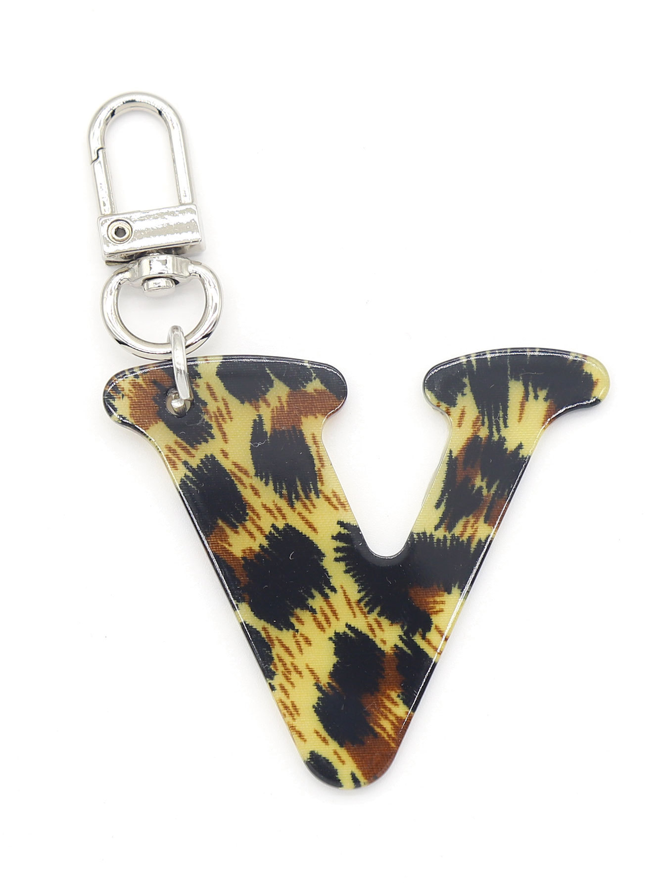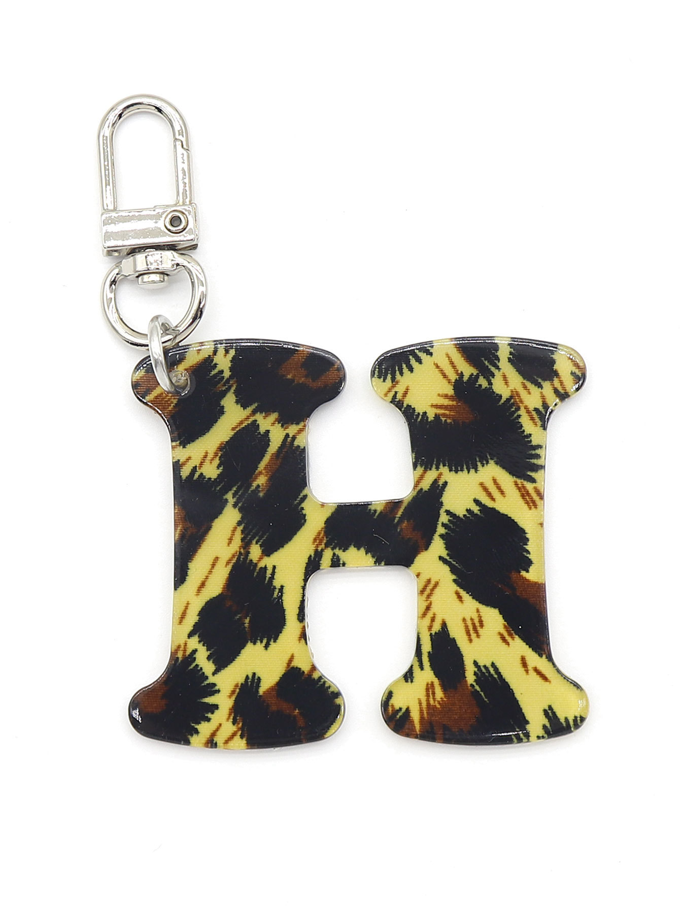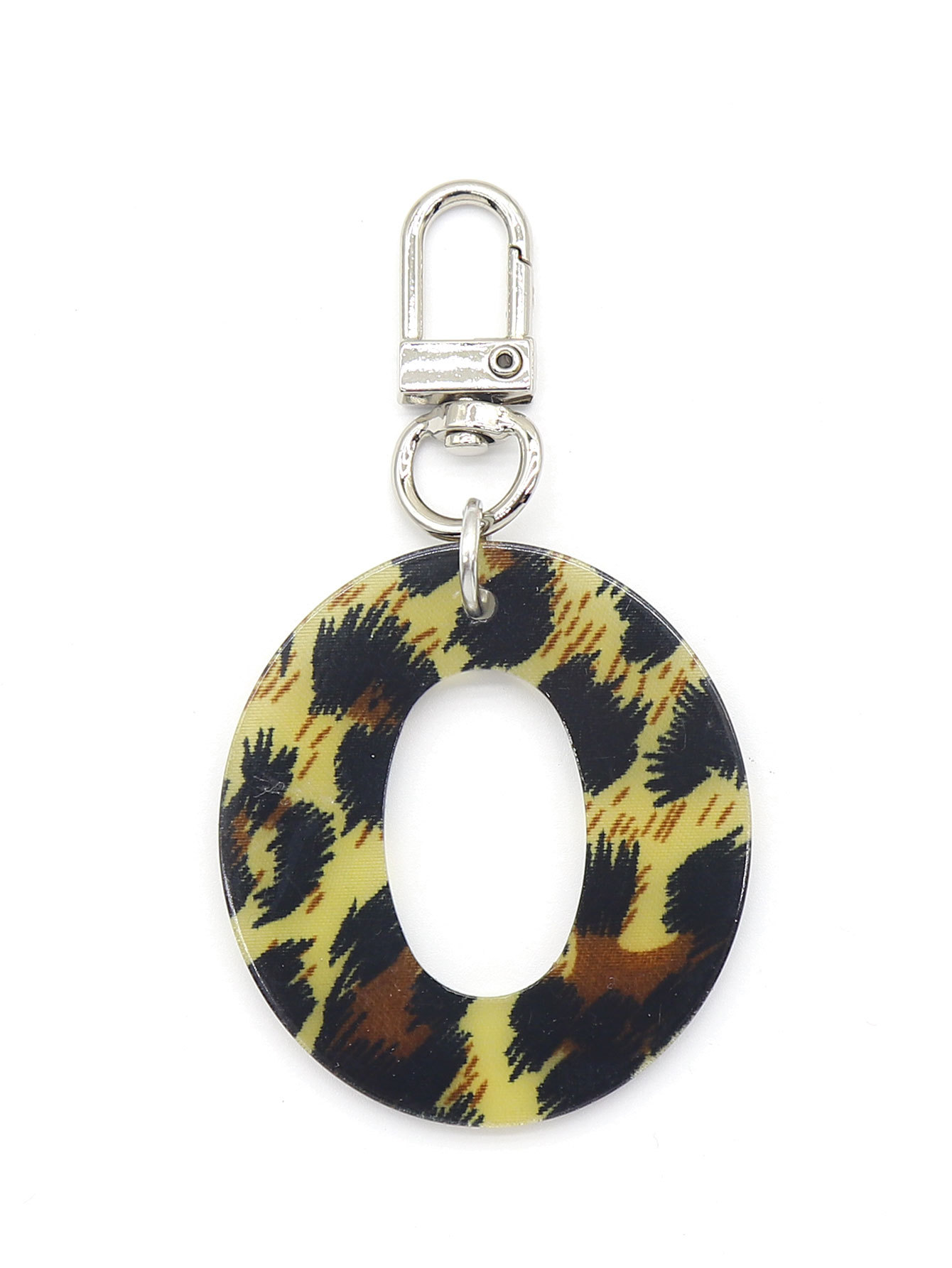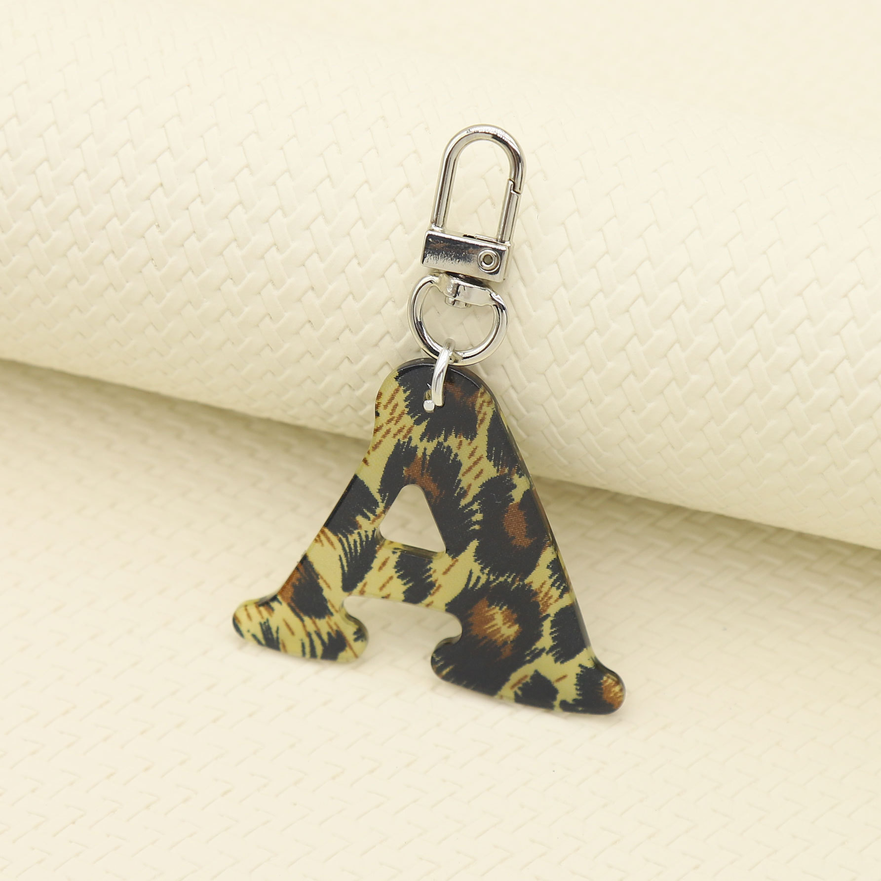 新款休闲百搭复古高级豹纹印花26字母亚克力钥匙扣包包挂件跨境