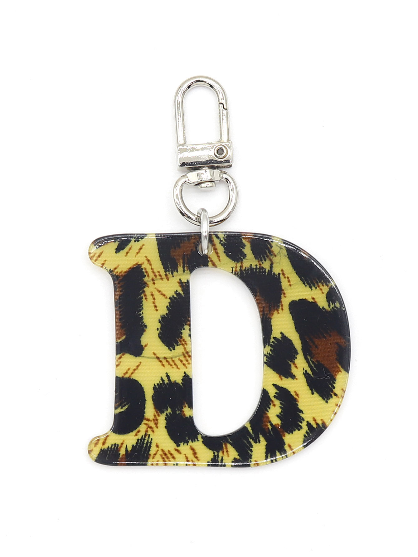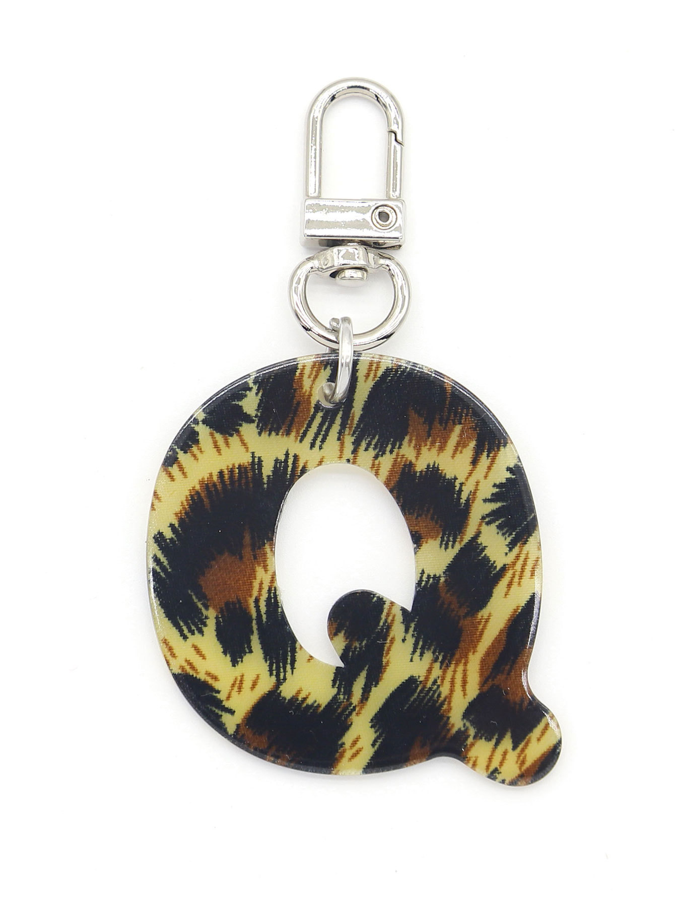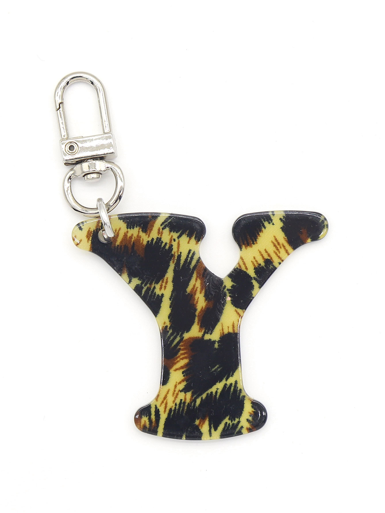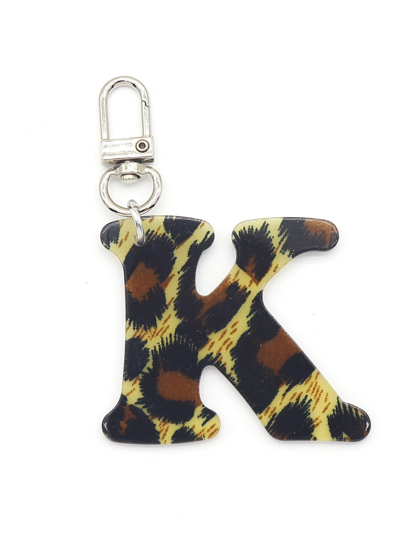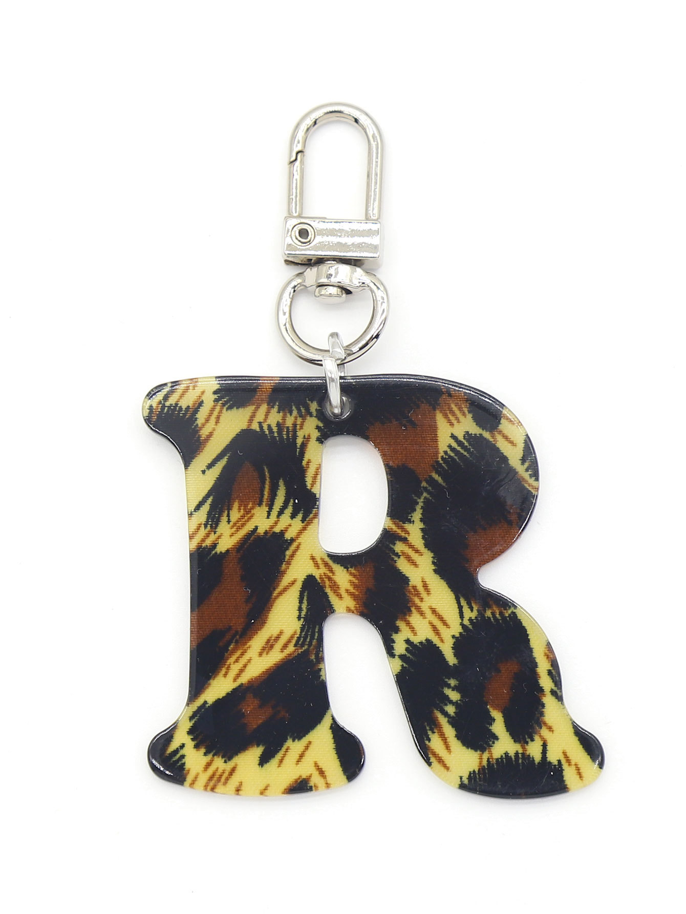 新款休闲百搭复古高级豹纹印花26字母亚克力钥匙扣包包挂件跨境