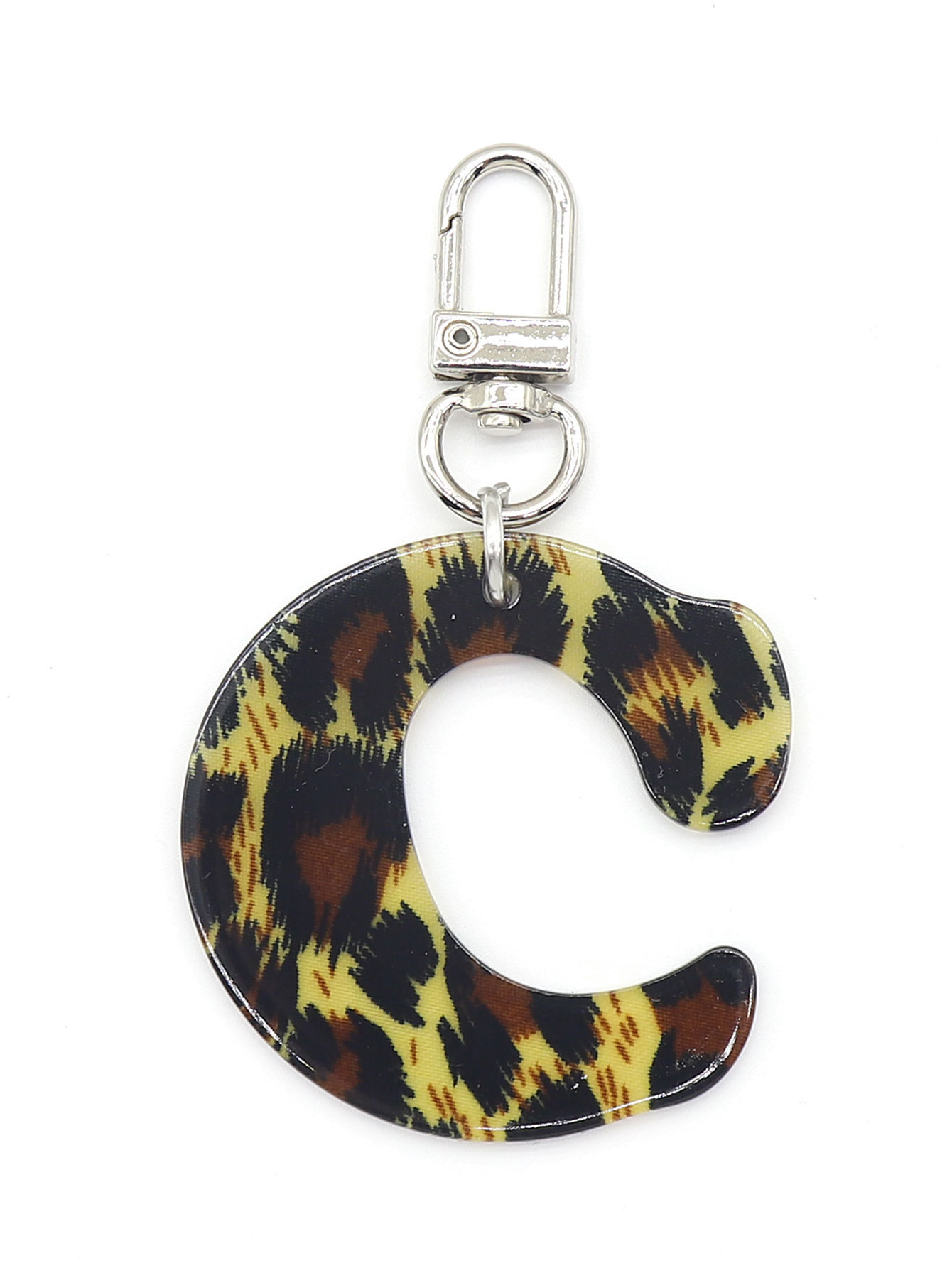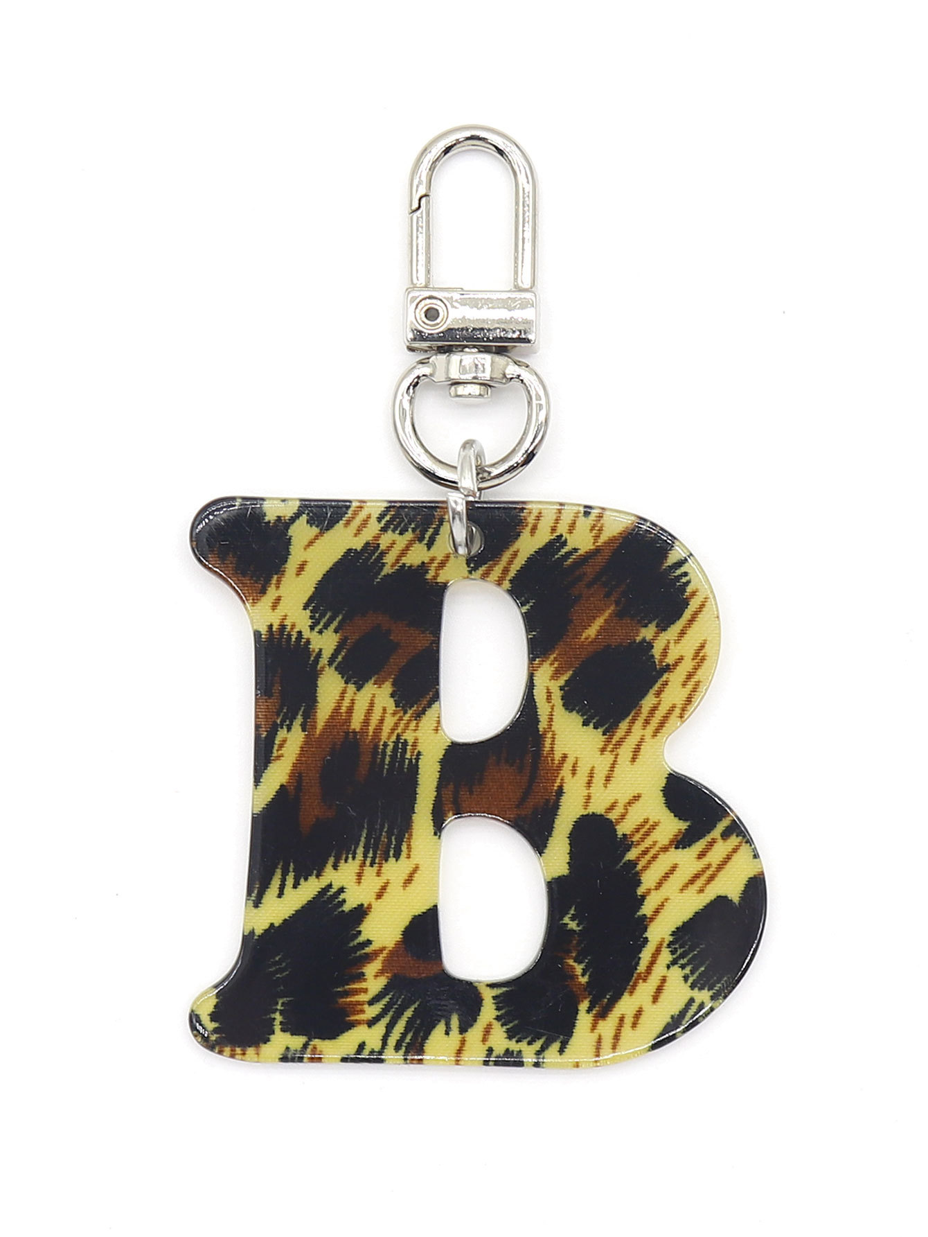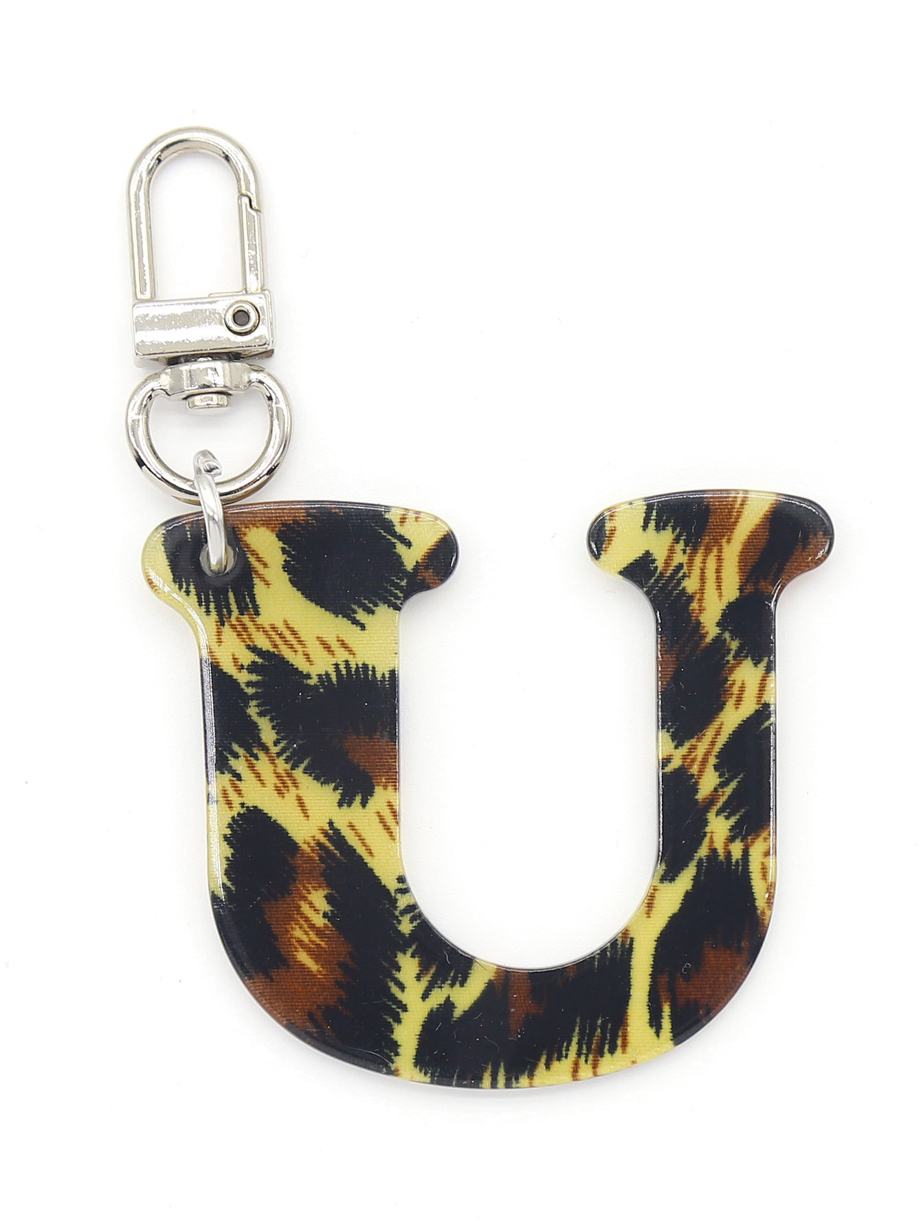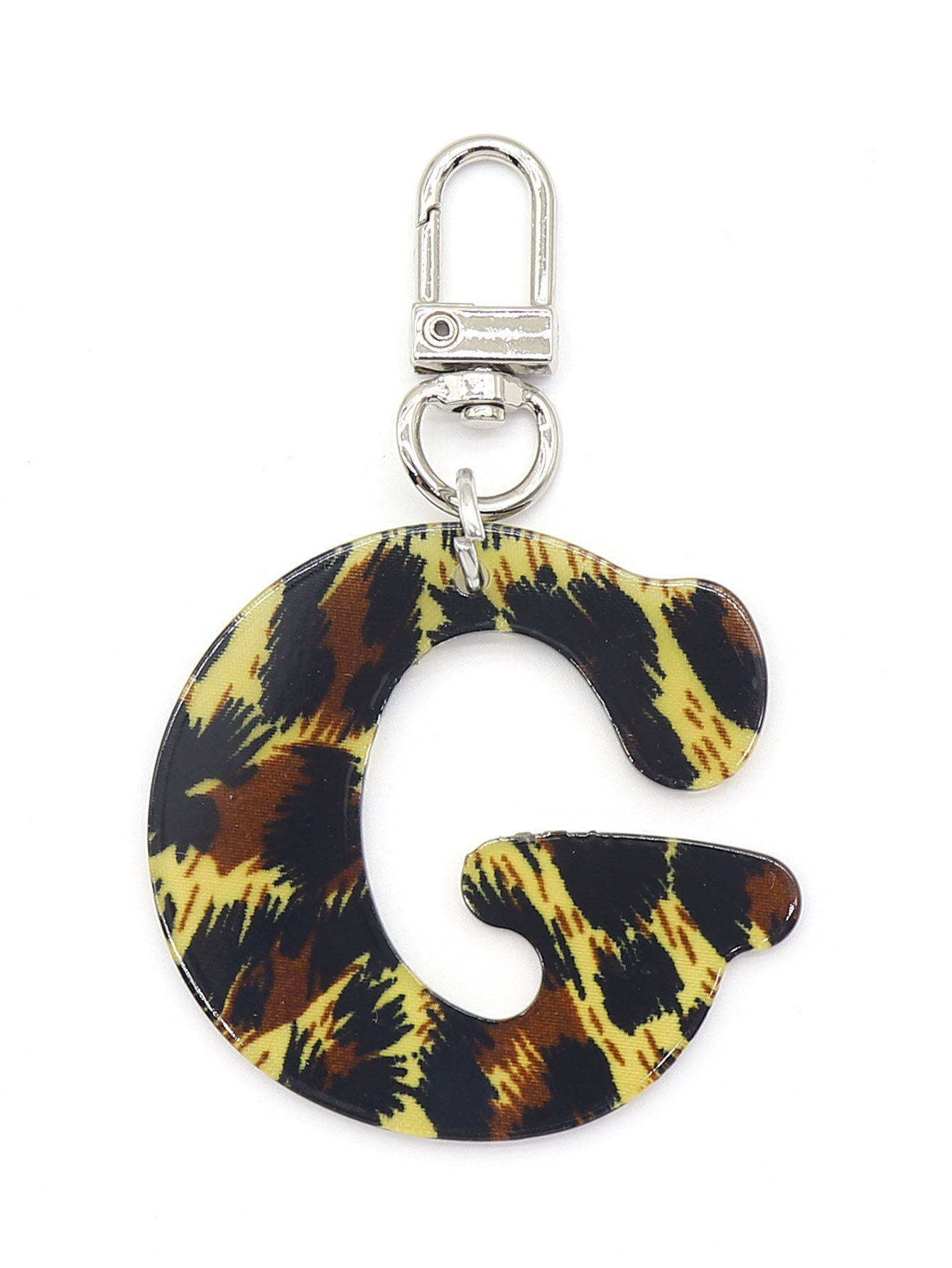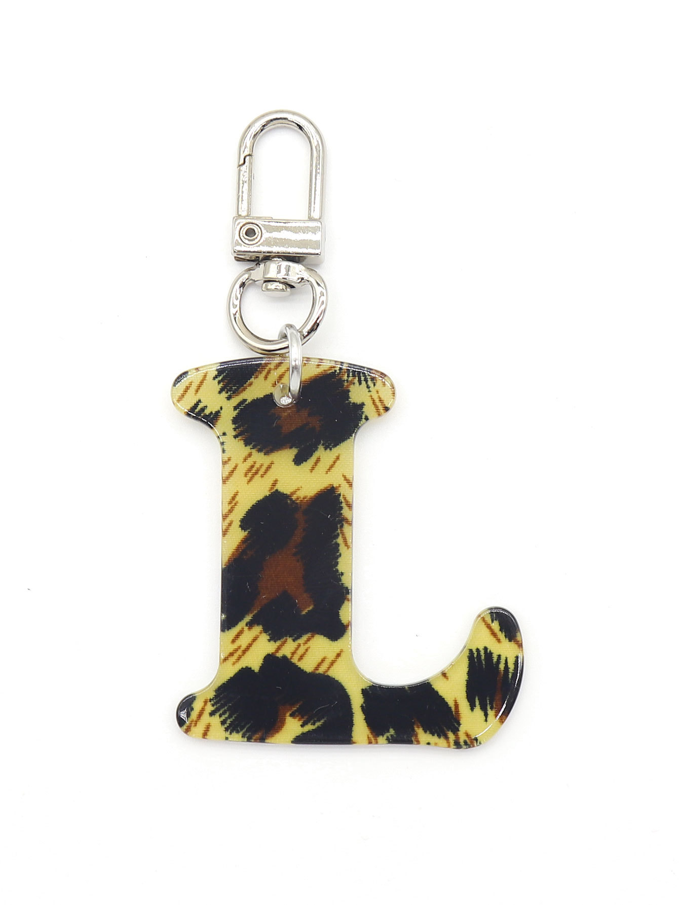 新款休闲百搭复古高级豹纹印花26字母亚克力钥匙扣包包挂件跨境