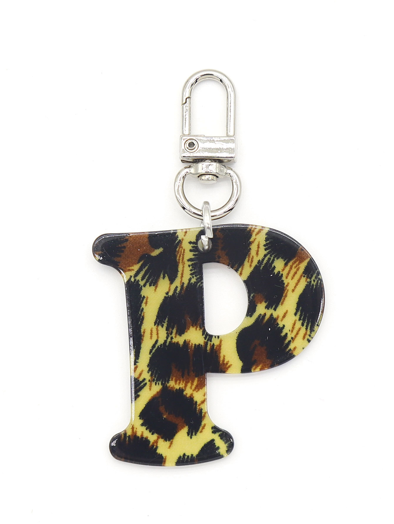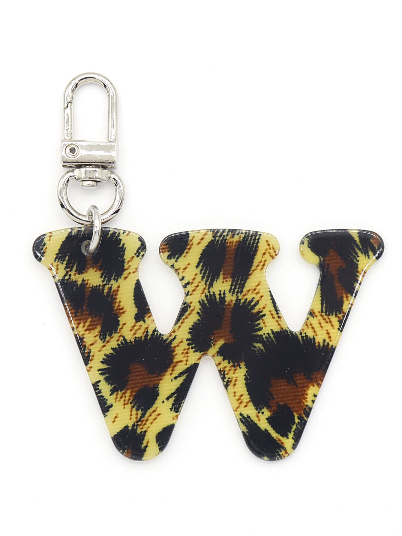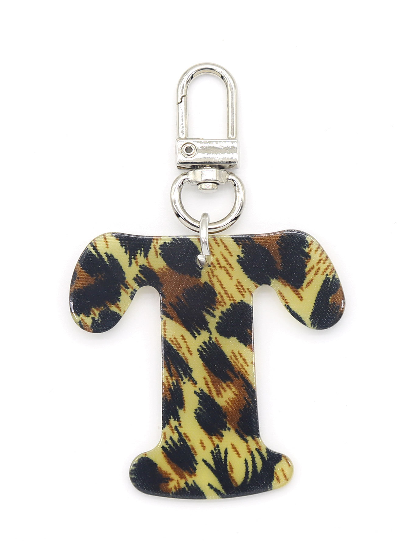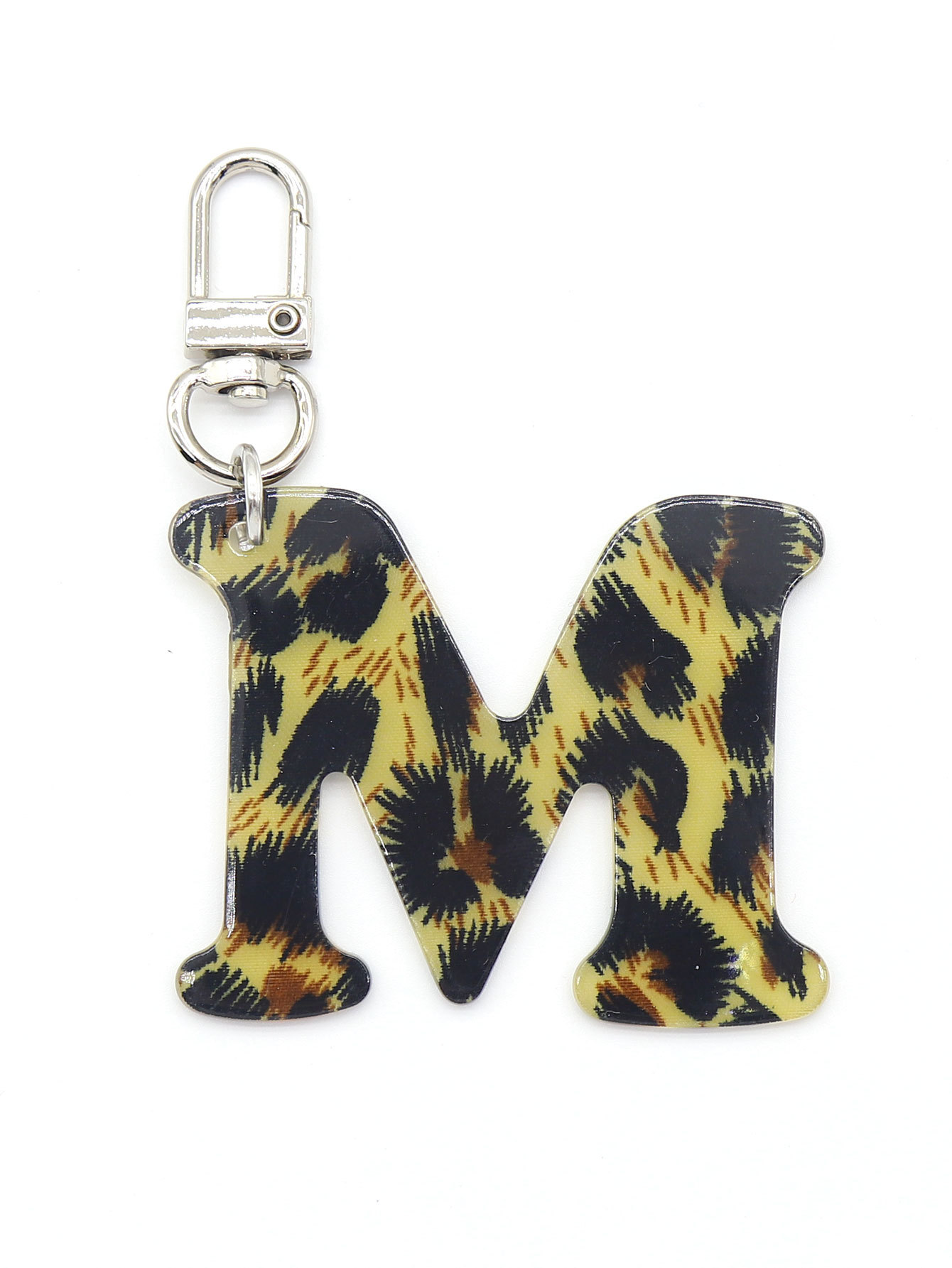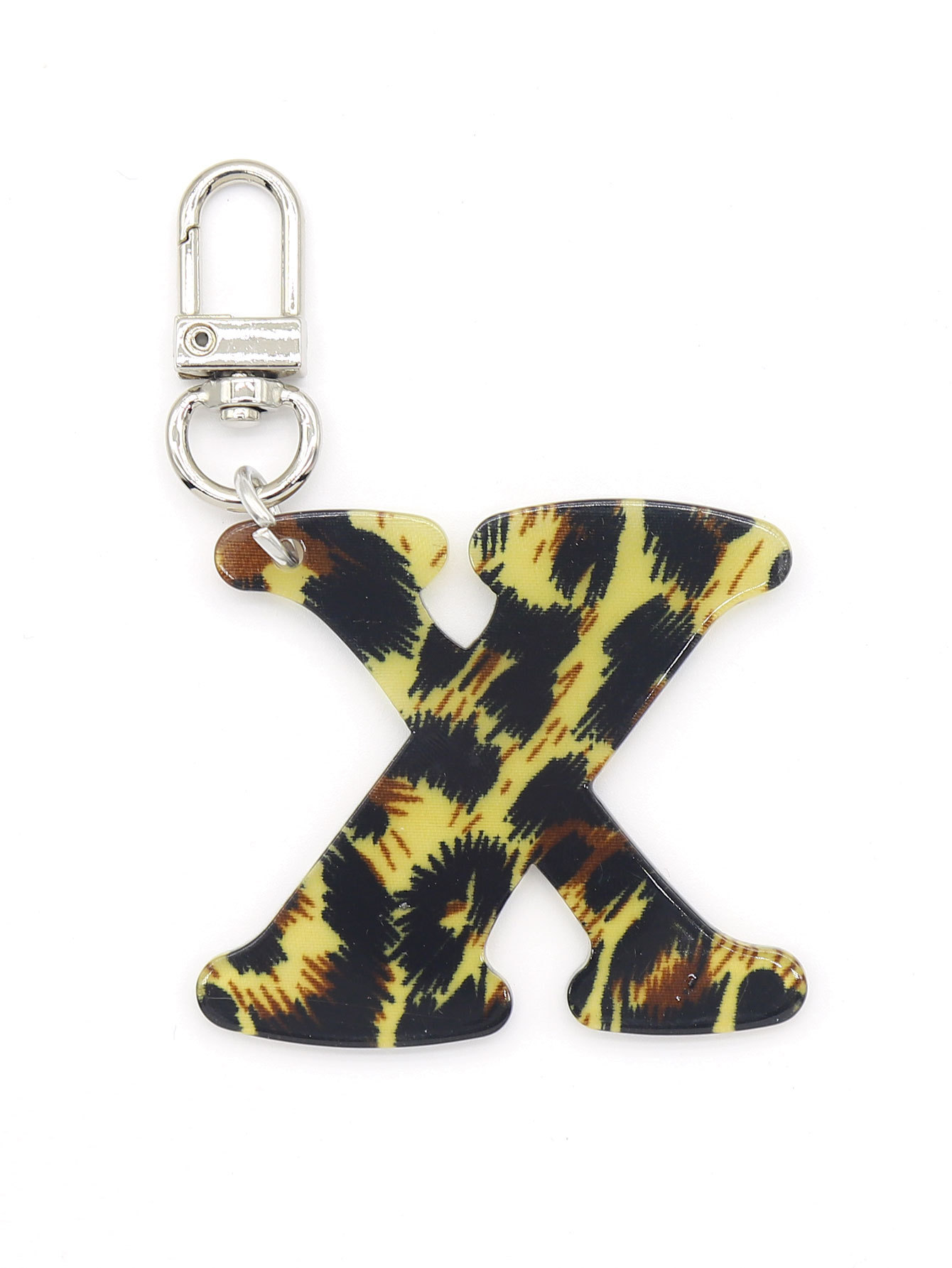 新款休闲百搭复古高级豹纹印花26字母亚克力钥匙扣包包挂件跨境