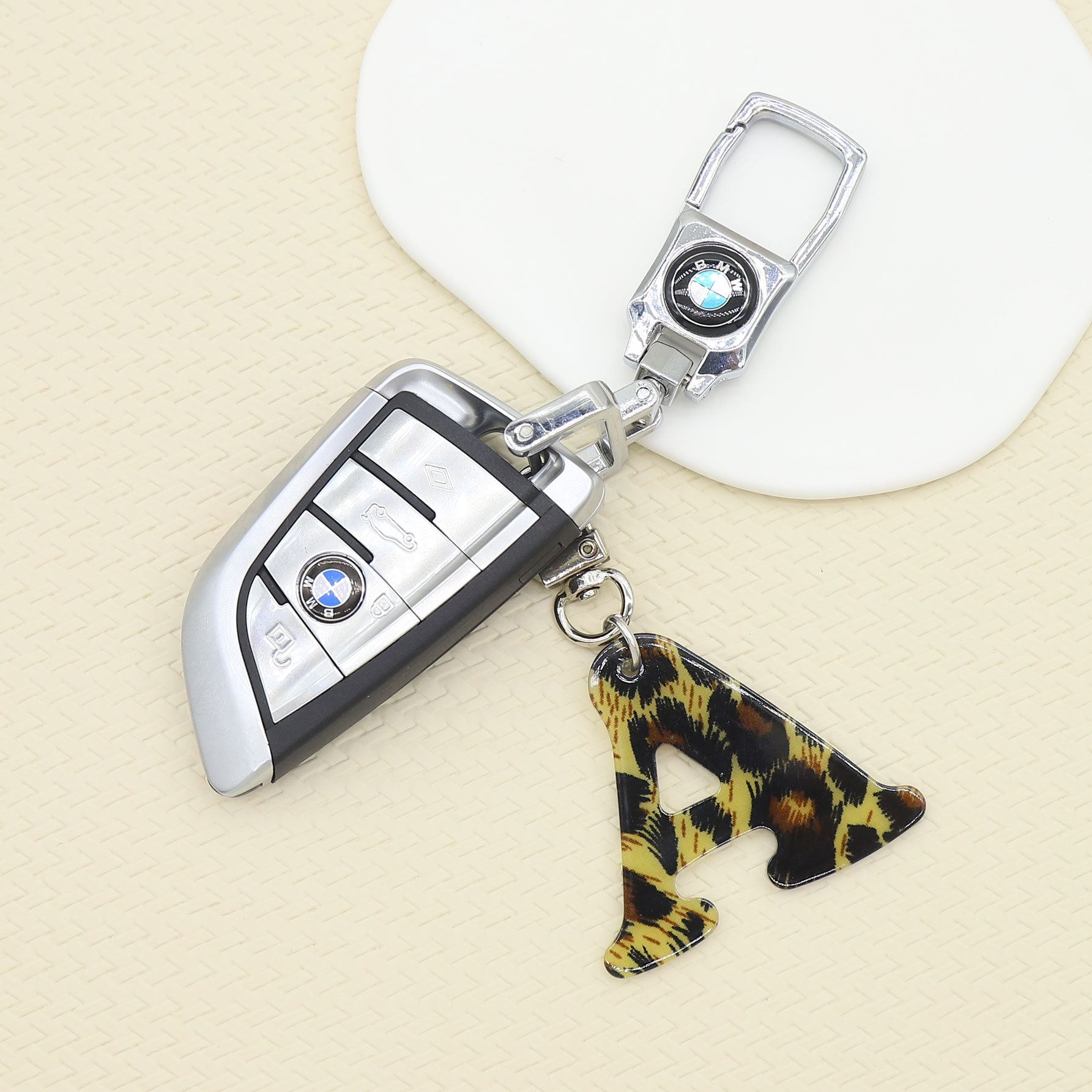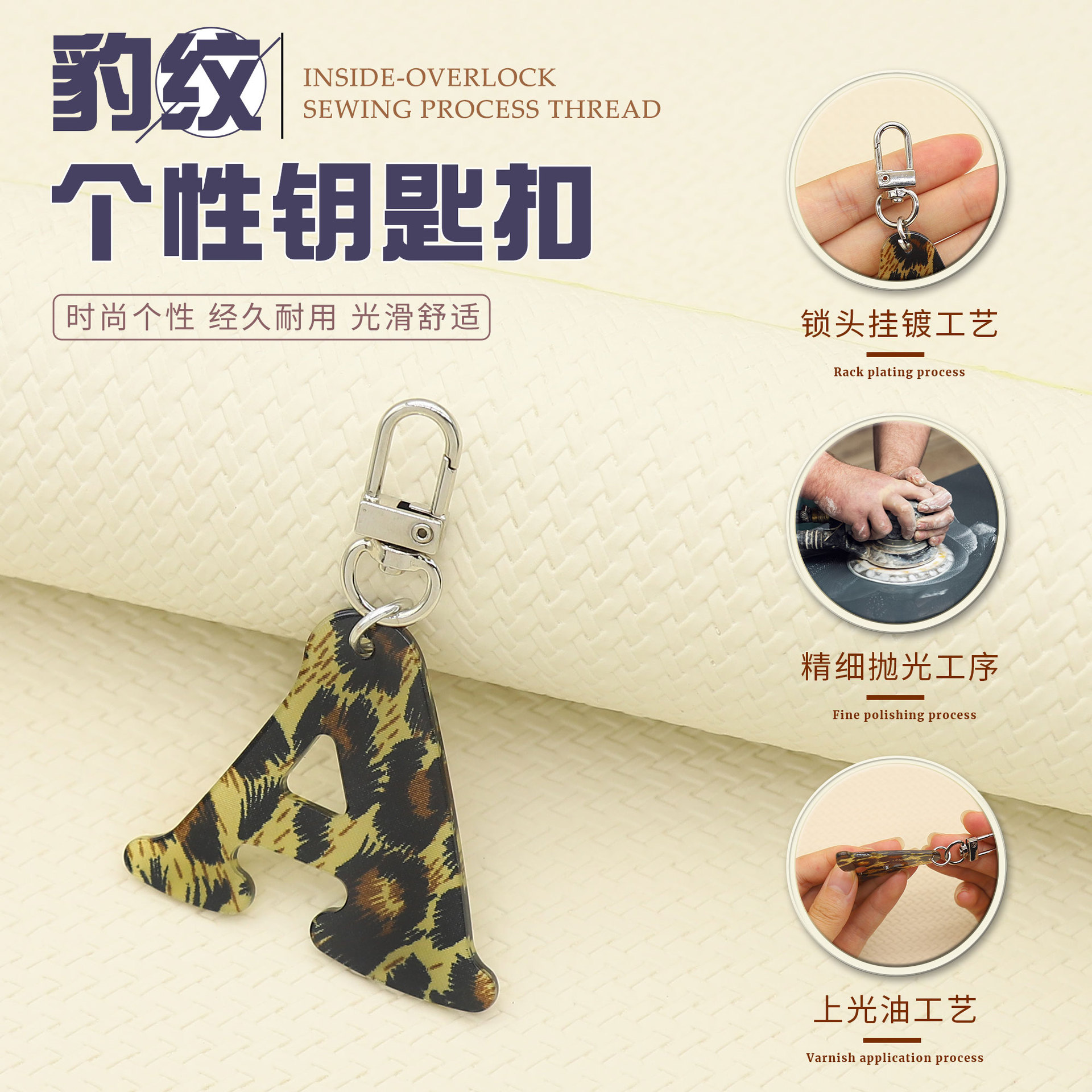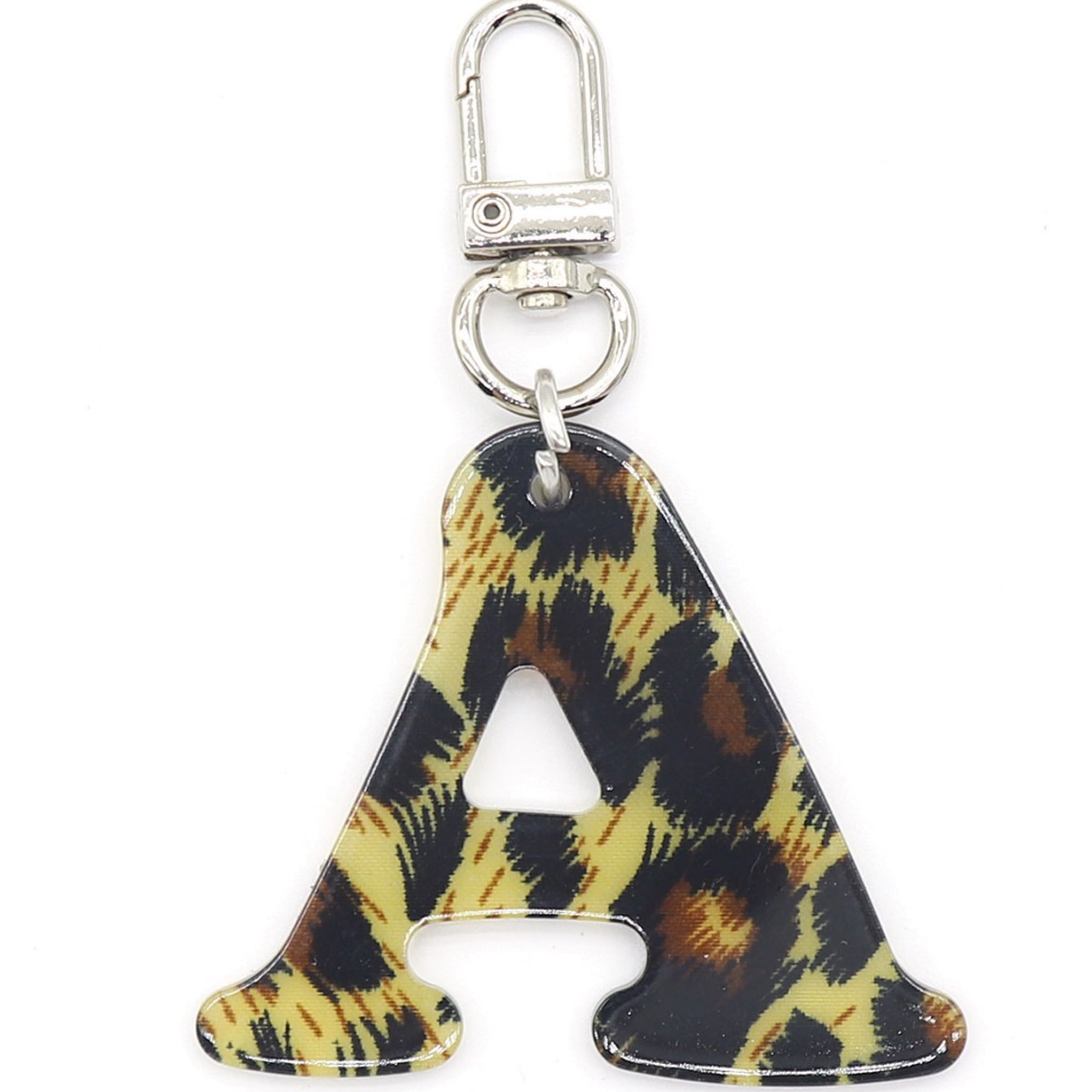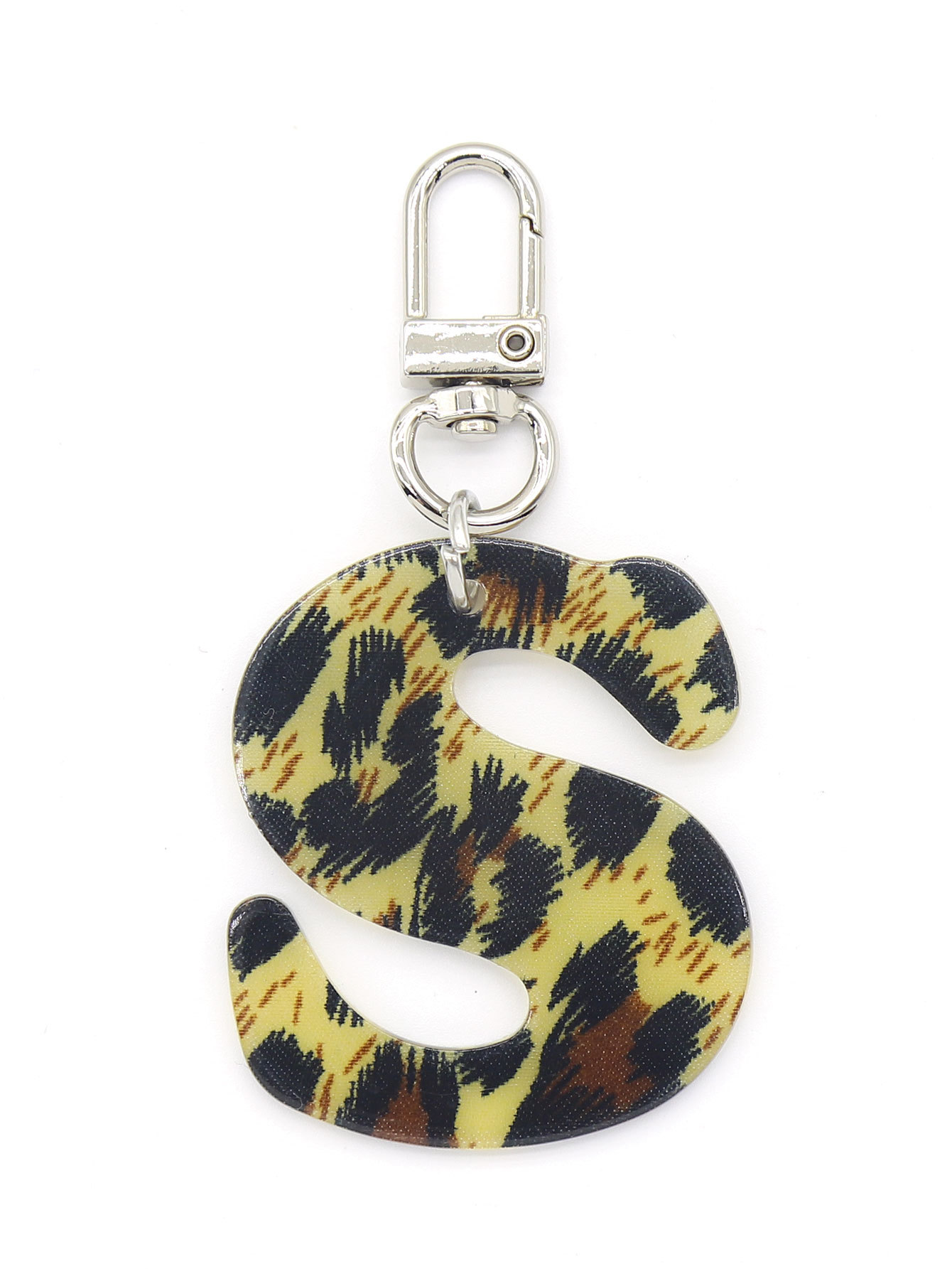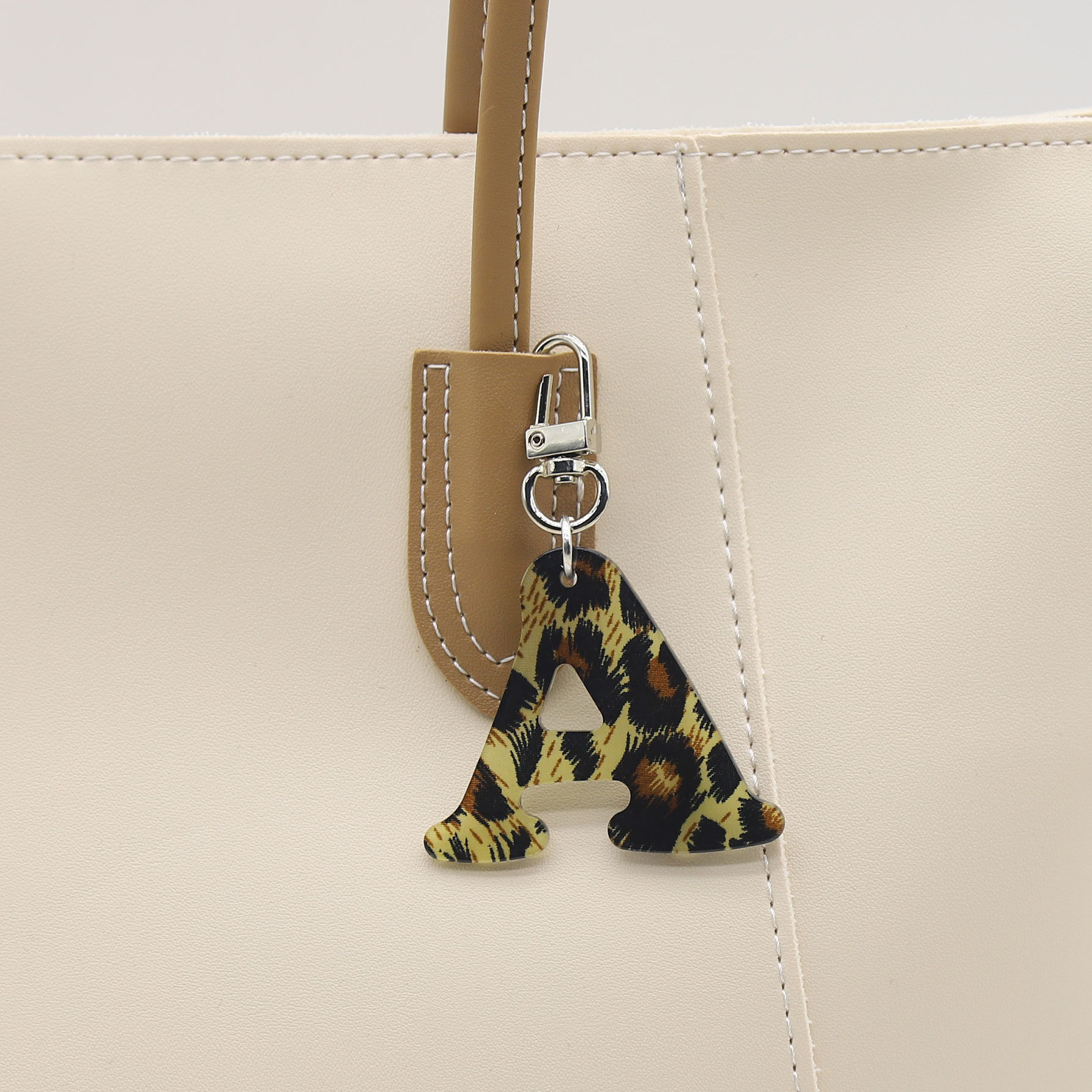 新款休闲百搭复古高级豹纹印花26字母亚克力钥匙扣包包挂件跨境