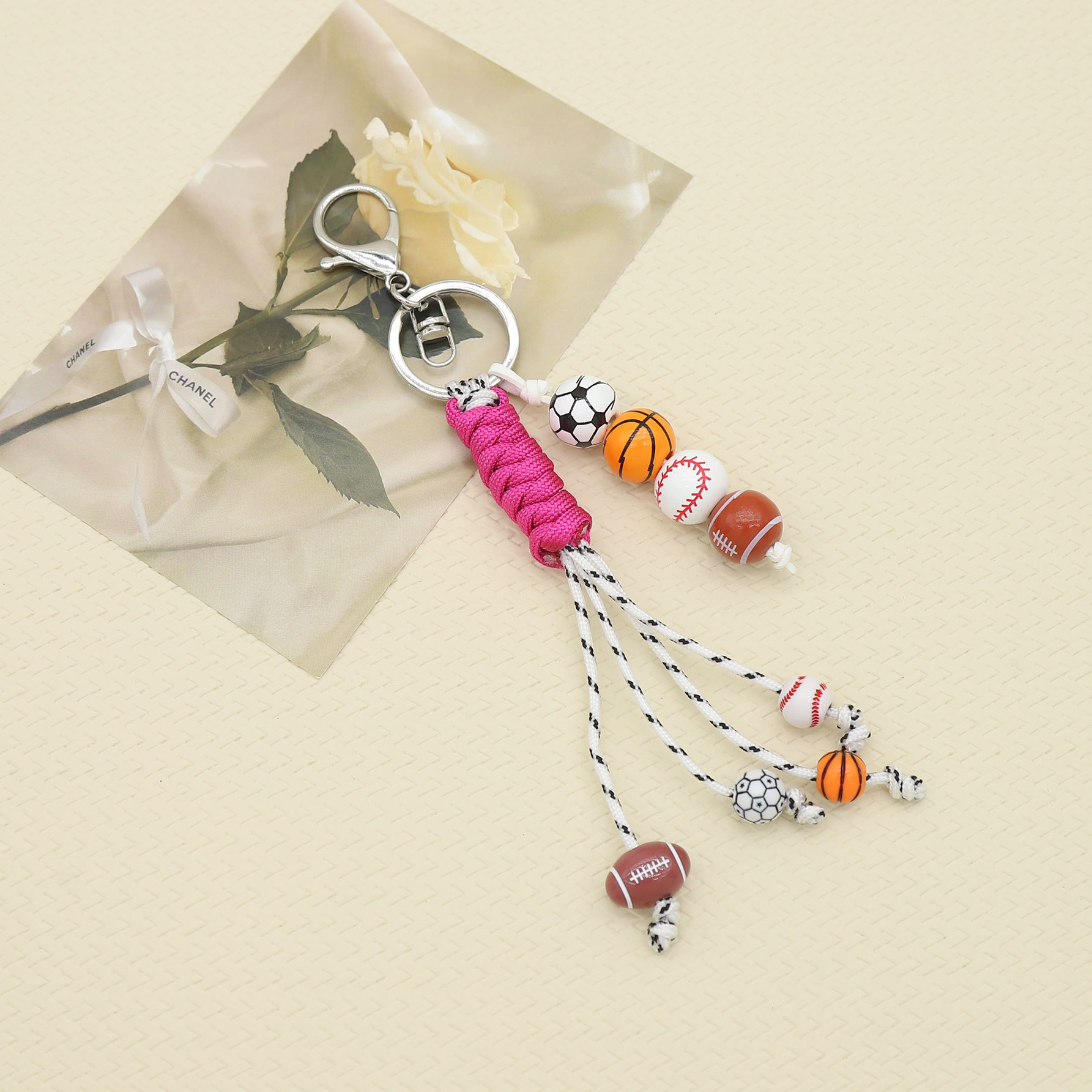 休闲运动风纯手工编织涤纶篮球棒球足球木珠钥匙扣包包挂饰挂件