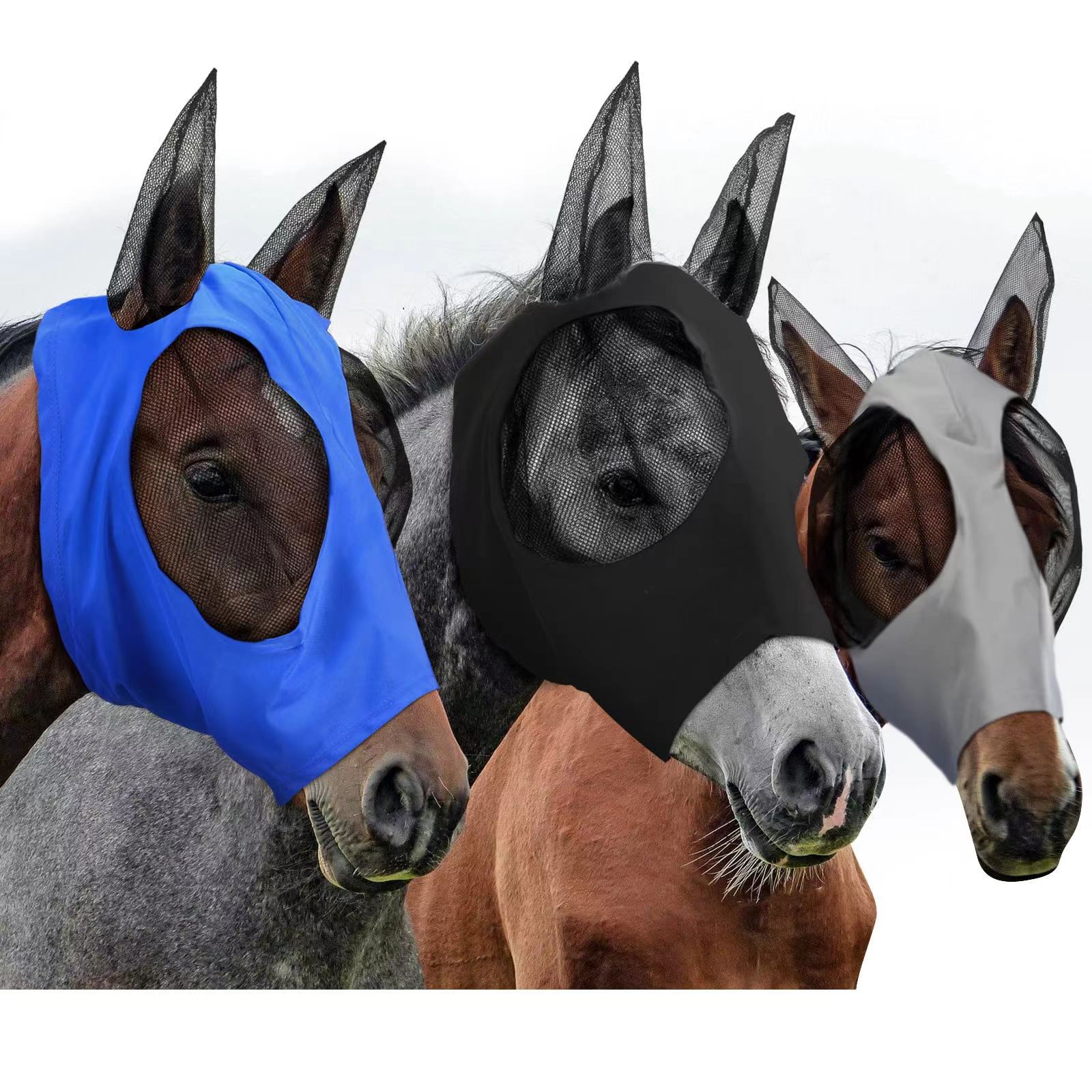 工厂现货秒发防蚊马头罩透气马面罩马匹多种印花马面罩马术用品