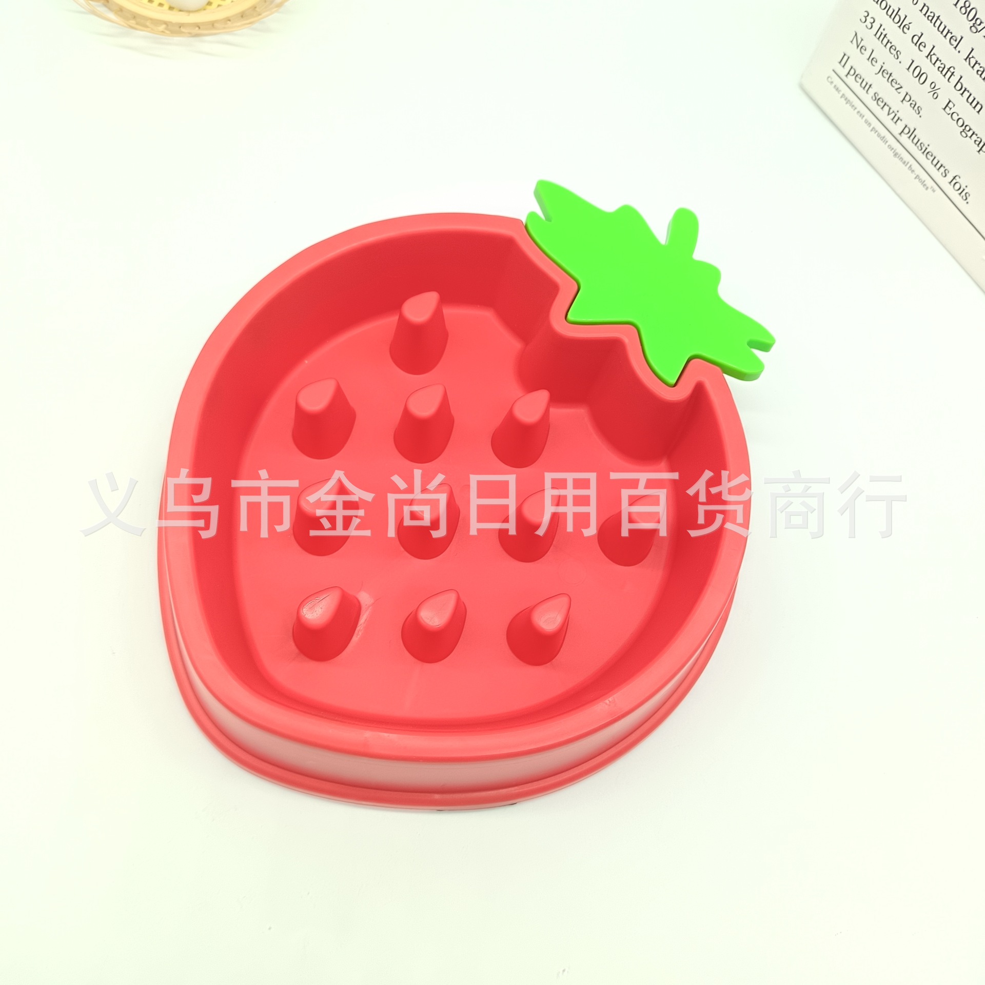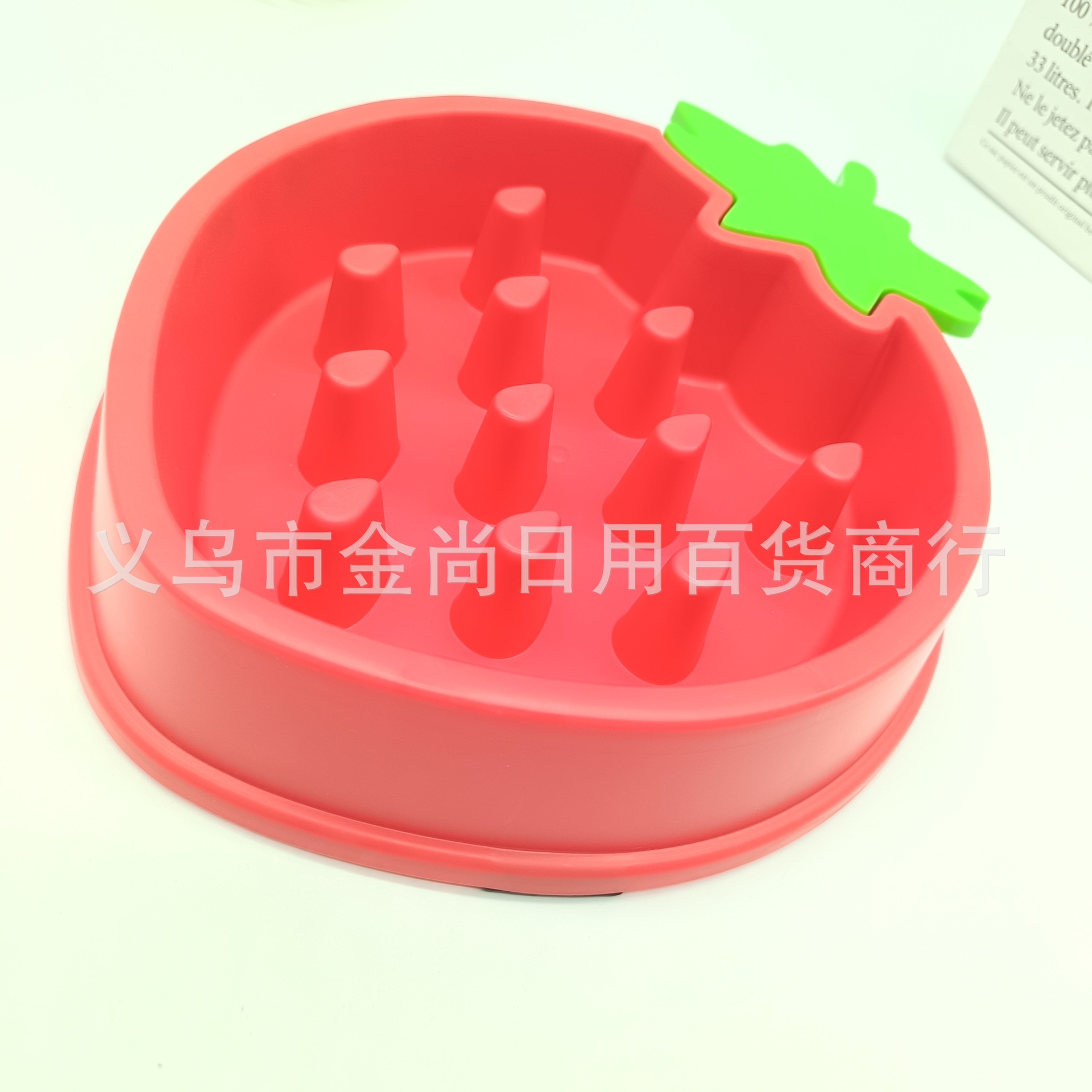 新款草莓批发塑料底部防滑宠物慢速喂食狗狗慢食碗ins风格防打翻