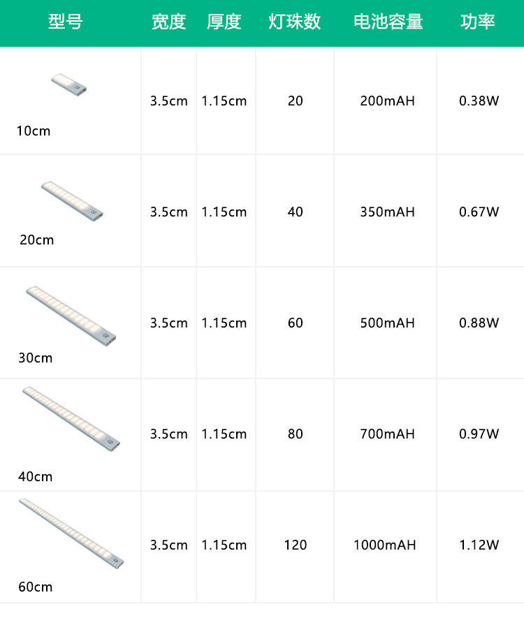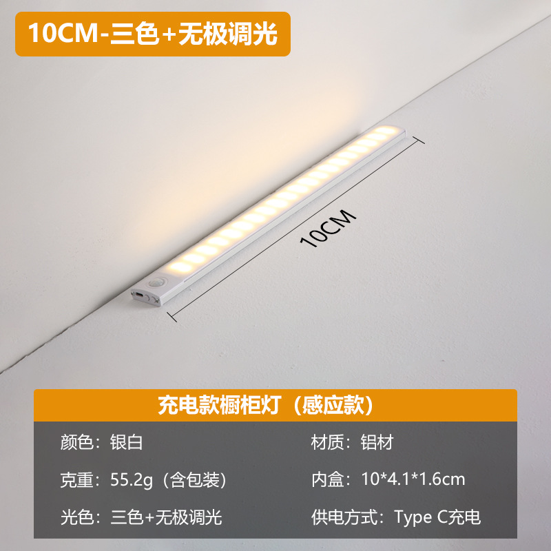 超薄智能人体感应led灯 自粘衣柜灯带长条磁吸充电式酒柜橱柜灯条