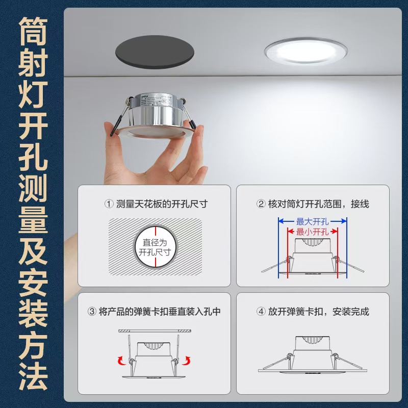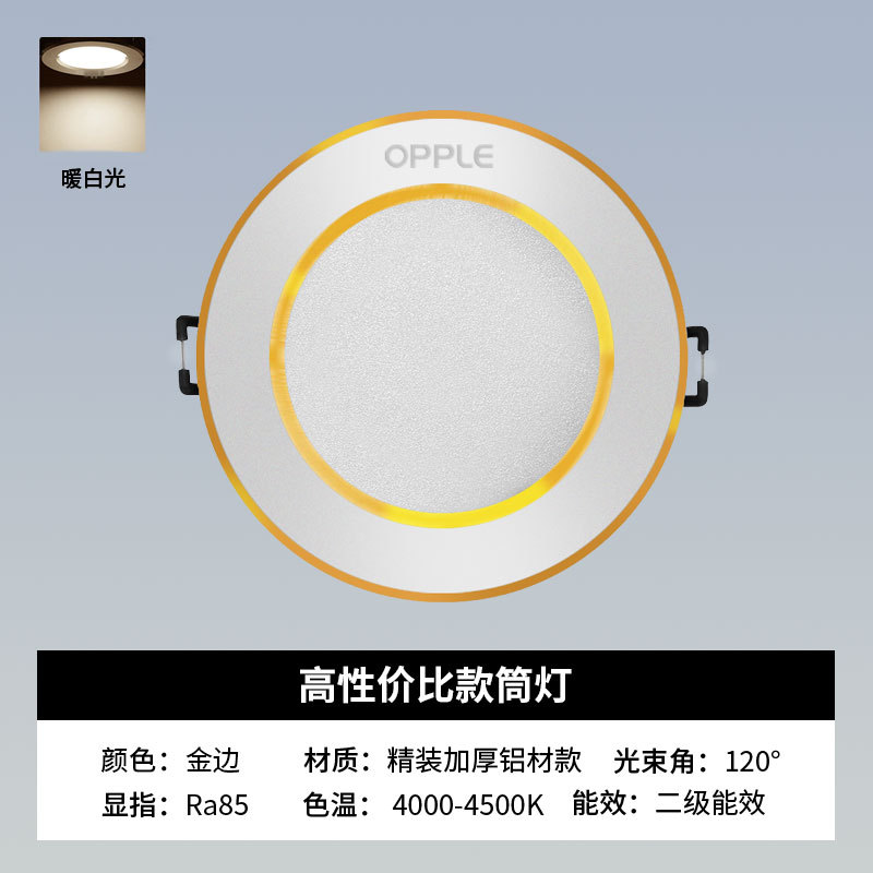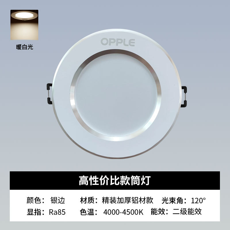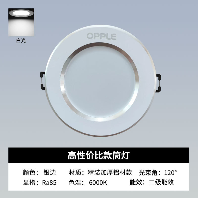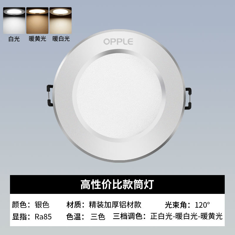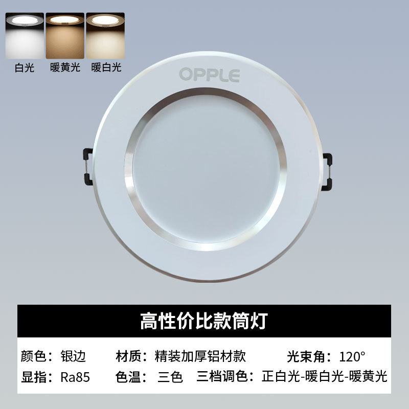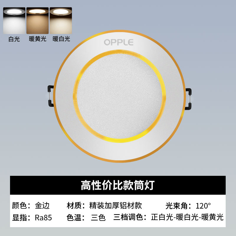 欧普led筒灯嵌入式9.5开孔6W18瓦工程家用三色变光孔灯2024新款