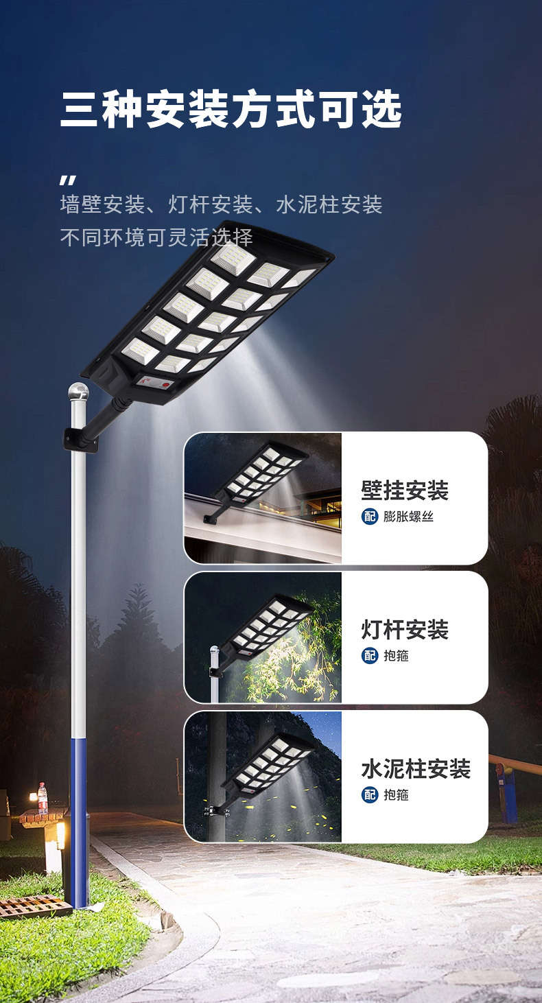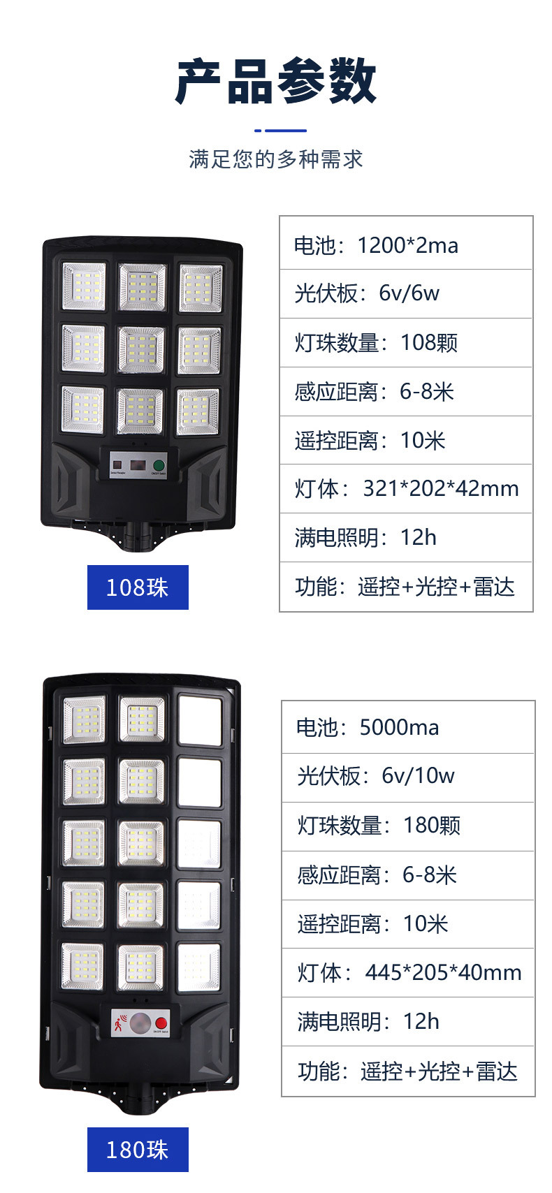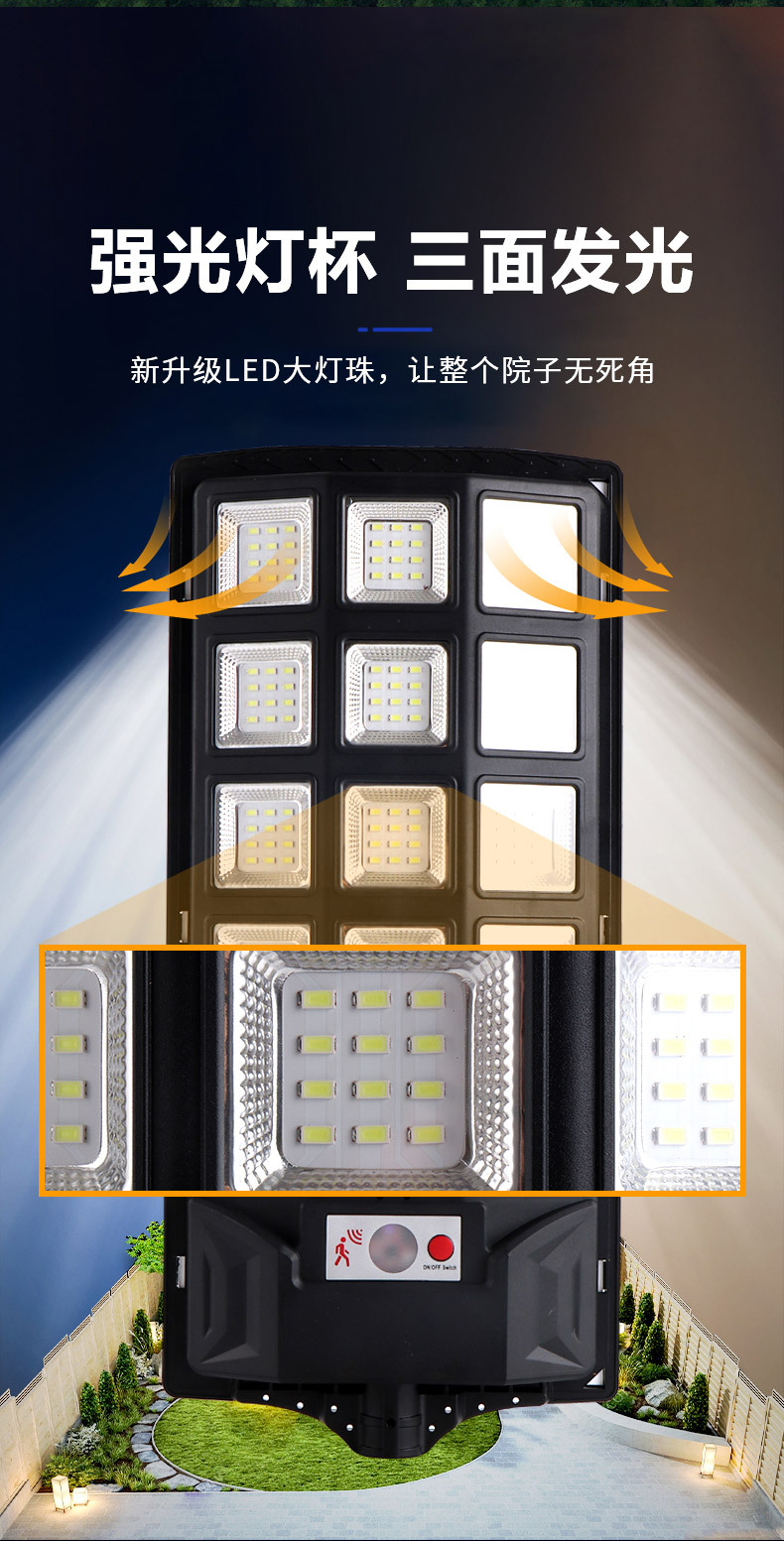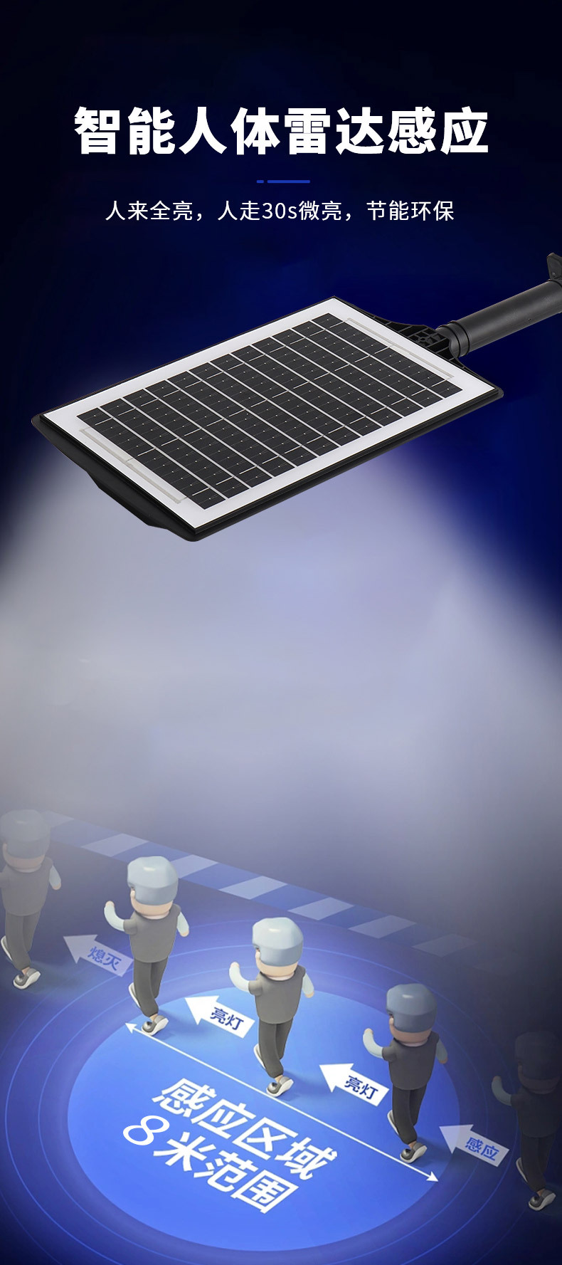 冠禾新款太阳能路灯三面发光雷达感应灯超广角照明一体化太阳能灯