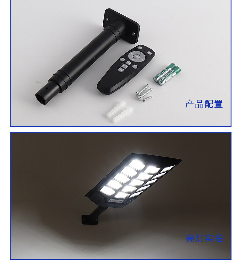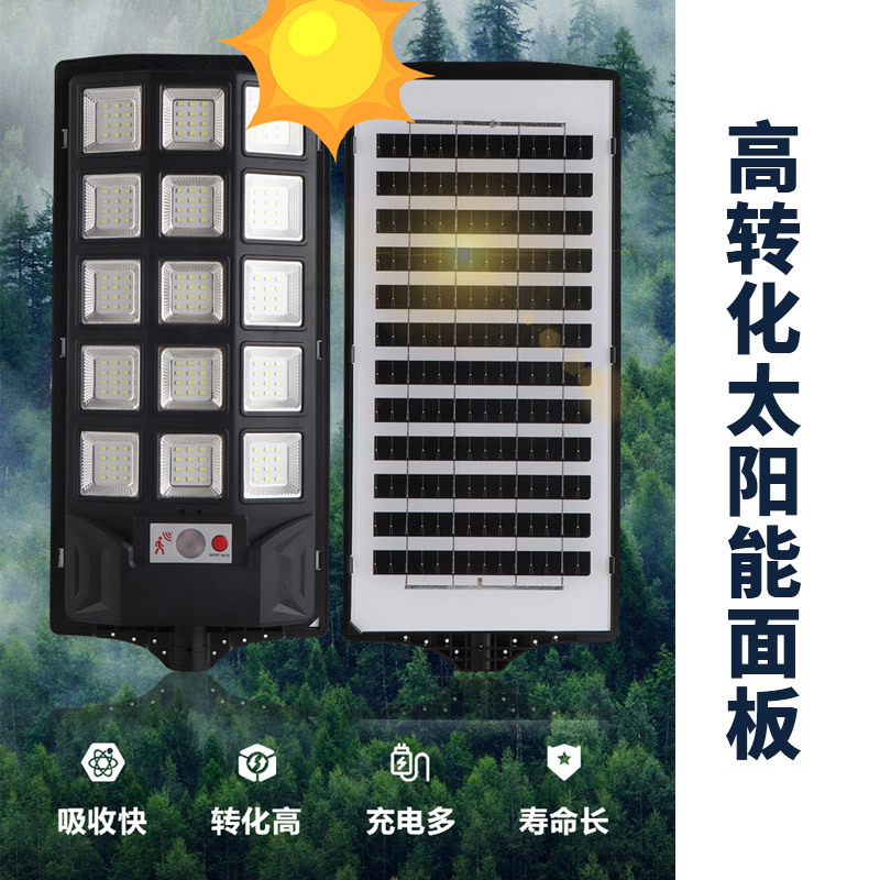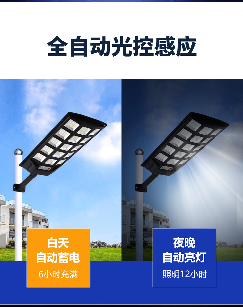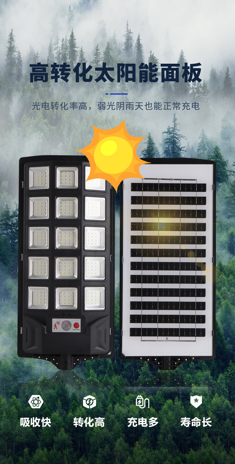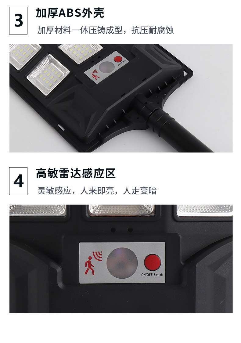 冠禾新款太阳能路灯三面发光雷达感应灯超广角照明一体化太阳能灯