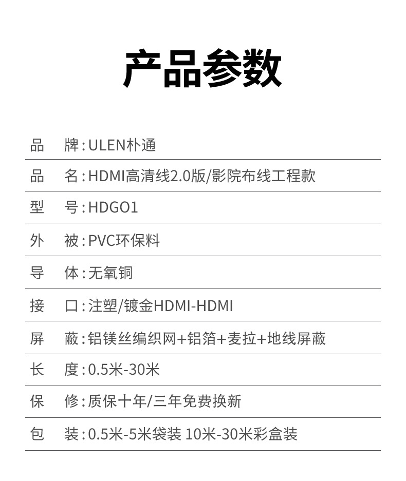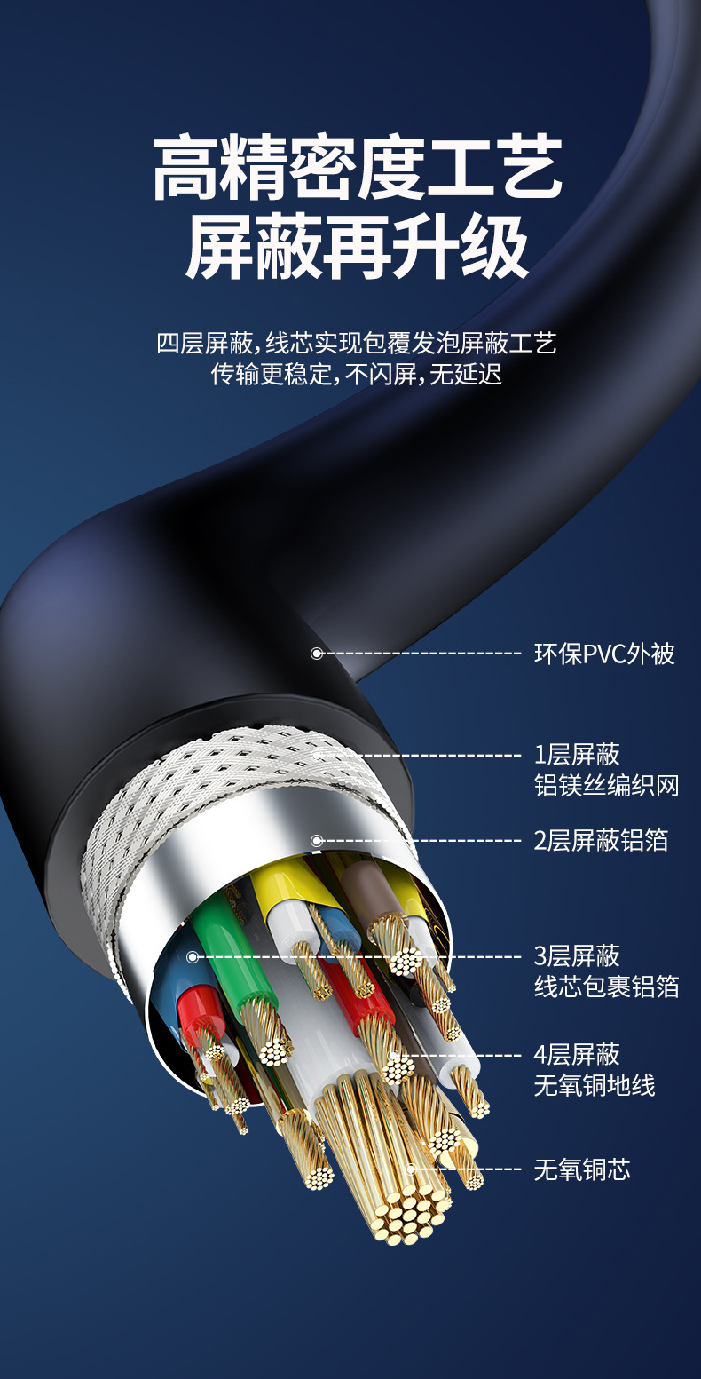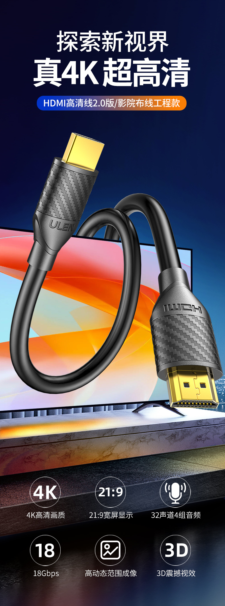 hdmi高清线4k镀金无氧铜电视机顶盒电脑投影仪连接线hdmi线2.0版