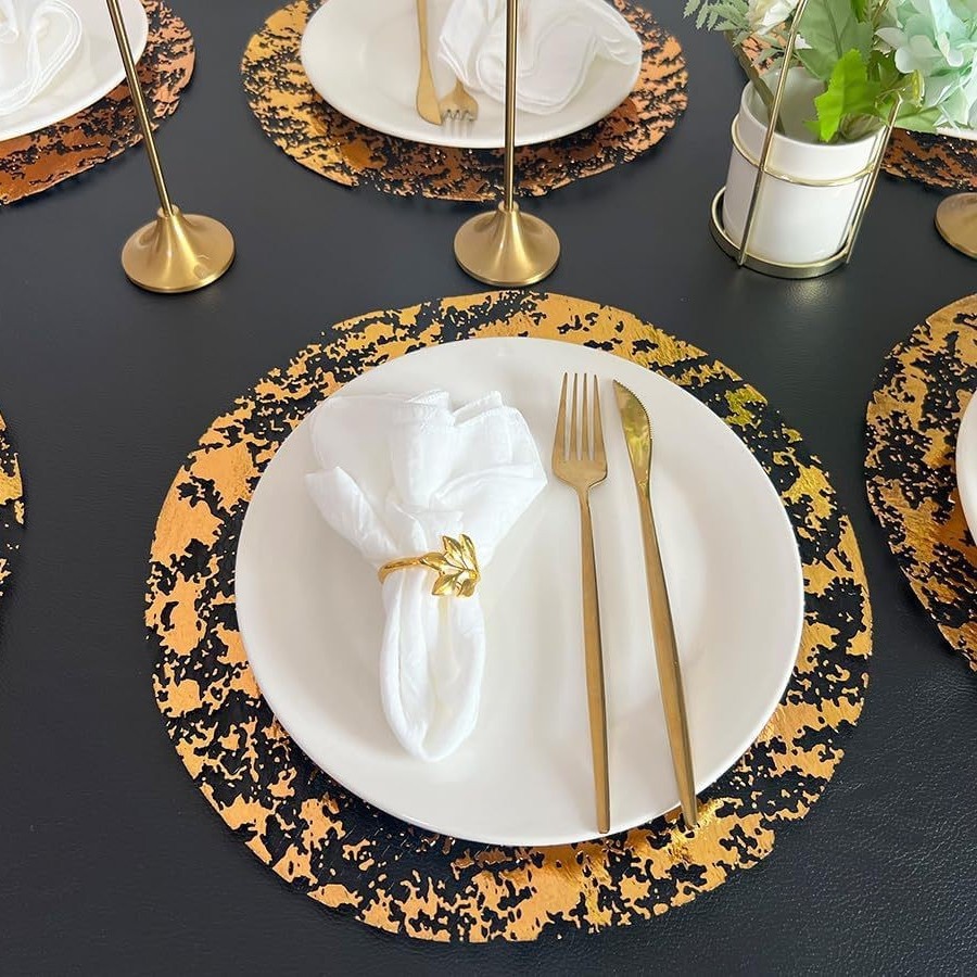 亚马逊跨境一次性金色餐垫金属圆形金箔网格压制桌垫餐垫工厂批发