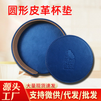 圆形现货真皮茶杯垫可定lOGO手工缝纫带油边pu皮革杯垫隔热垫批发