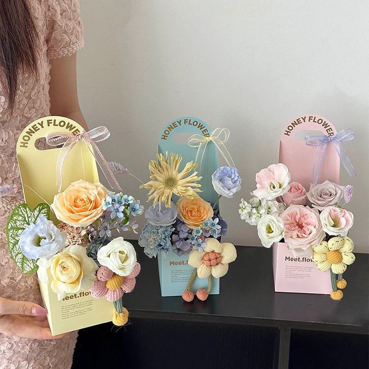 母亲节手提盒鲜花包装批发女神仙花束网红diy工厂高级