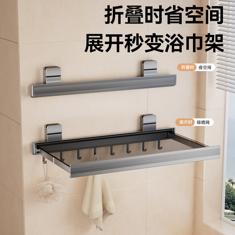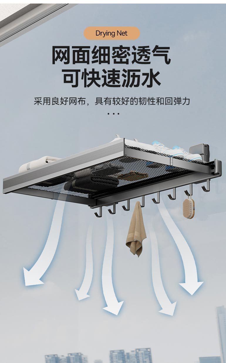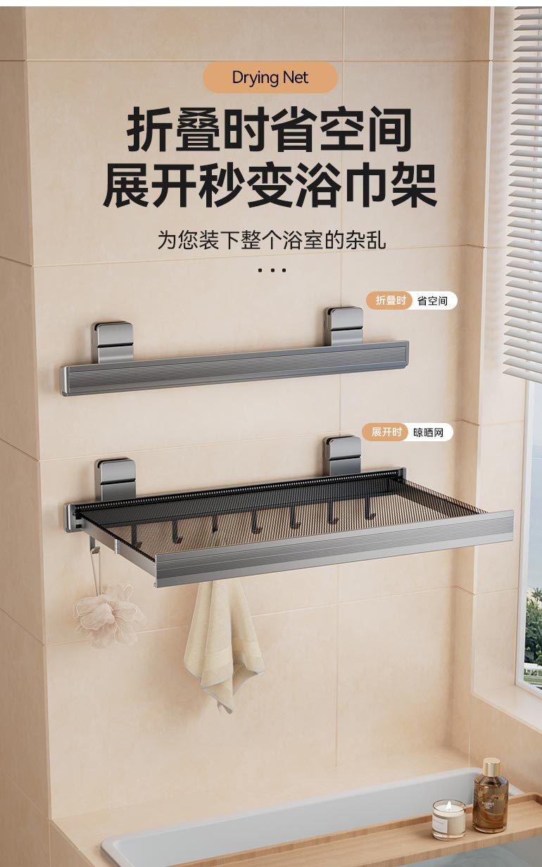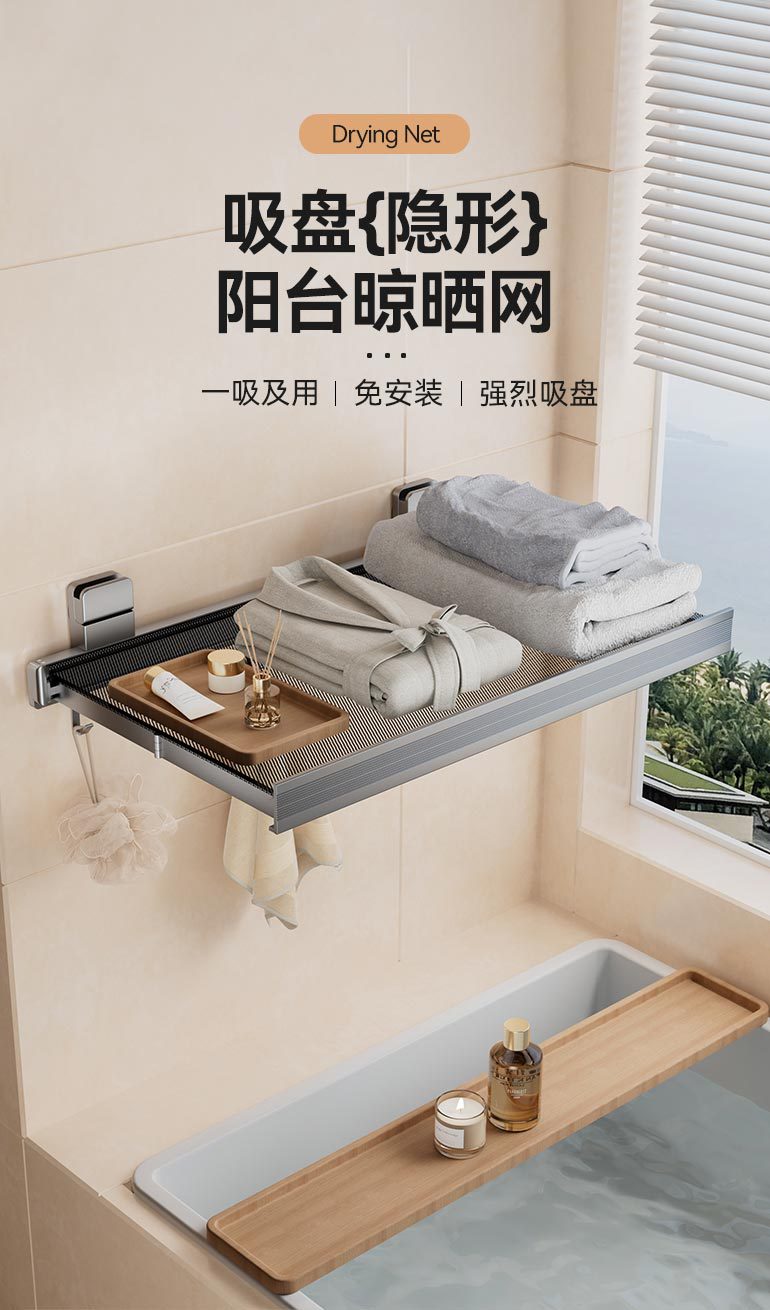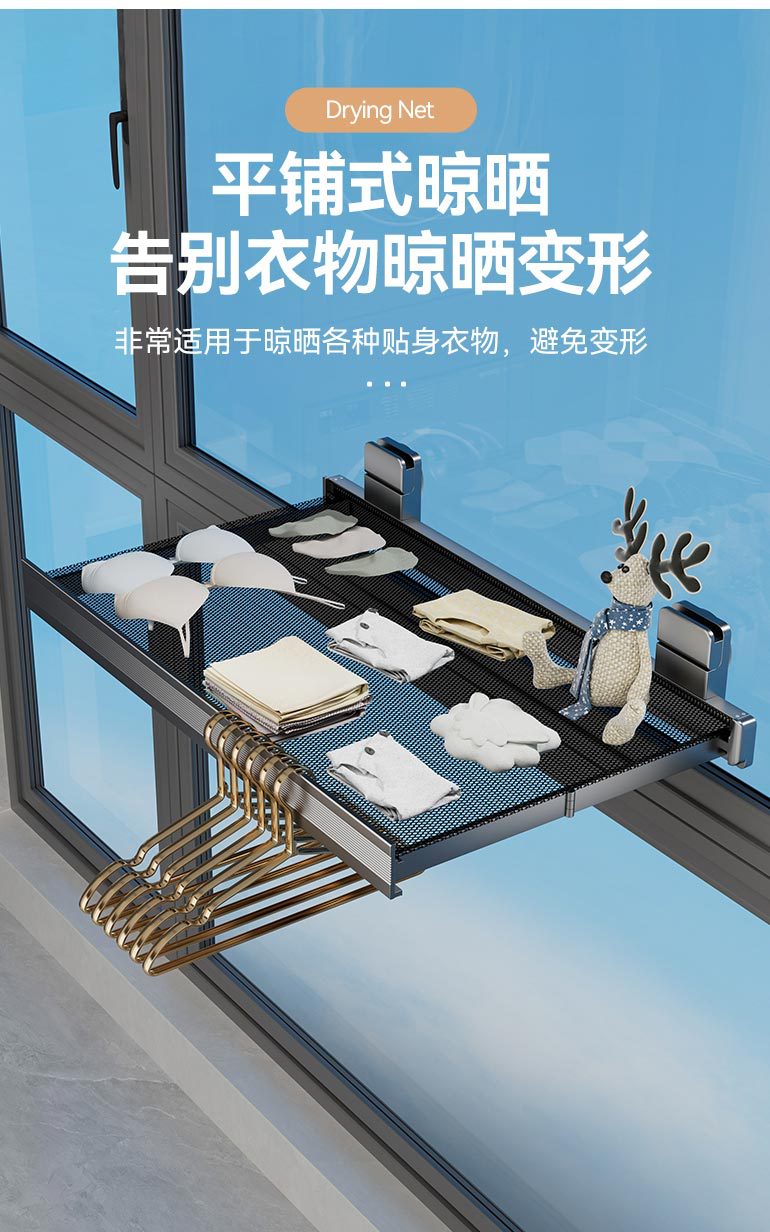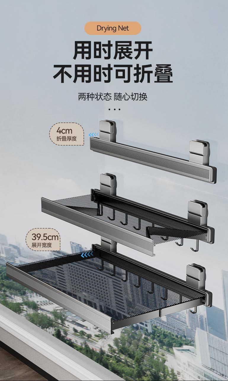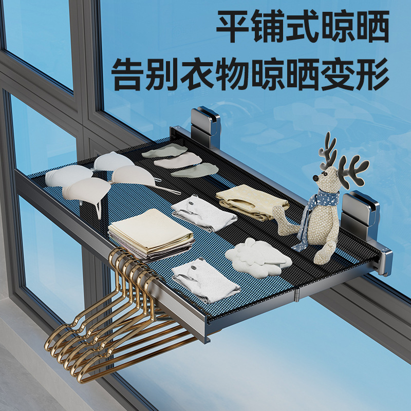 吸盘免打孔折叠晾晒网窗户置物架窗台晾晒阳台隐形收缩神器鞋袜架