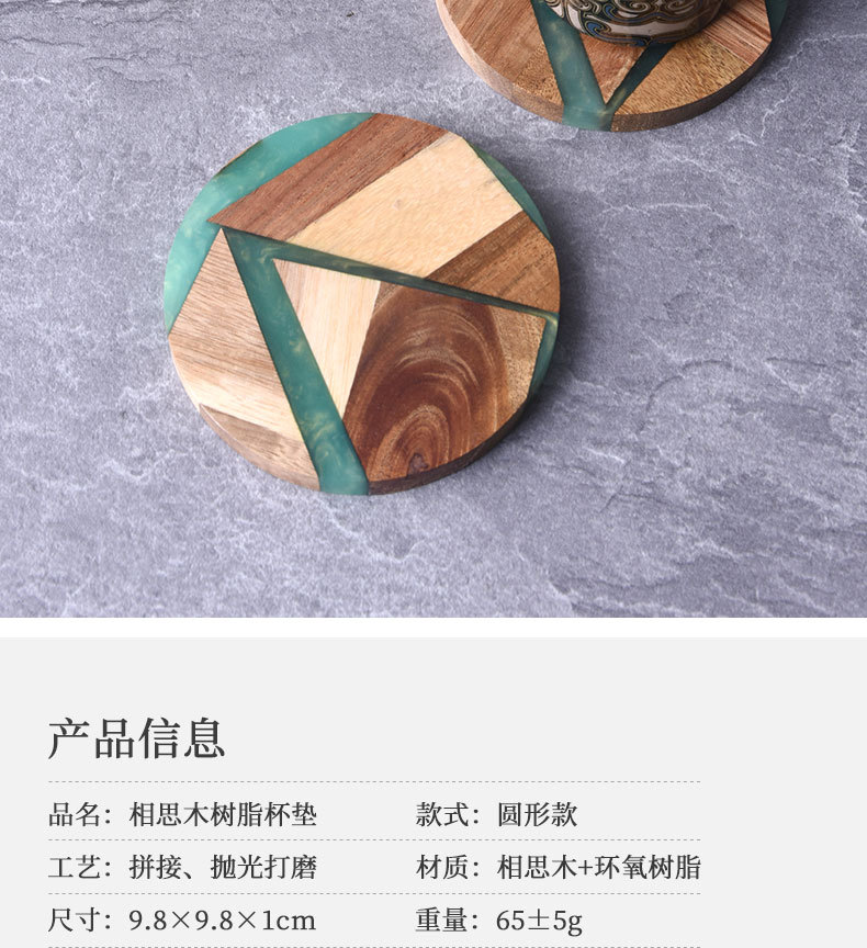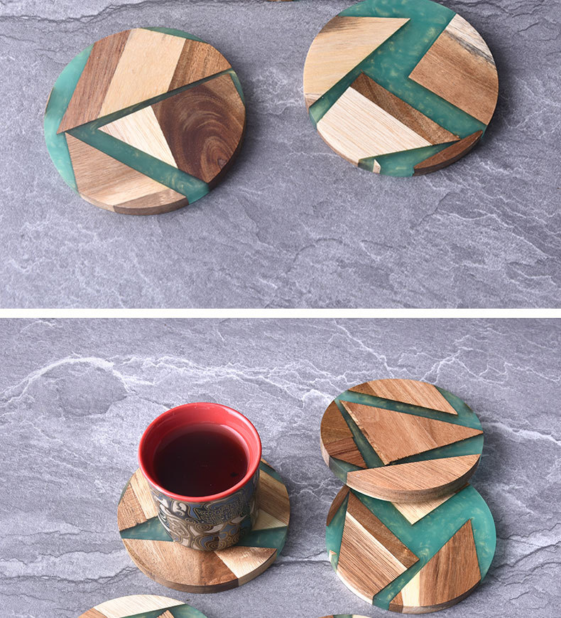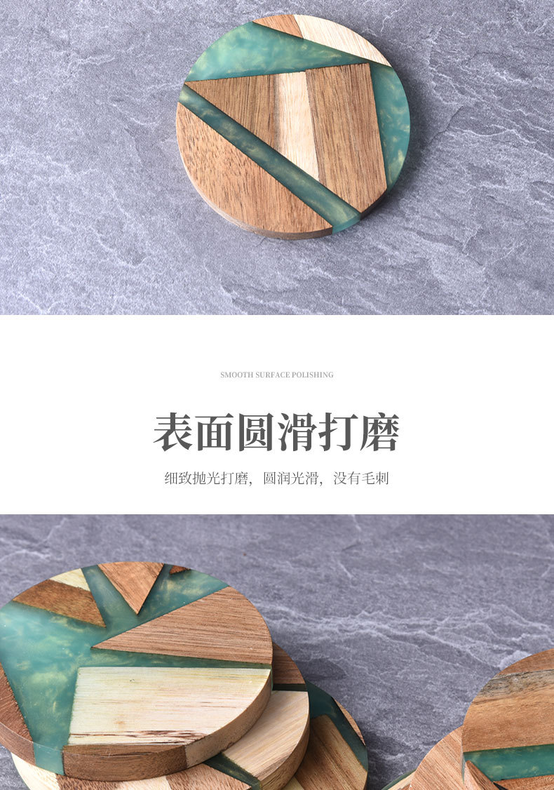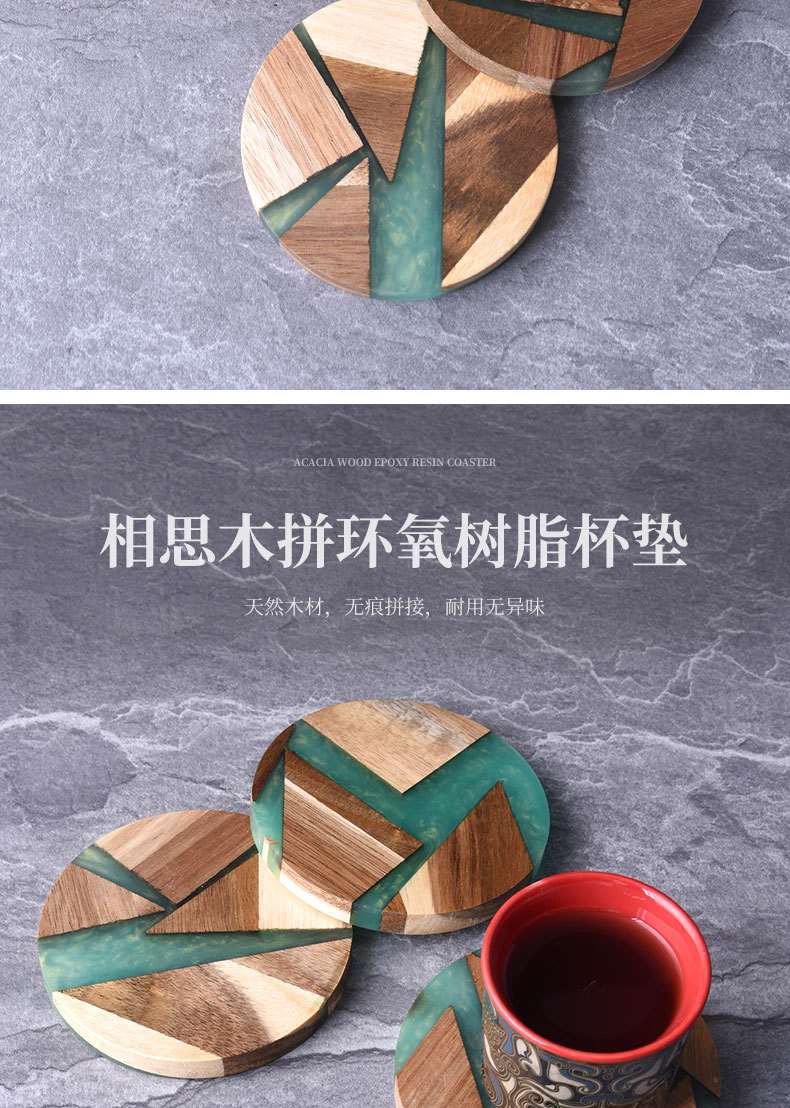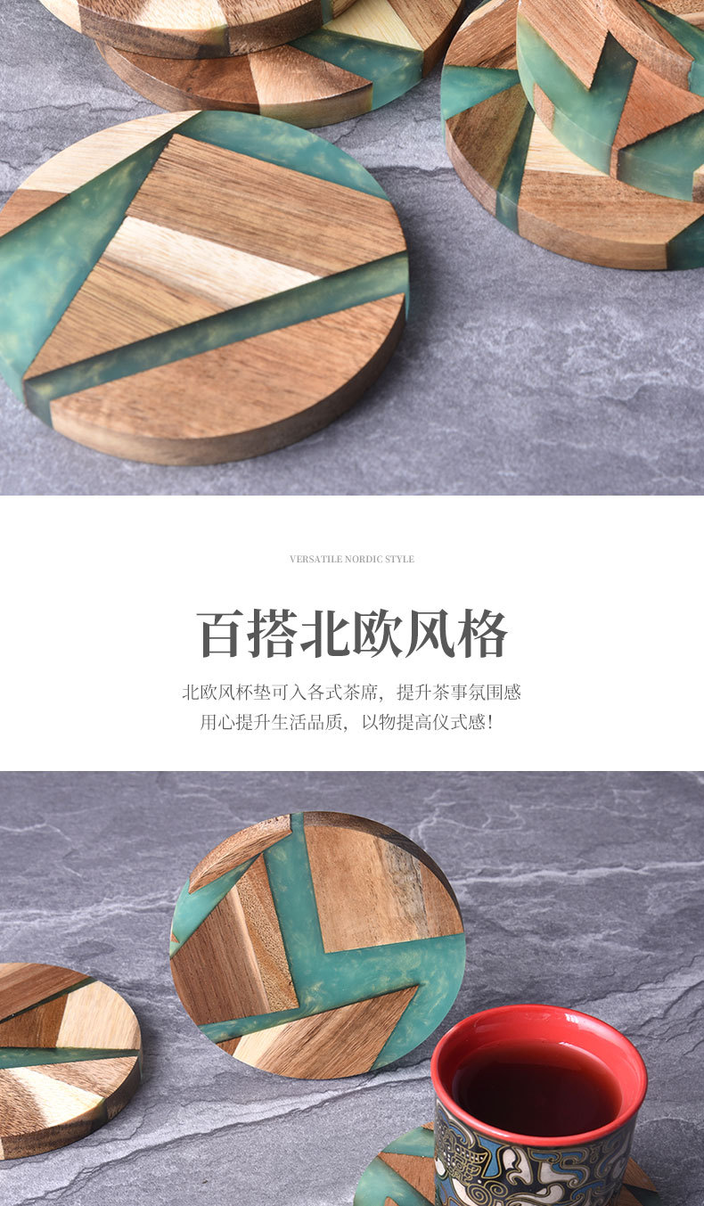 亚马逊现货环氧树脂杯垫实木相思木杯垫创意茶托隔热垫轻奢高级感