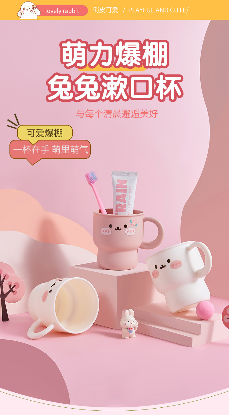 浴室洗刷塑料杯成人刷牙漱口杯子可爱兔子塑料漱口杯儿童学生