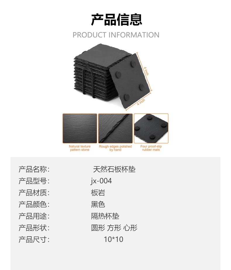 跨境亚马逊直供天然板岩杯垫厂家批发石板杯垫威士忌茶酒杯垫方形