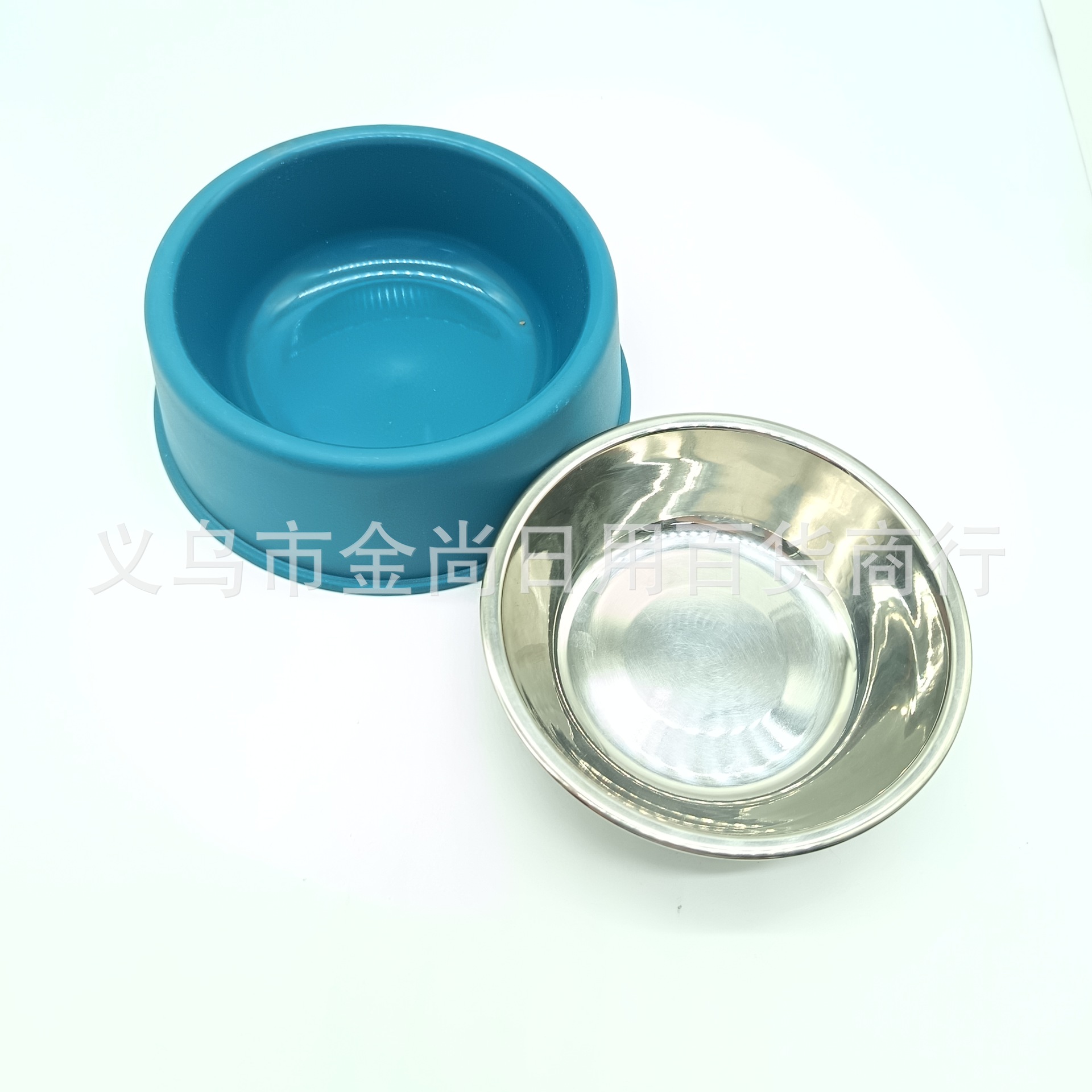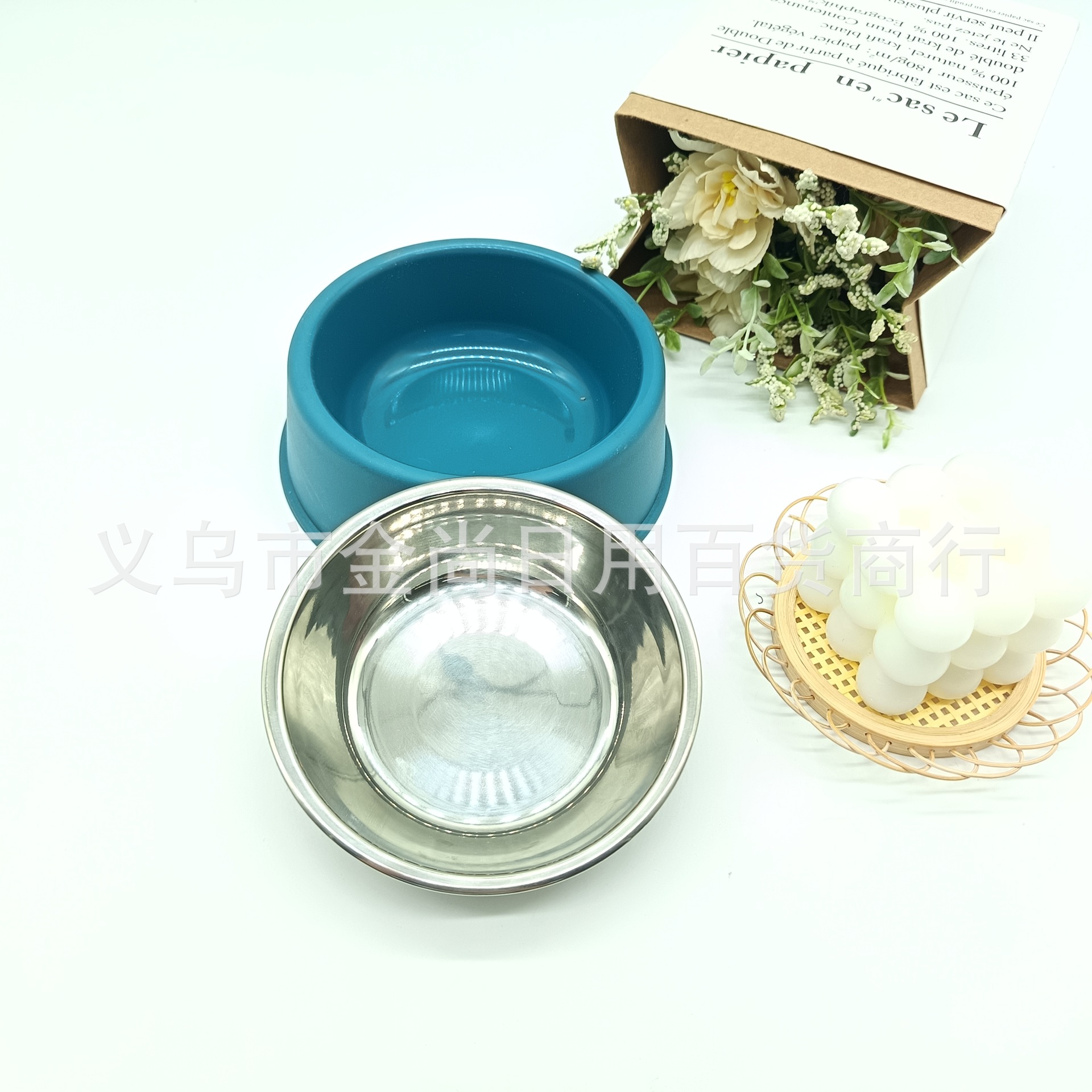跨境糖果色防滑单碗水猫碗狗碗可拆分不锈钢宠物碗高颜值圆形简约