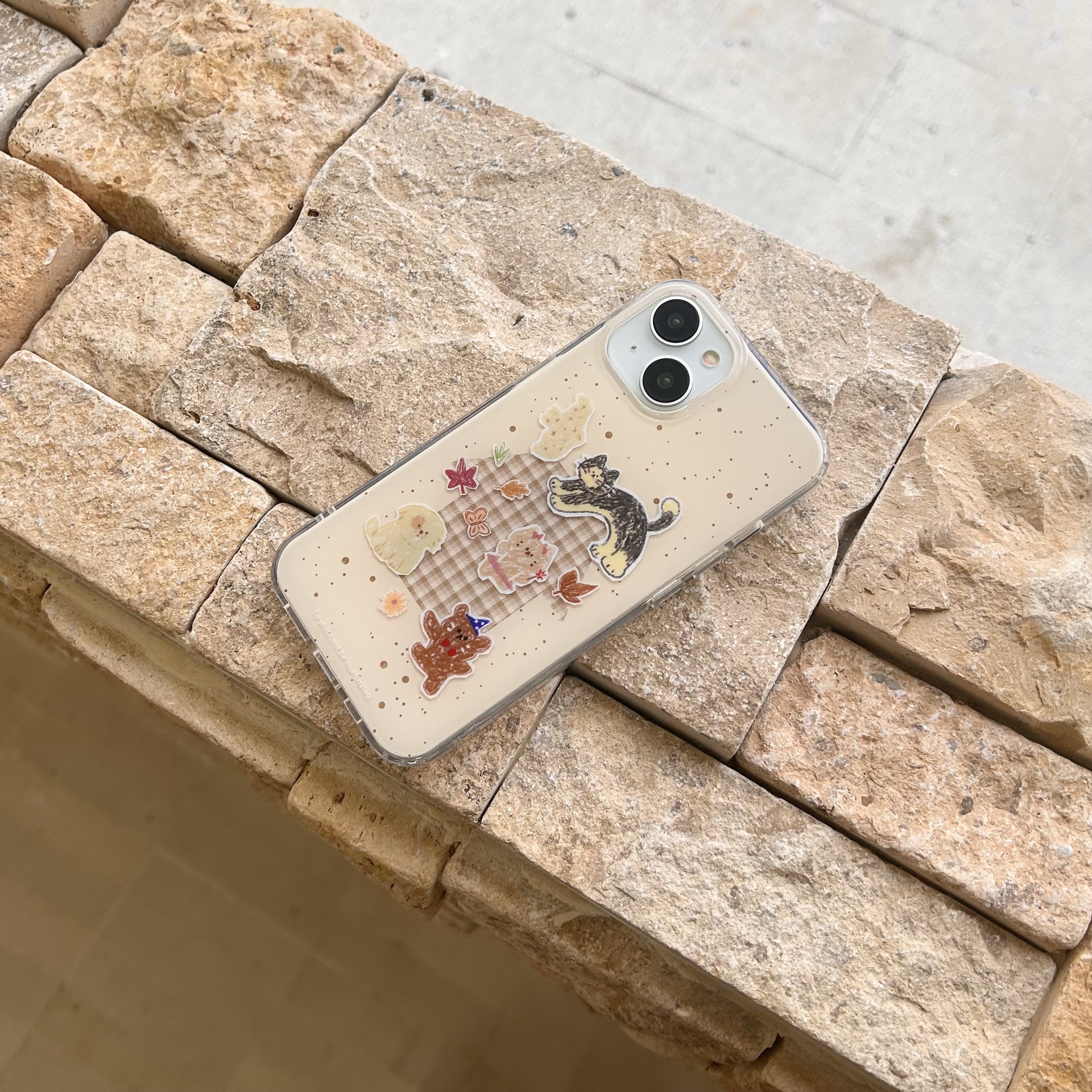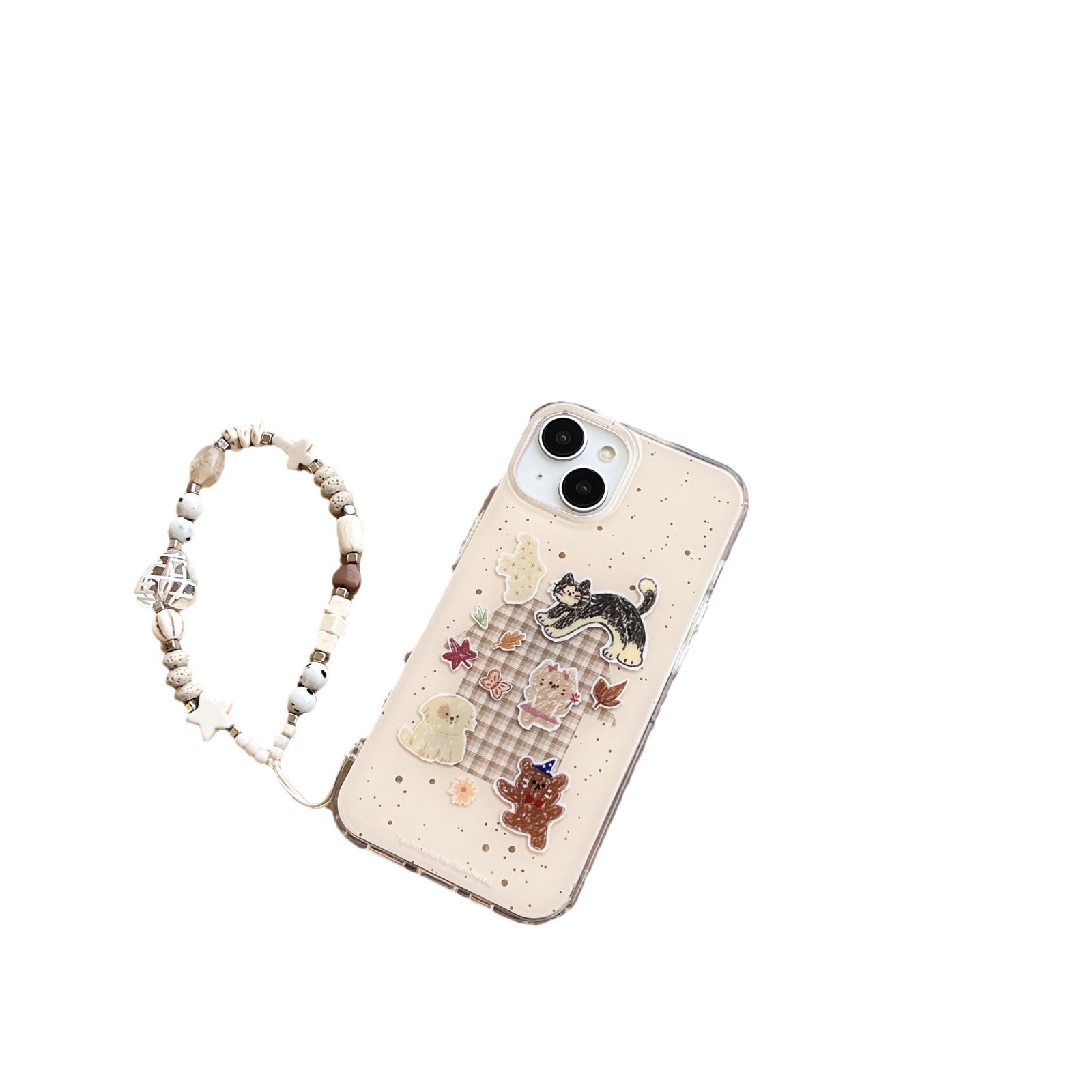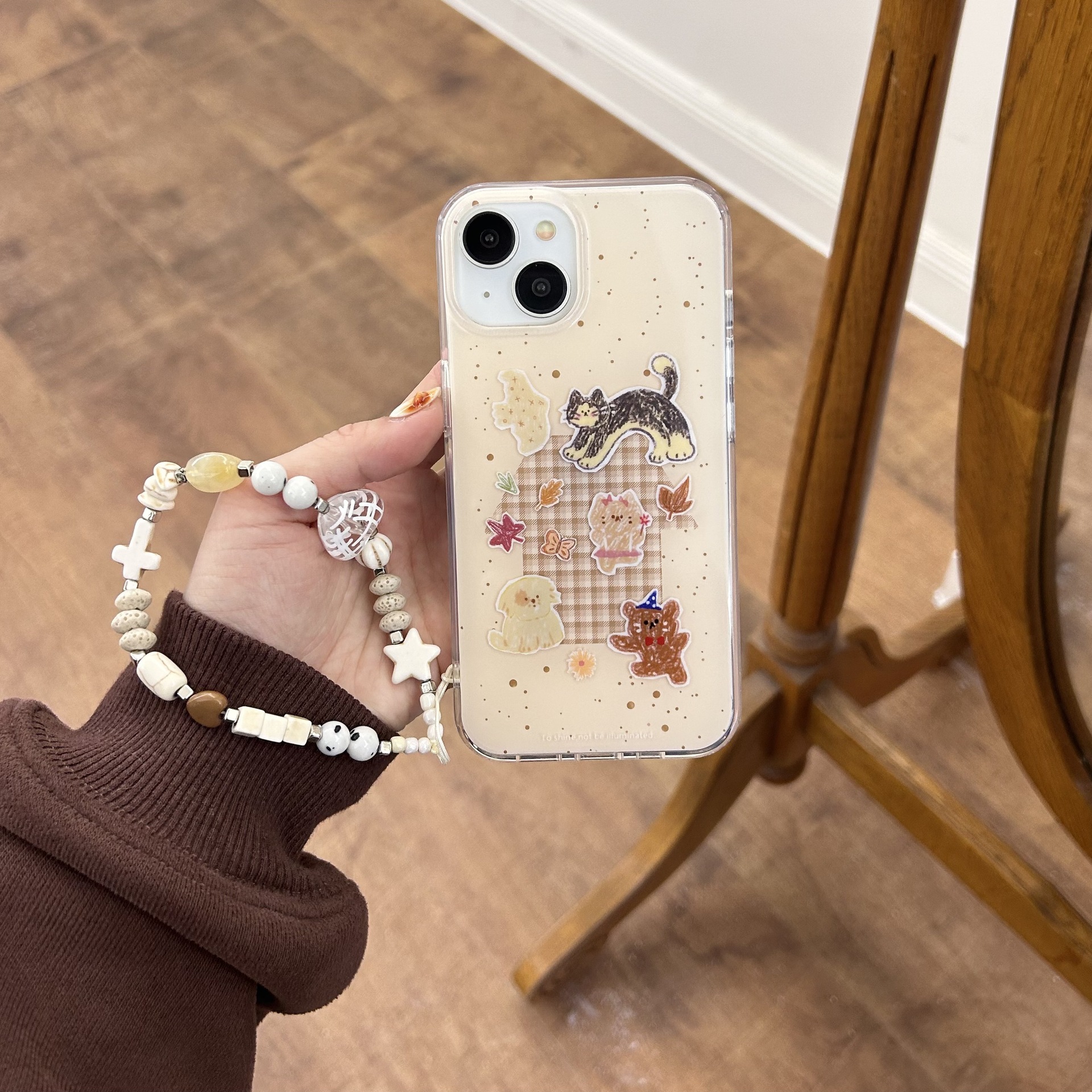 涂鸦可爱猫咪小狗链条适用iPhone16苹果15ProMax/14/13手机壳新款