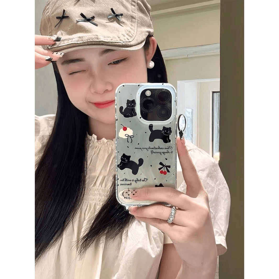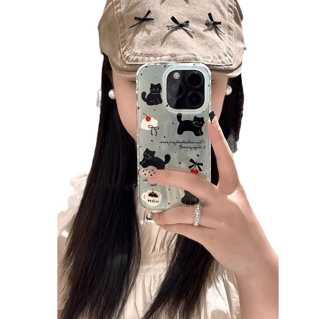 薄荷绿樱桃猫咪适用苹果16手机壳iphone15保护套14华为p7oppo小米