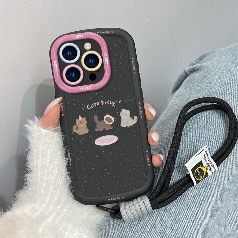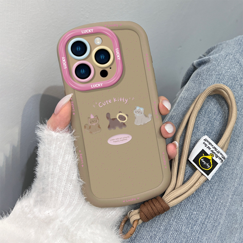 咖啡小猫适用苹果15手机壳新款iphone14promax简约13女挂绳16/8p