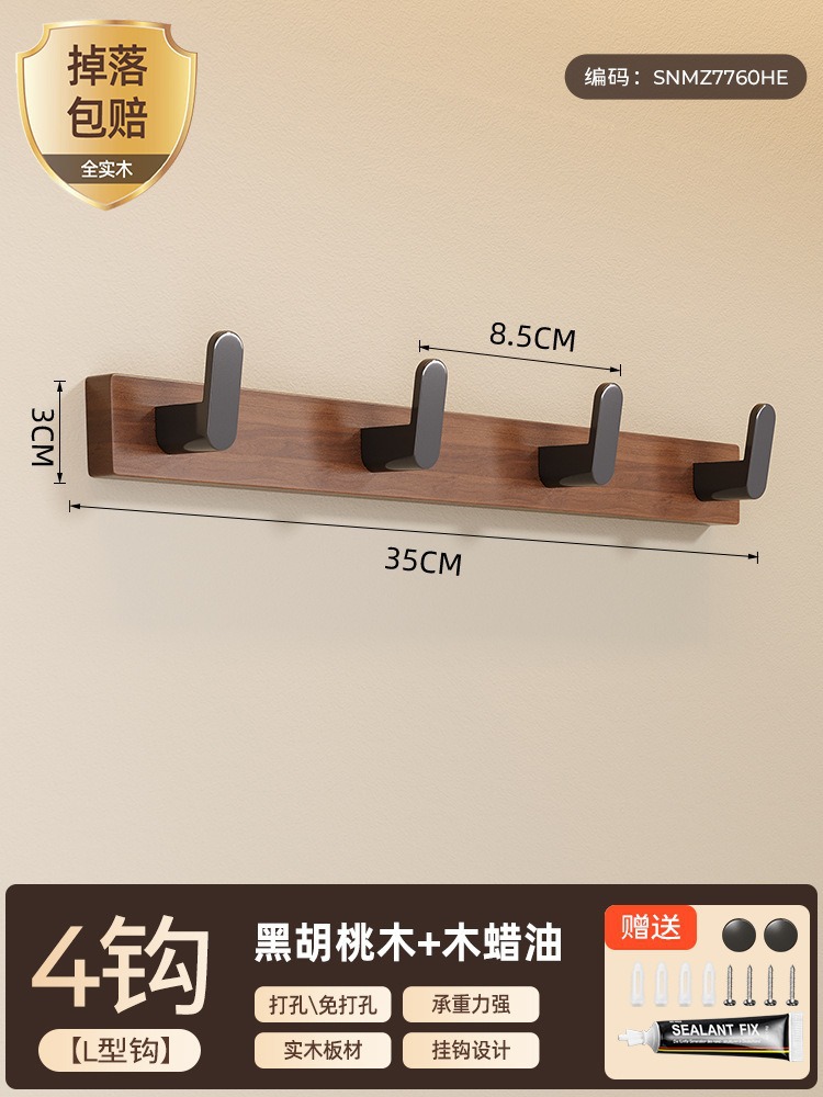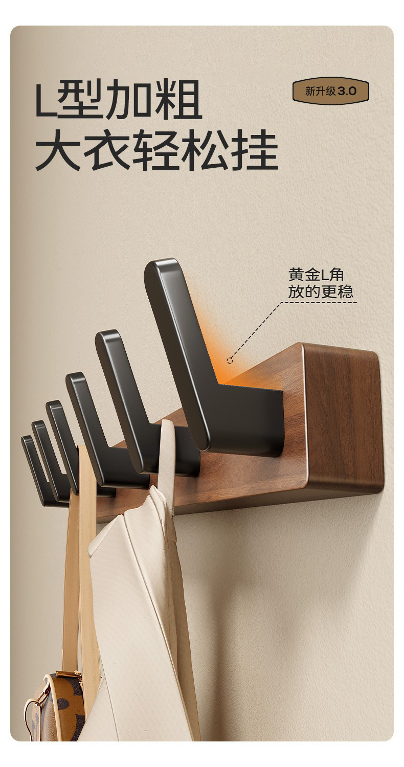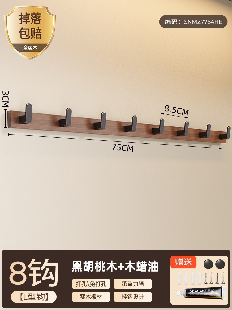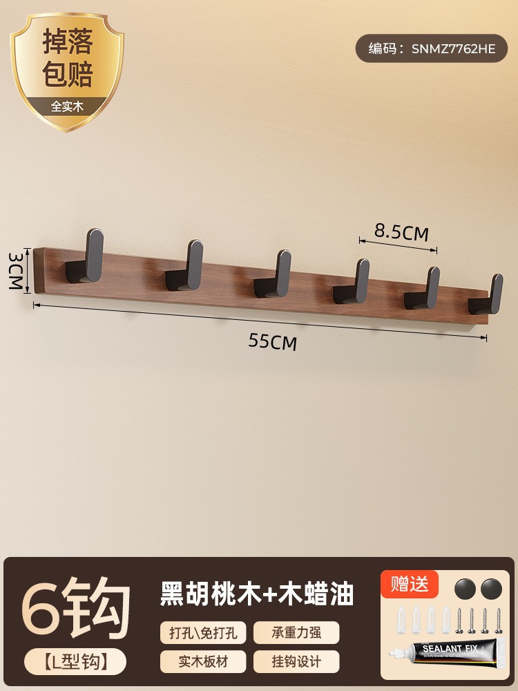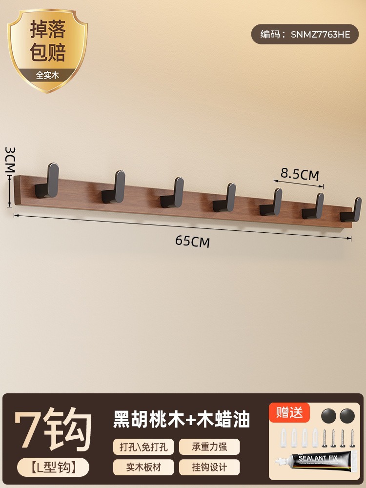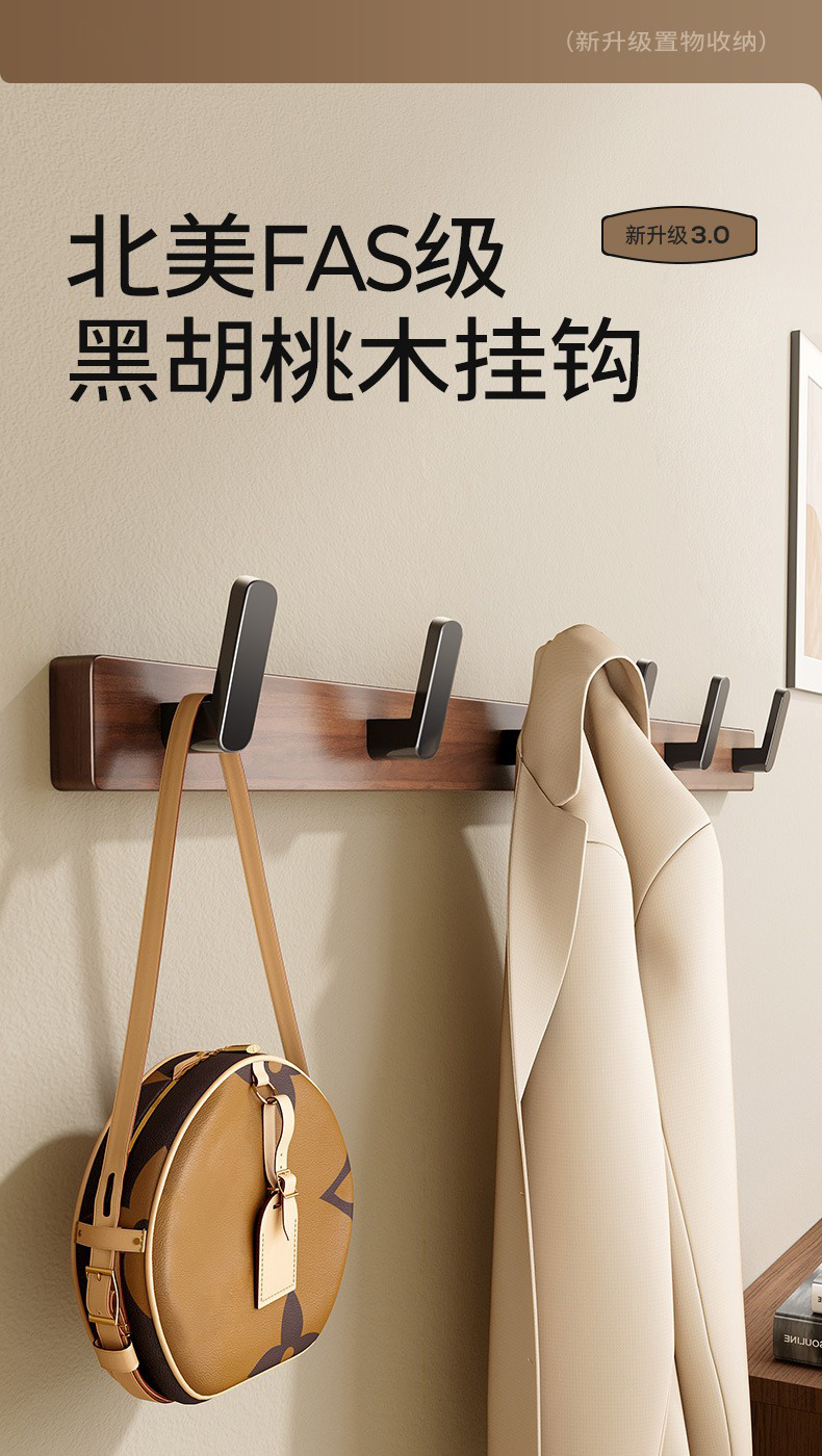 高文海胡桃木挂钩排钩打孔收纳神器卫生间浴室家用墙上挂衣架壁挂