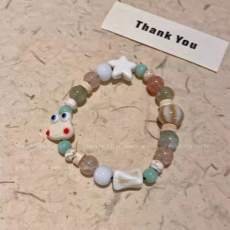 韩系多巴胺串珠手链小众感几何闺蜜百搭仿珍珠手串女叠戴手饰