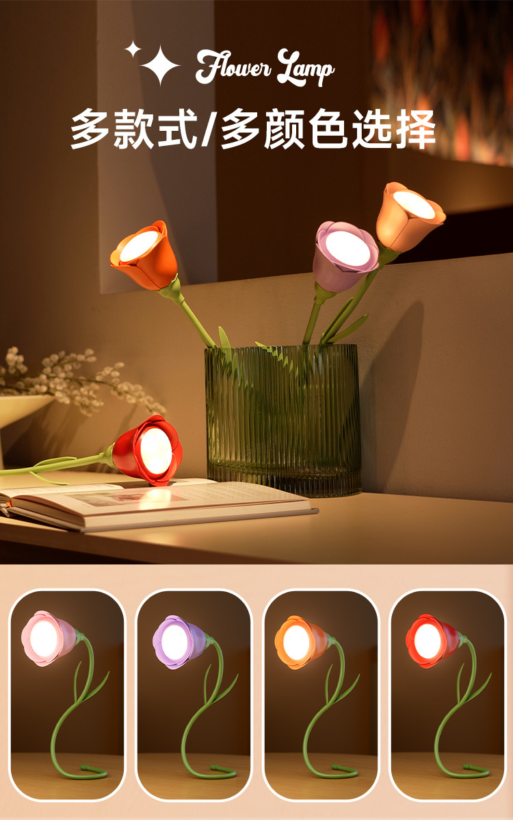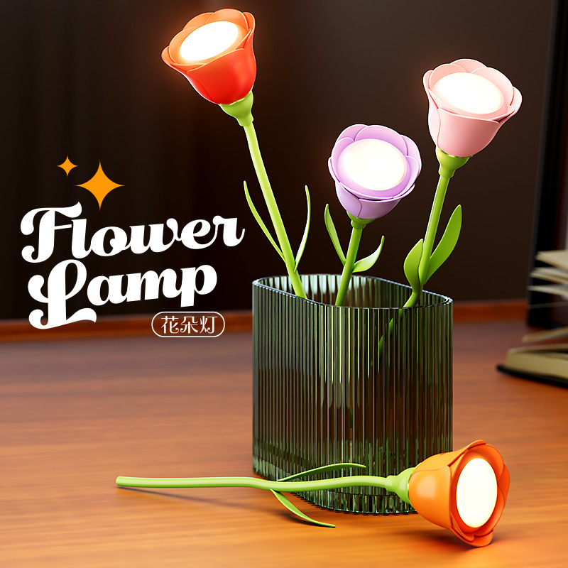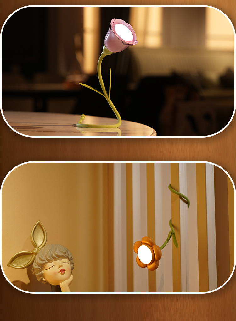 玫瑰花向日葵小夜灯 卧室床头台灯氛围灯小台灯 迷你摆件桌面装饰