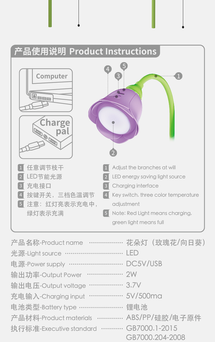 【产品名称】充电花朵小夜灯