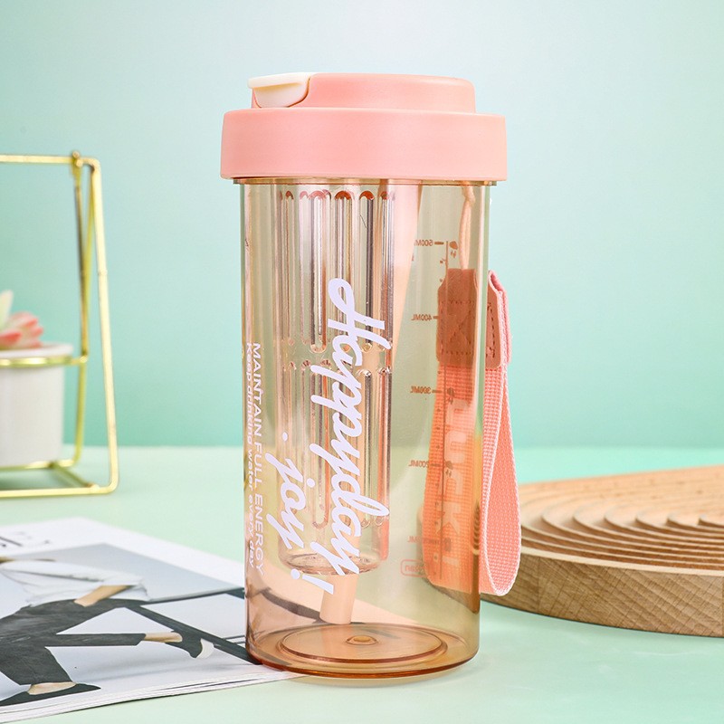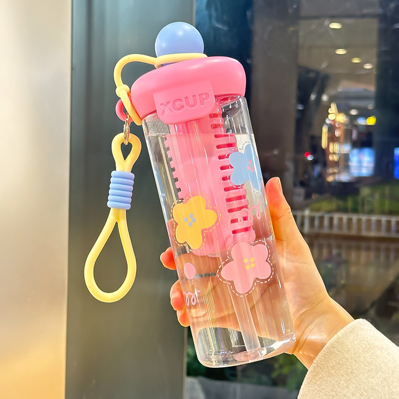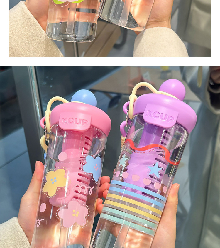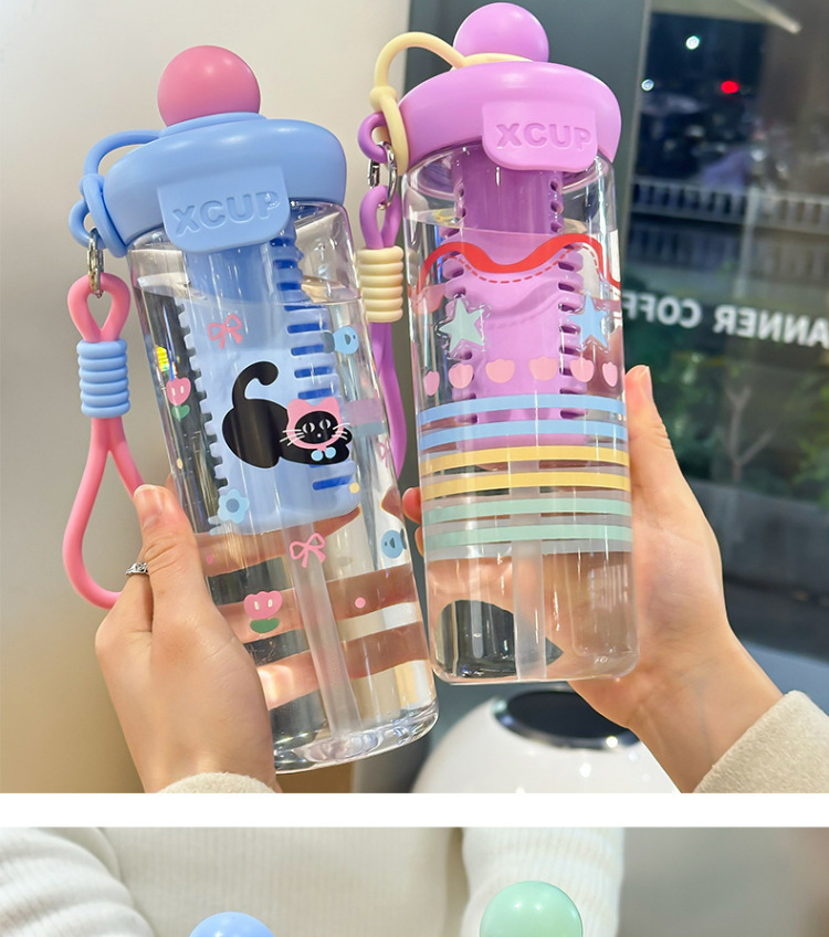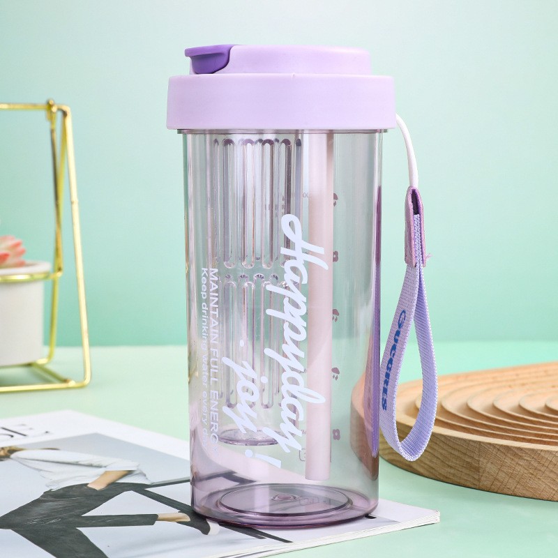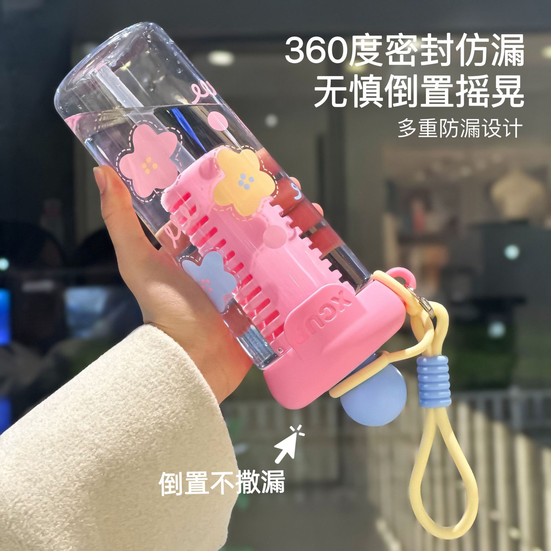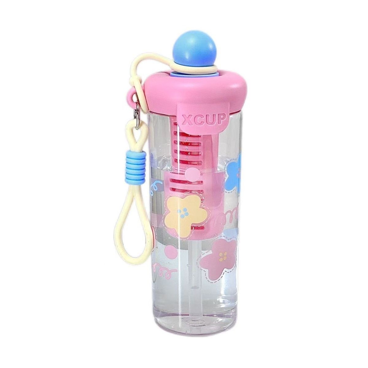 2025新款卡通大容量吸管杯茶水分离泡茶杯户外运动带提绳塑料水杯