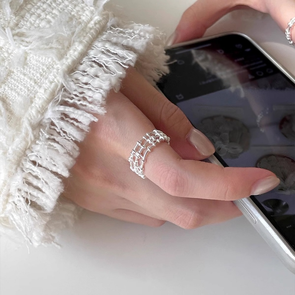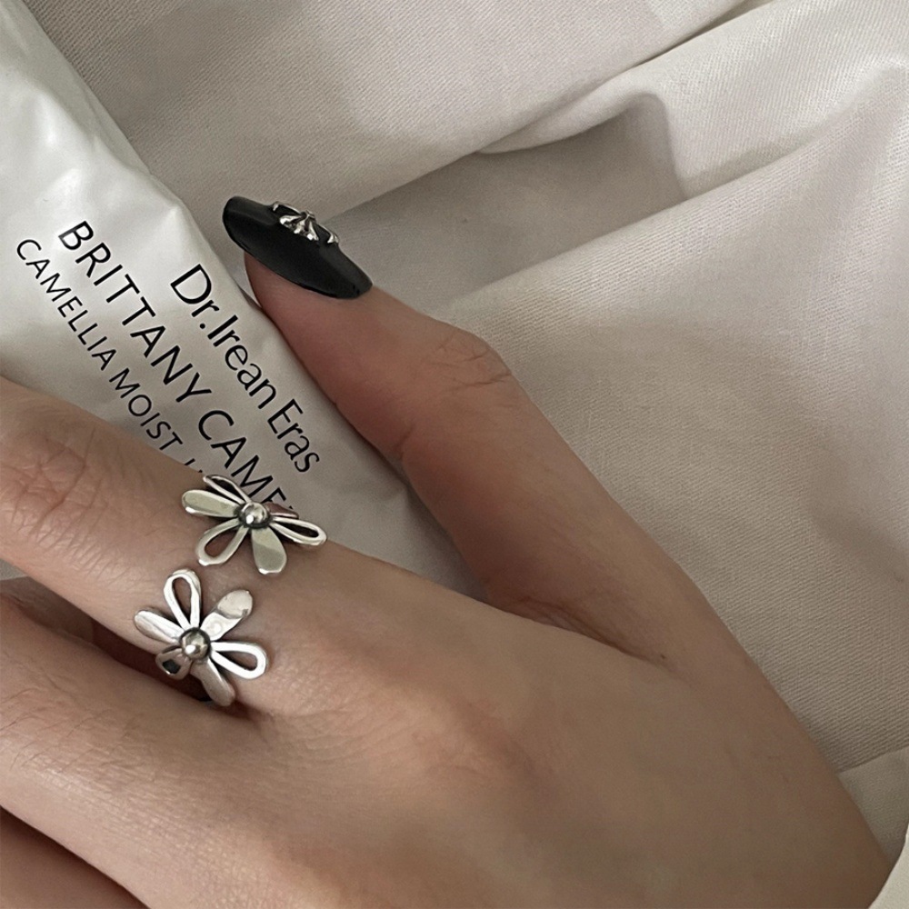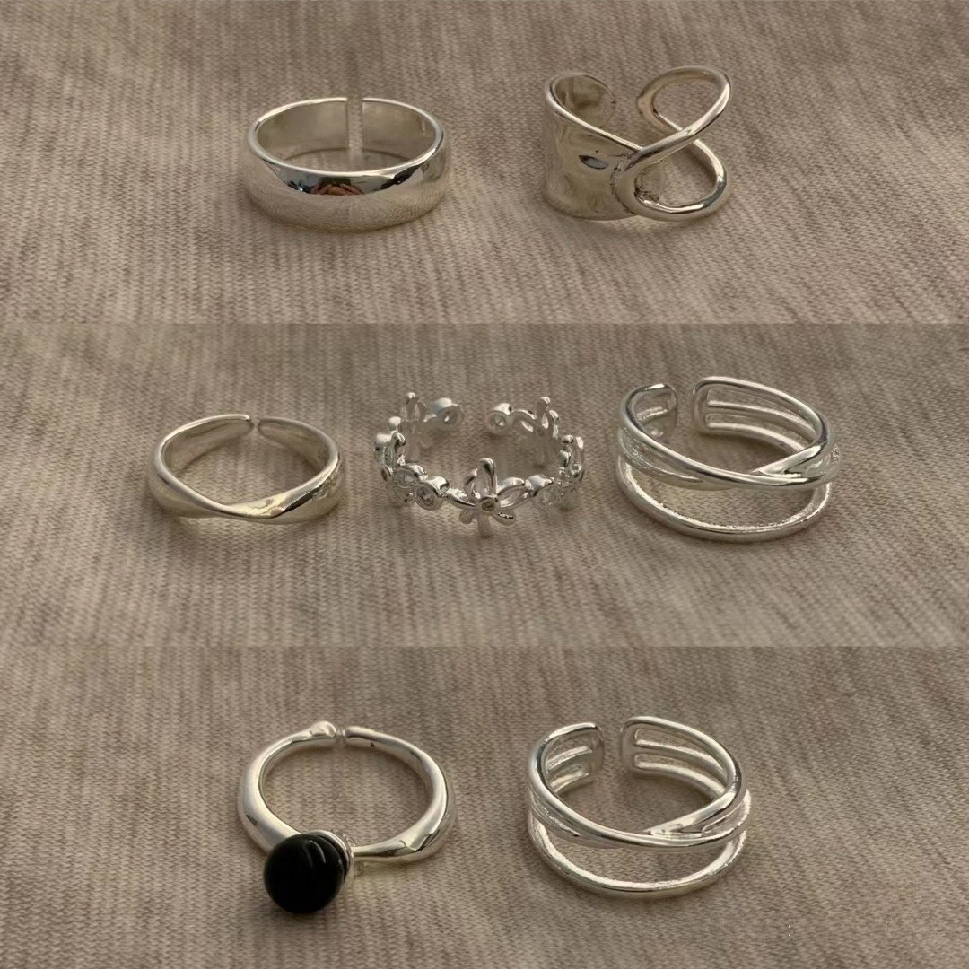 重工简约黑玛纯银戒指女小众设计复古高级感不掉色轻奢银饰品批发
