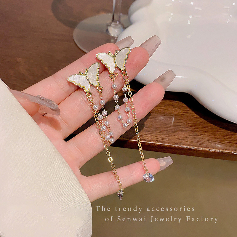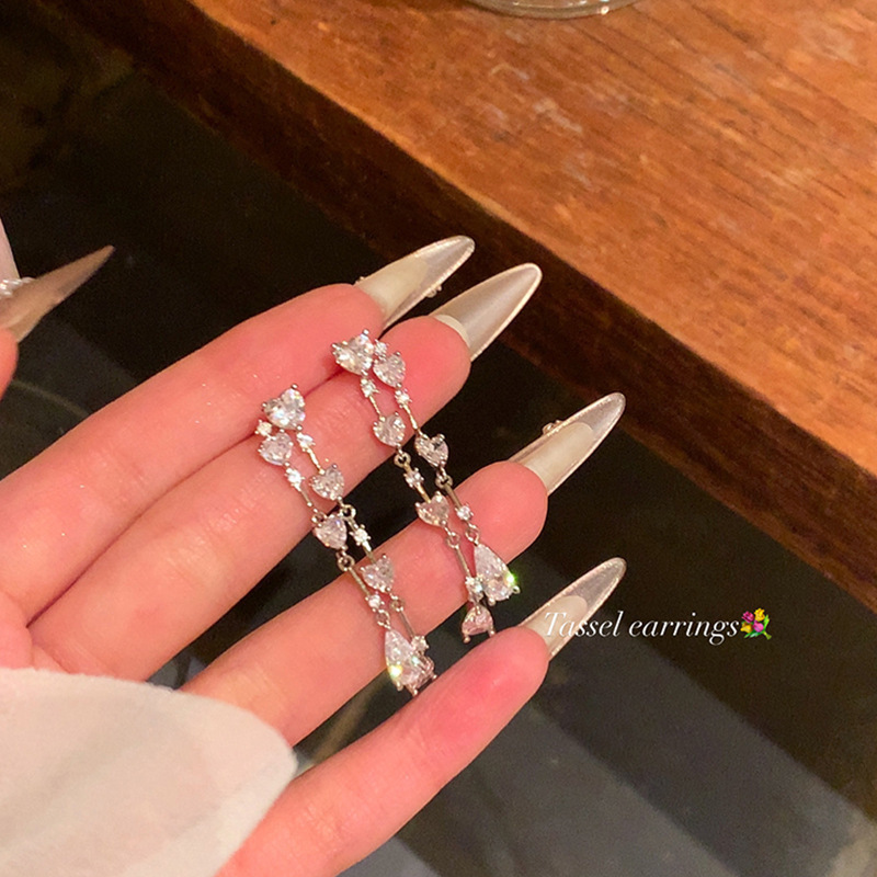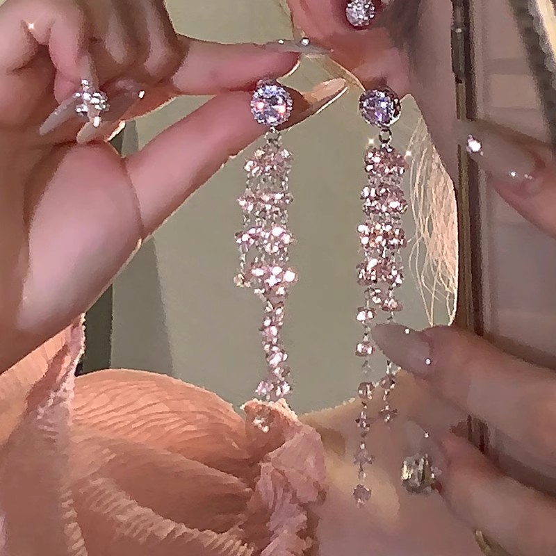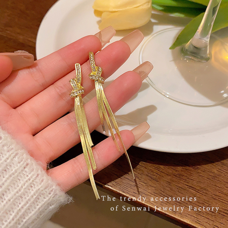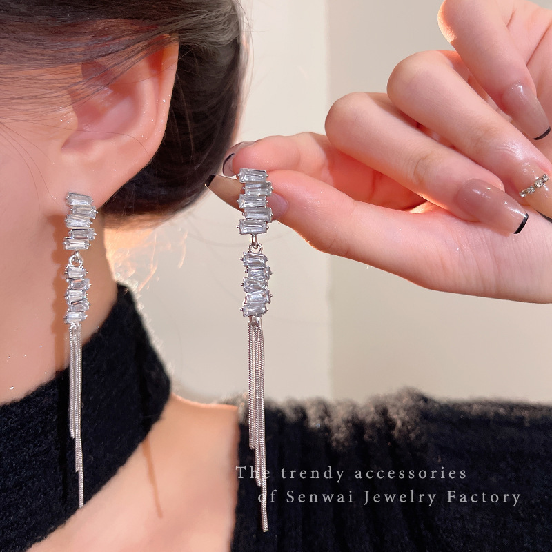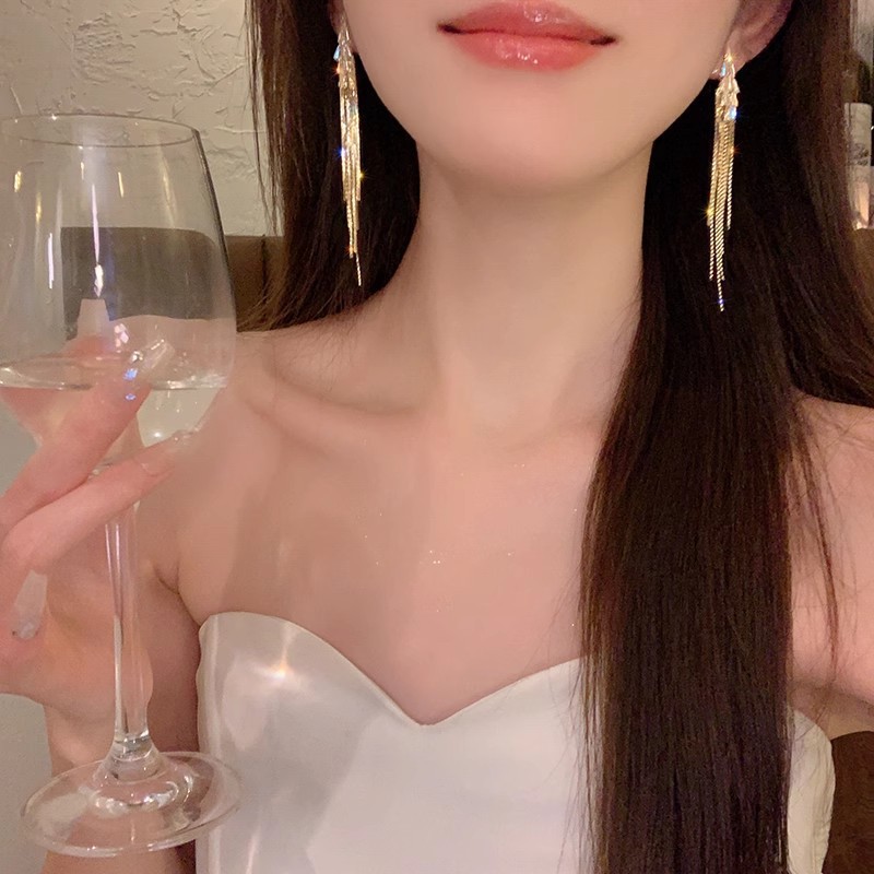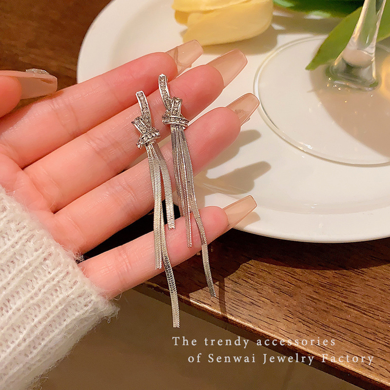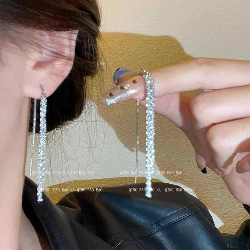 925银针长款流苏锆石耳环女ins潮轻奢小众百搭气质蝴蝶结耳钉耳饰