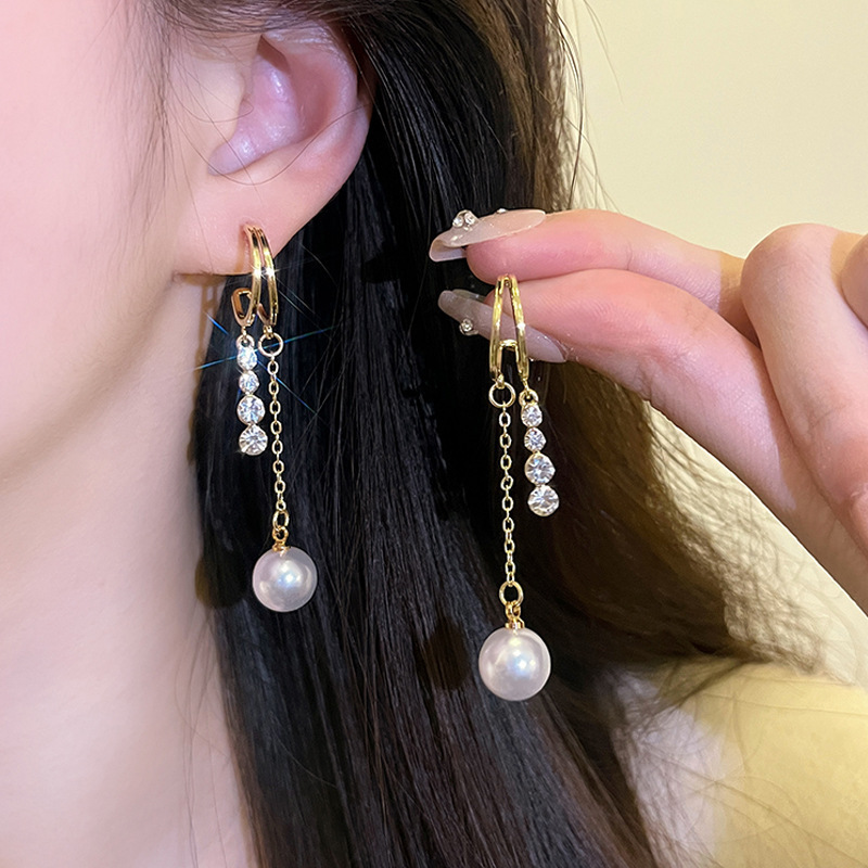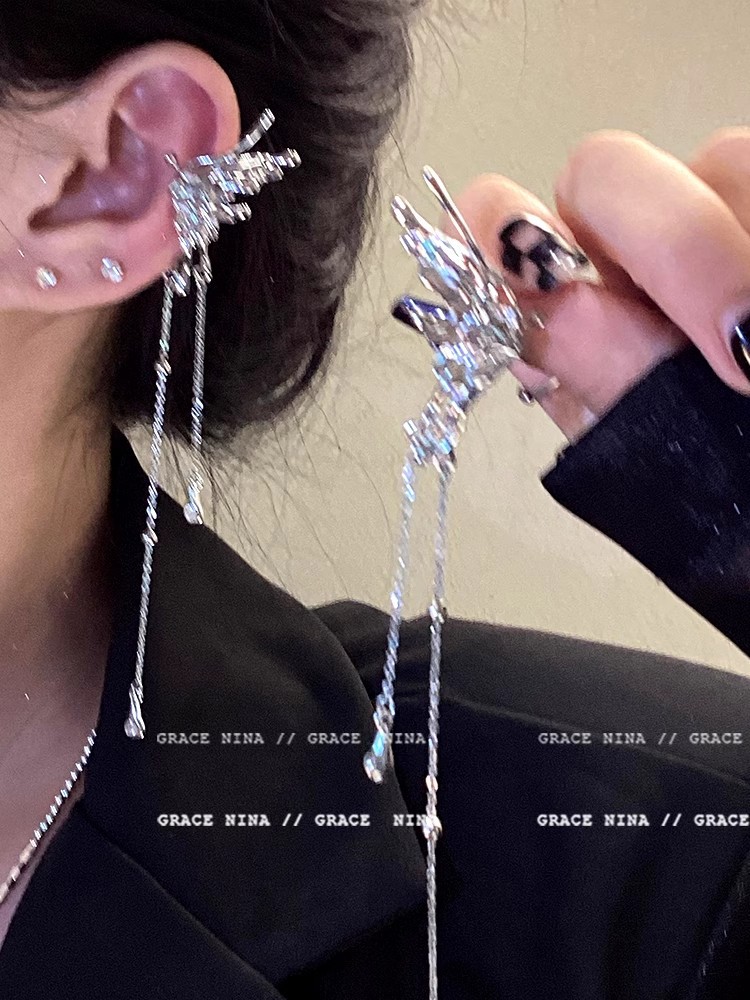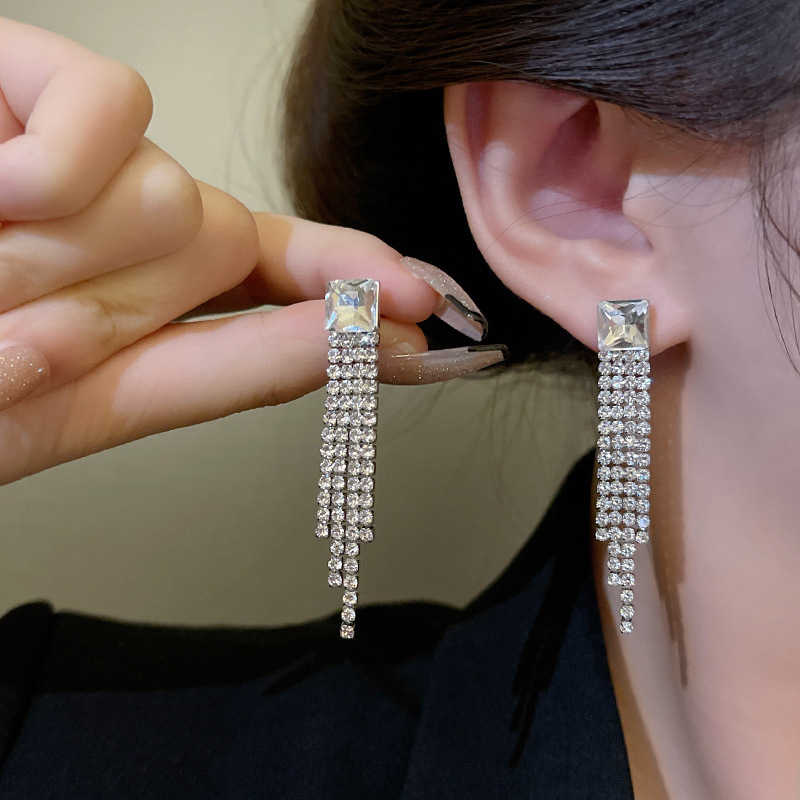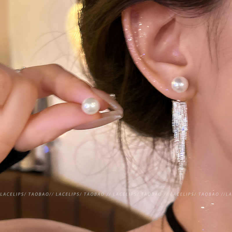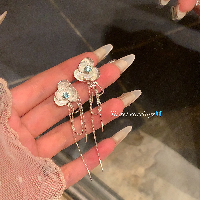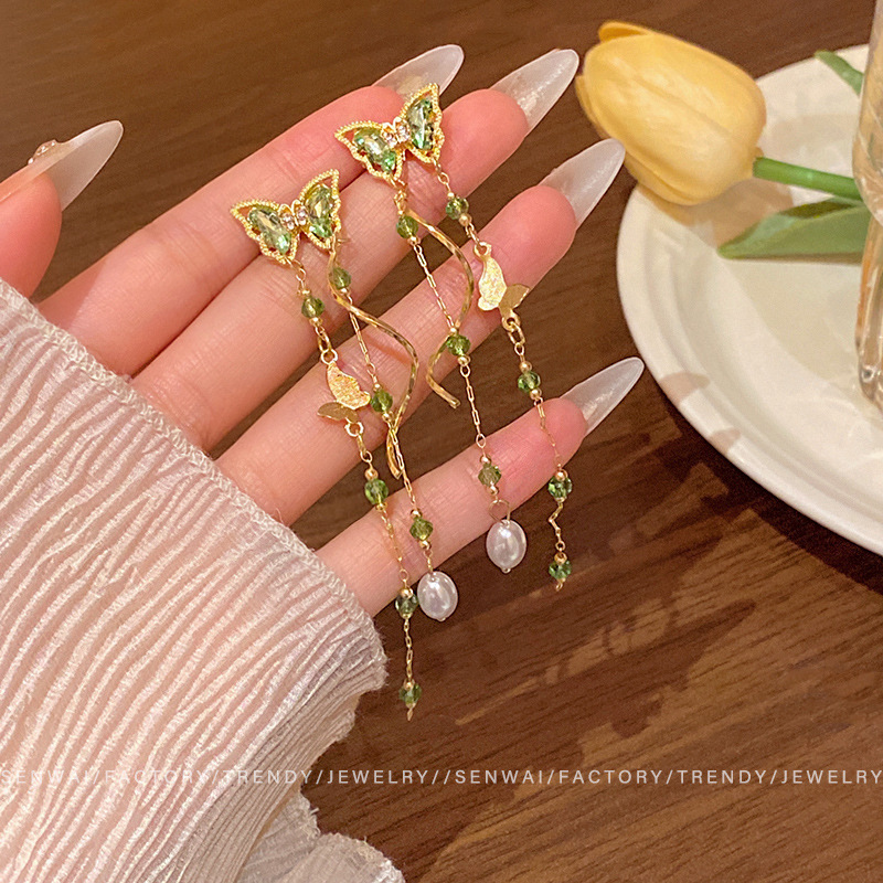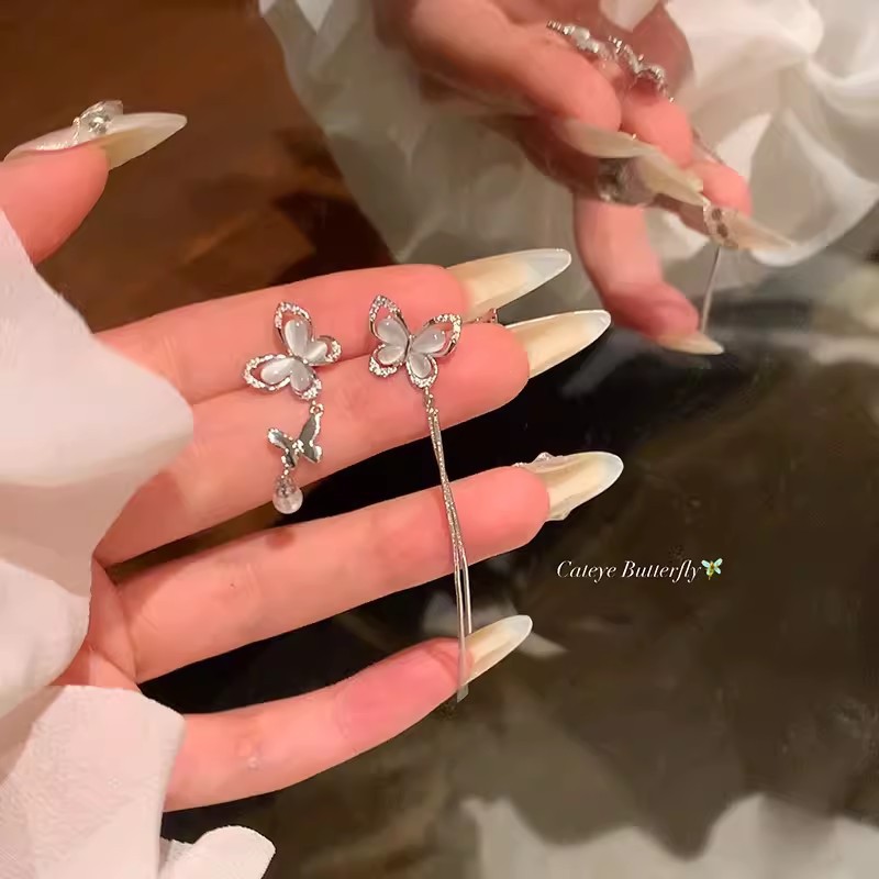 925银针长款流苏锆石耳环女ins潮轻奢小众百搭气质蝴蝶结耳钉耳饰