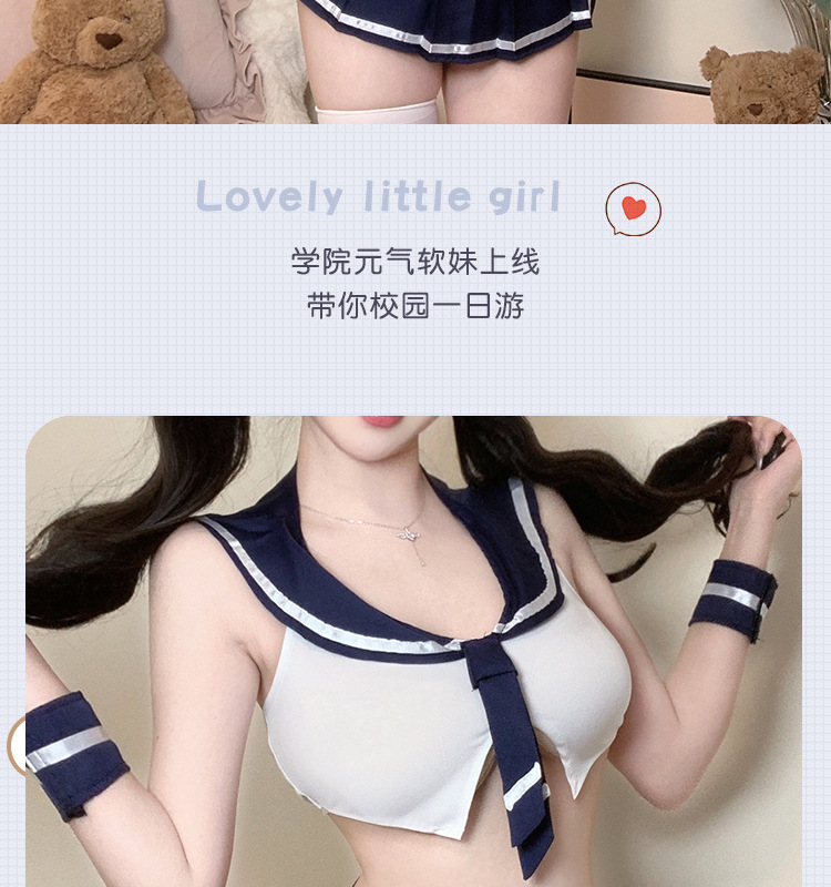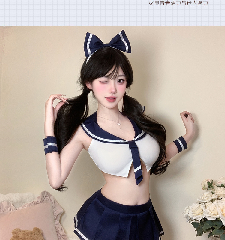 性感情趣内衣纯欲翻领蝴蝶结装饰百褶短裙减龄学生装制服套装2157
