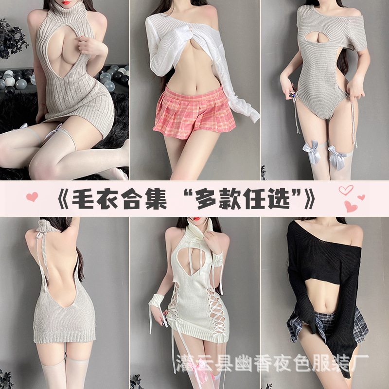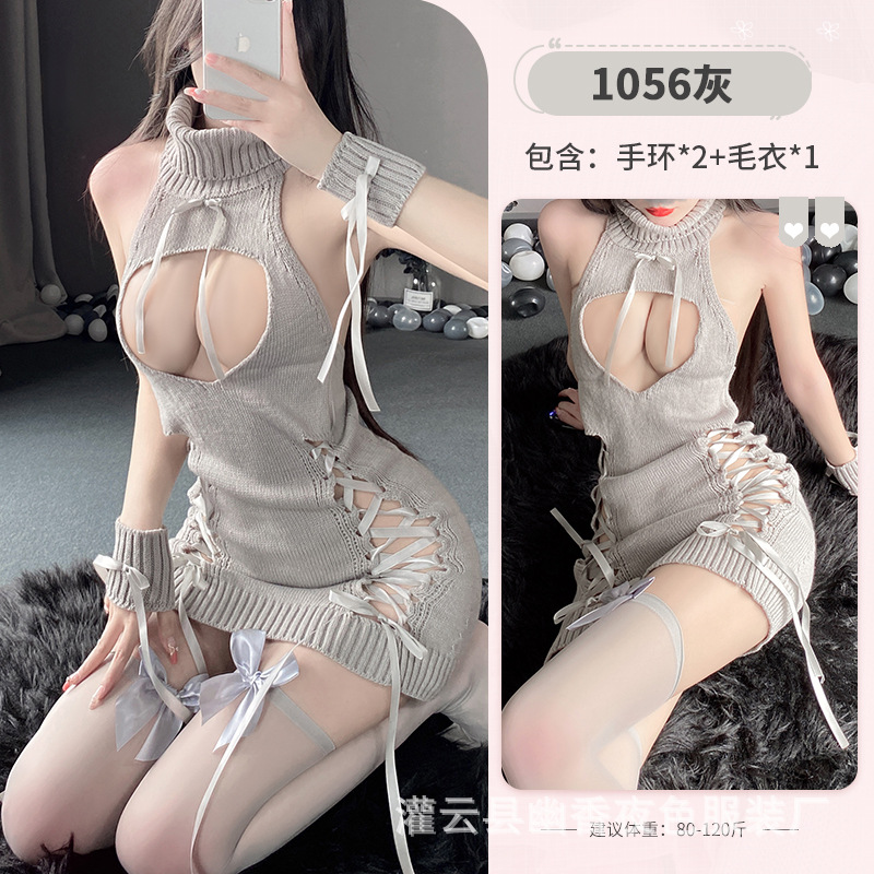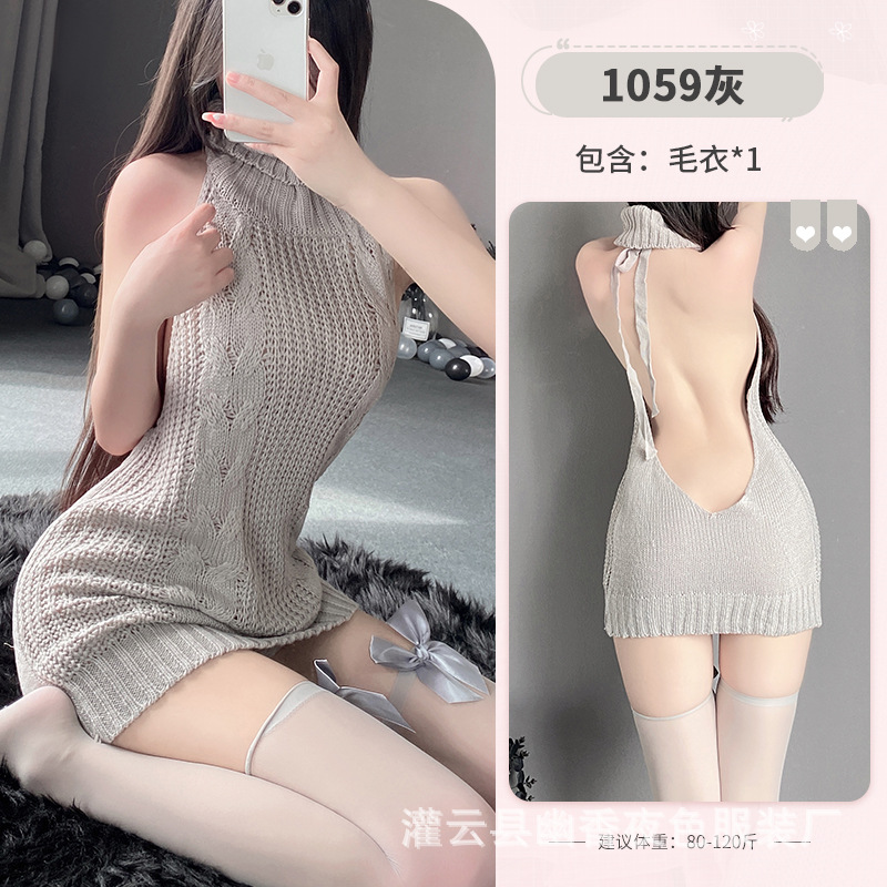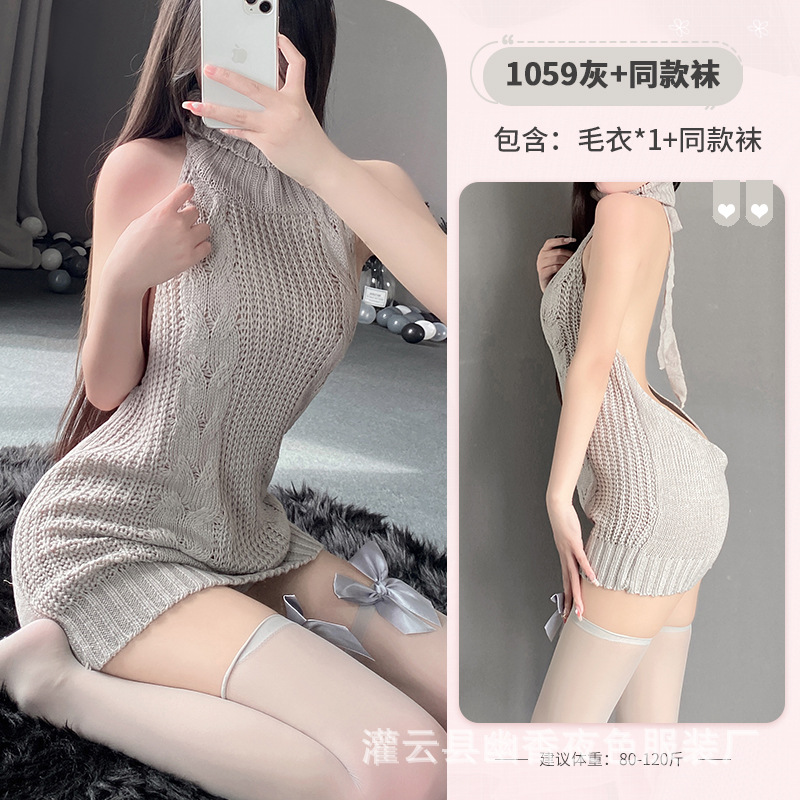 林林婷性感情趣内衣女激情露背纯欲制服诱惑免脱情欲毛衣套装组合