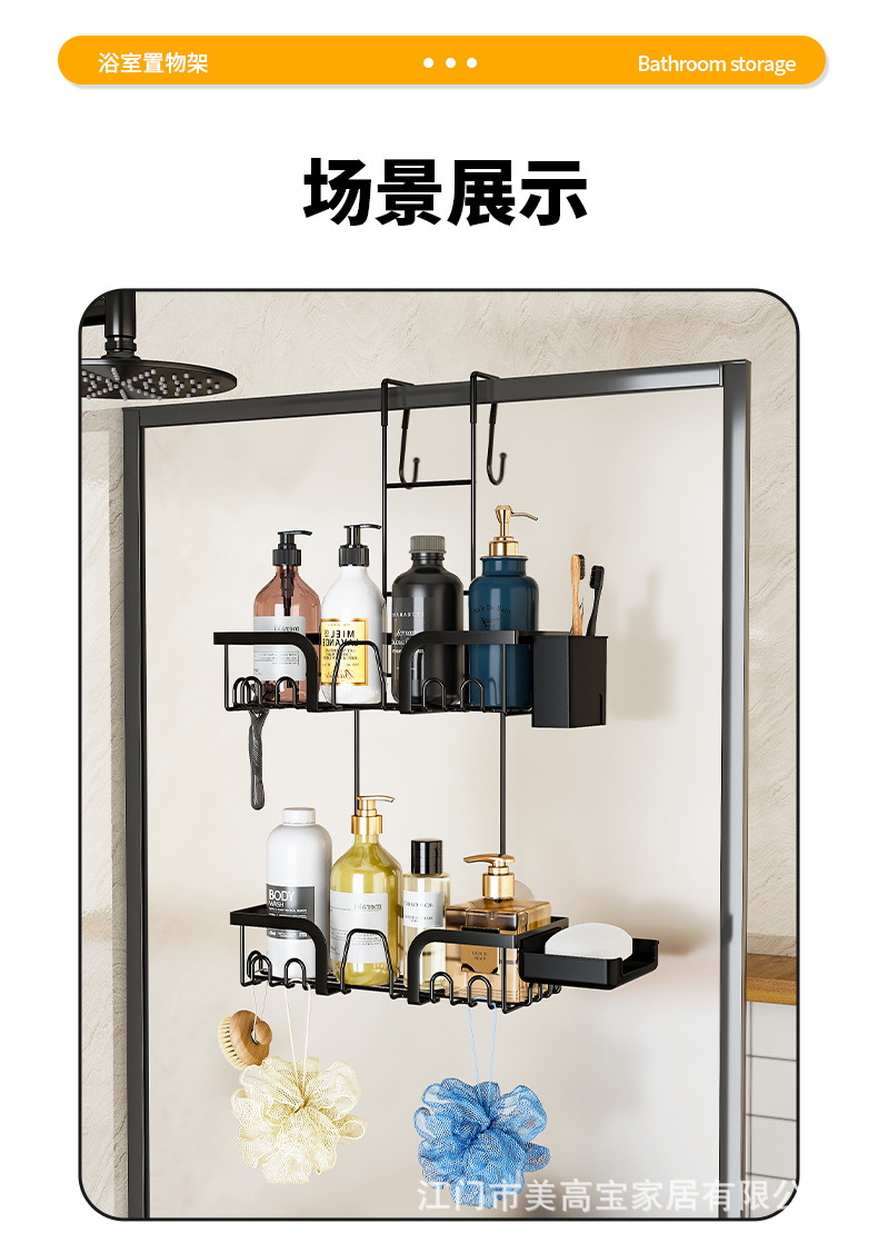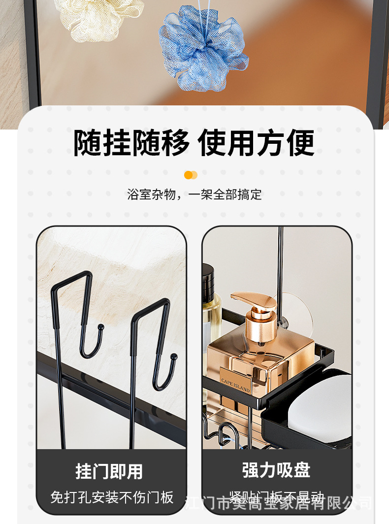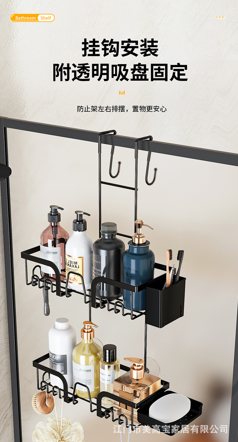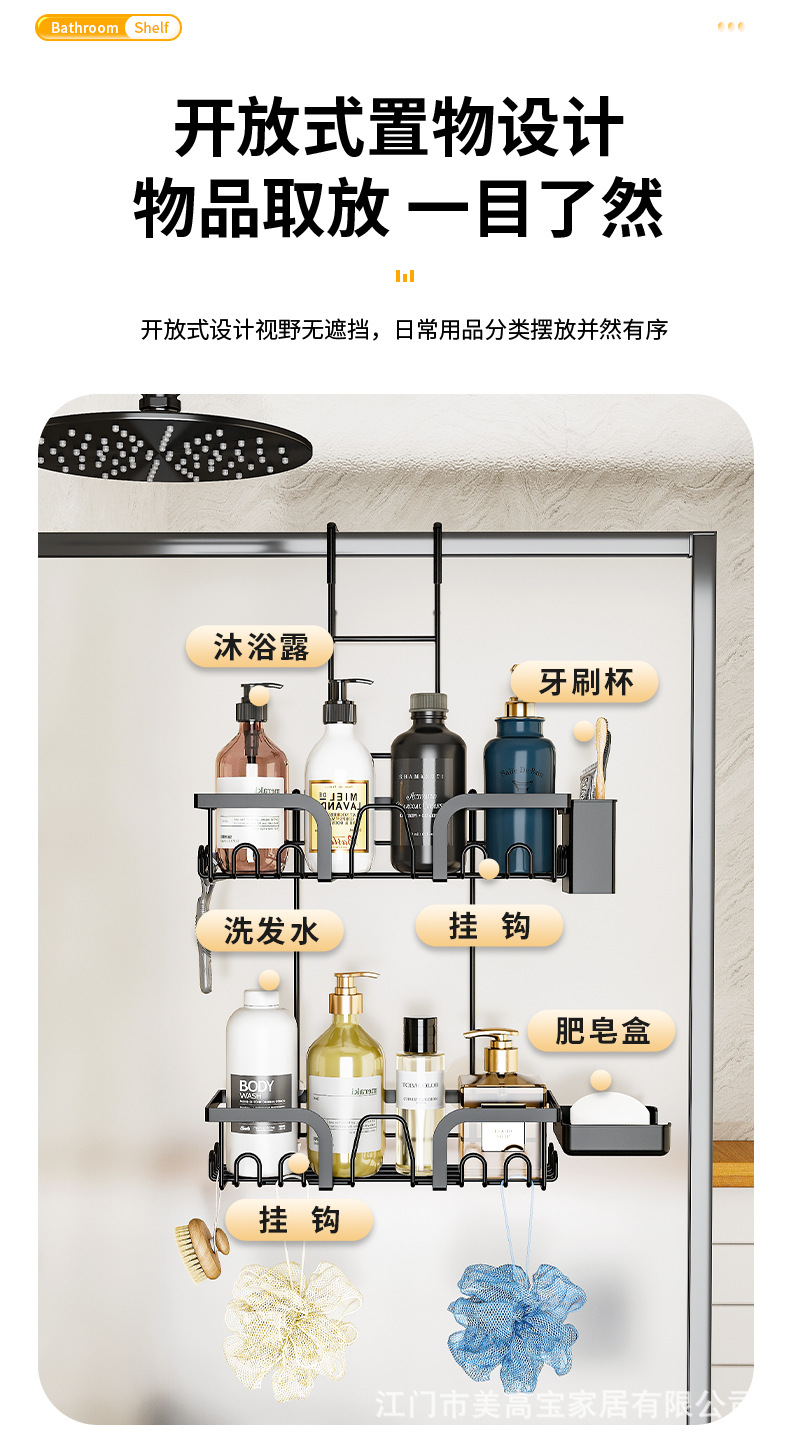 亚马逊淋浴房玻璃门毛巾架免打孔卫生间浴巾置物浴室门后挂钩挂架