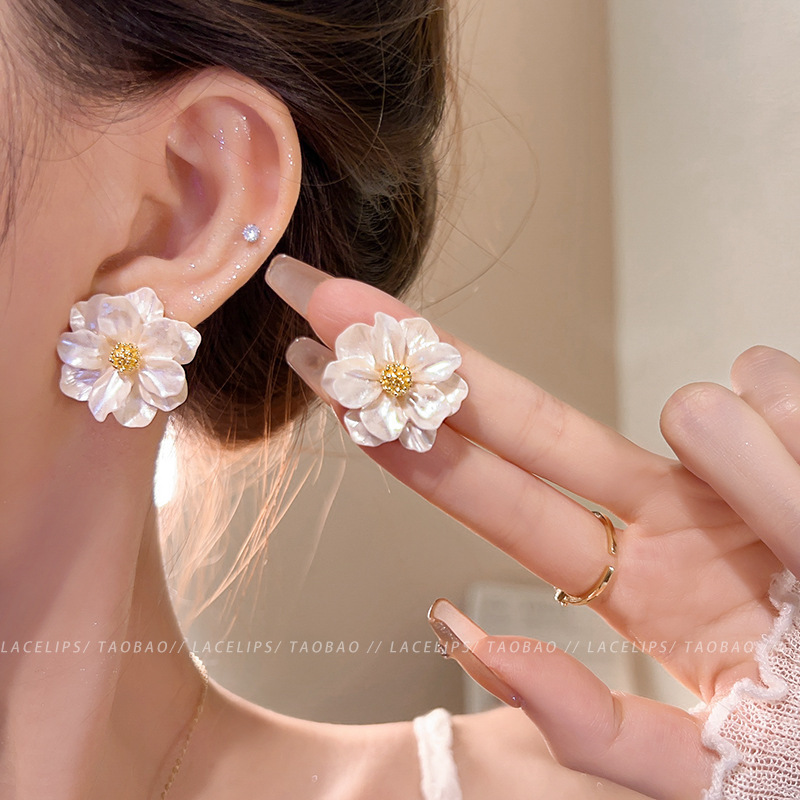 耳环饰品温柔气质高级感森系耳钉耳饰超仙氛围感网纱花朵耳环女
