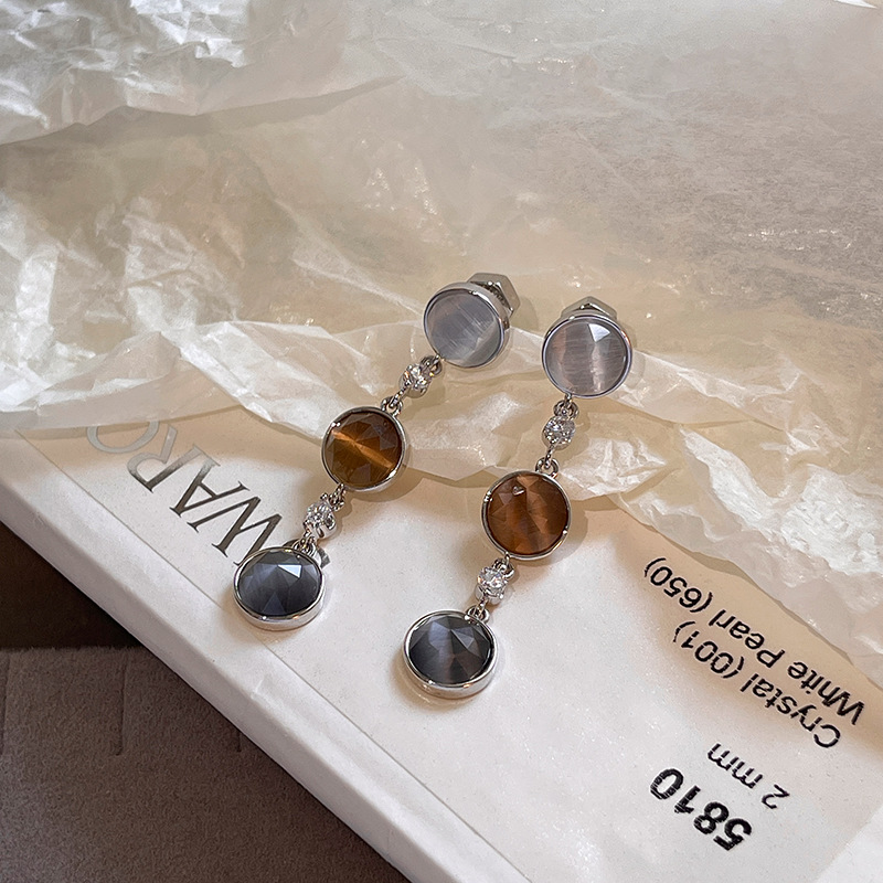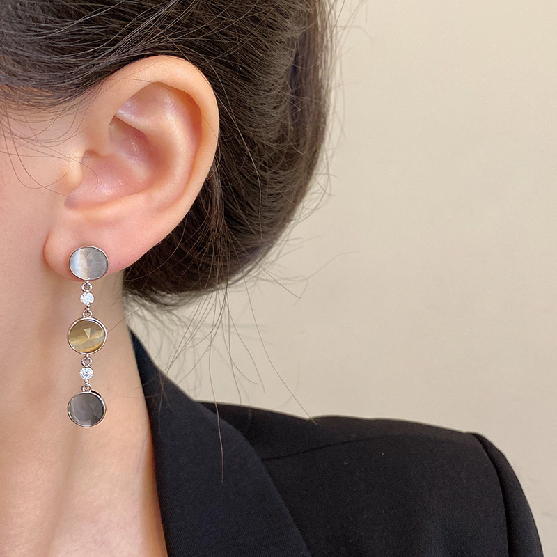 饰品耳环S925纯银针轻奢小众耳钉耳饰品古风复古猫眼石流苏耳环女