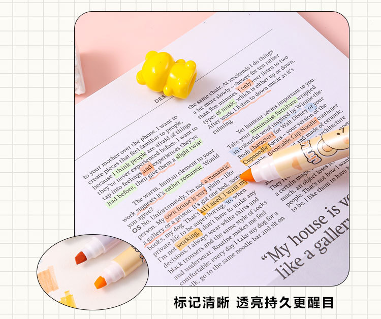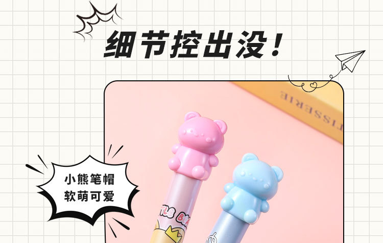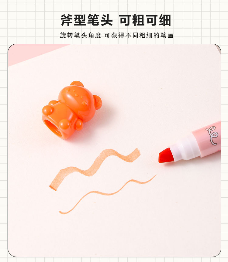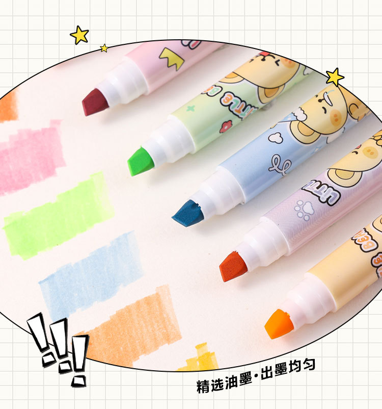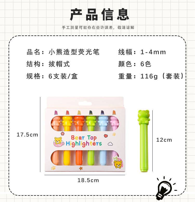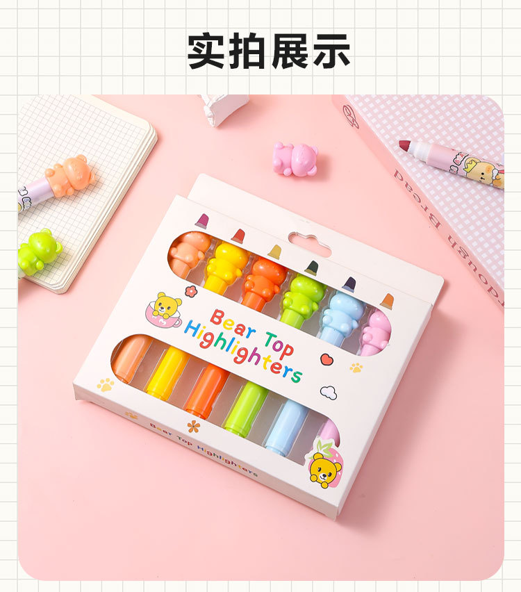 6色卡通小熊荧光笔标记记号笔涂鸦标记笔学生手账笔荧光笔套装