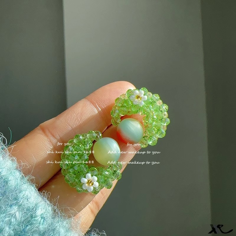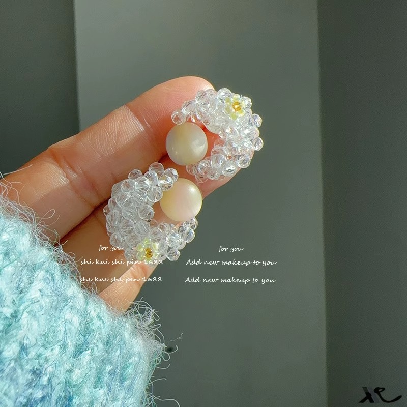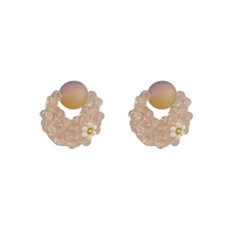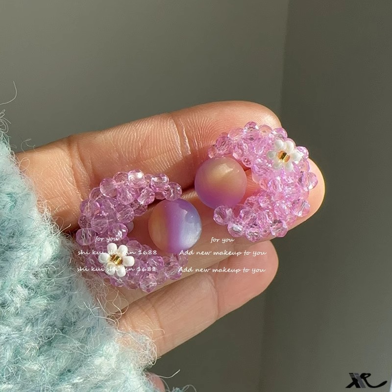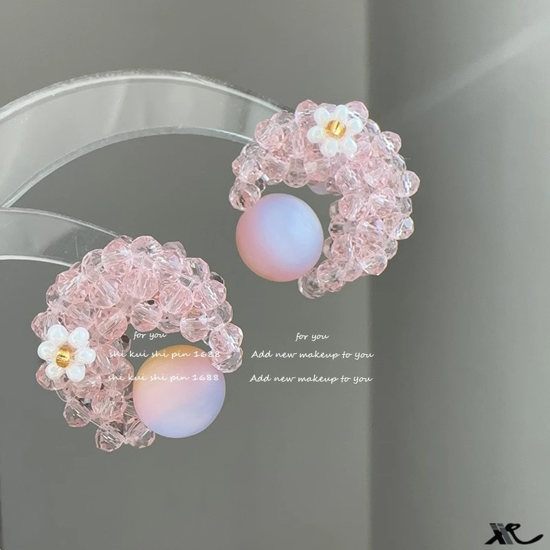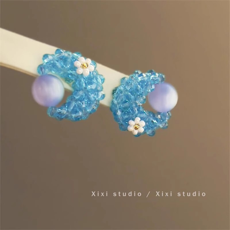 耳环小众精致高级感圆球耳钉耳饰度假风清凉感蓝色串珠花朵耳环女