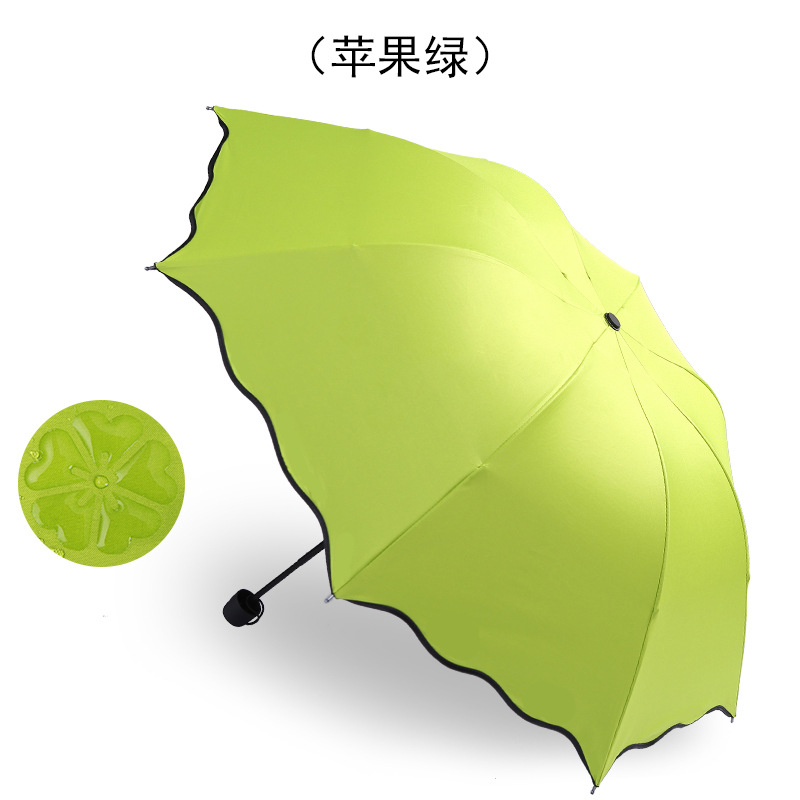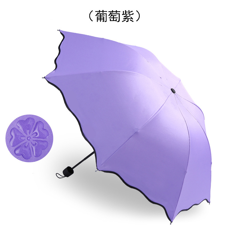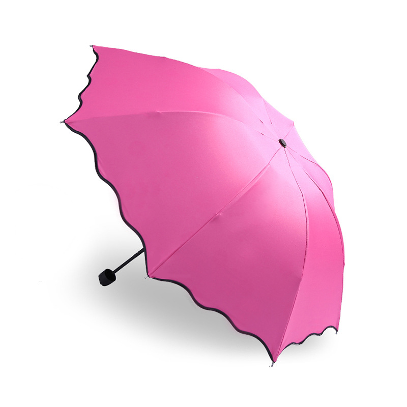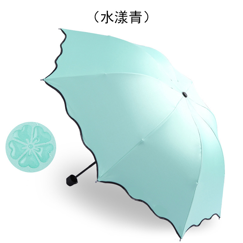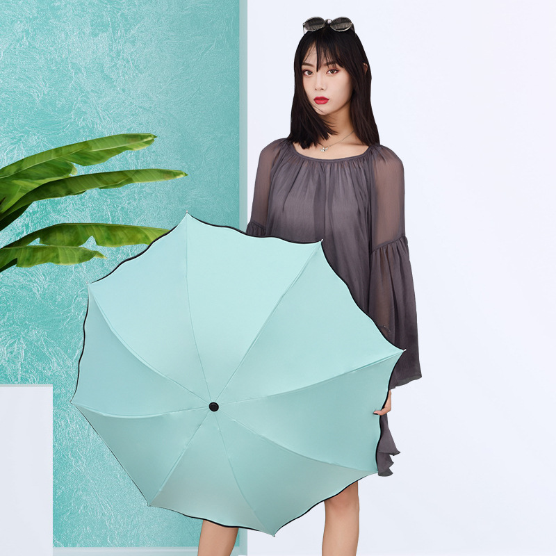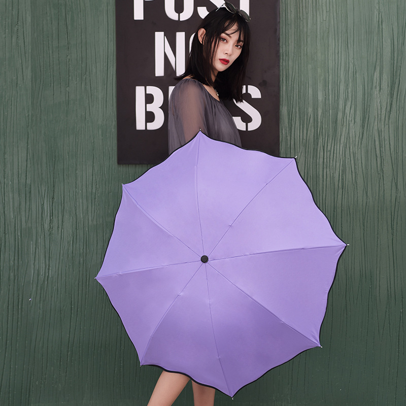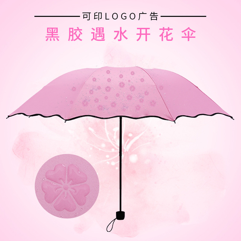 荷叶边遇水开花伞厂家直销批发三折黑胶防晒晴雨伞可印刷LOGO雨伞