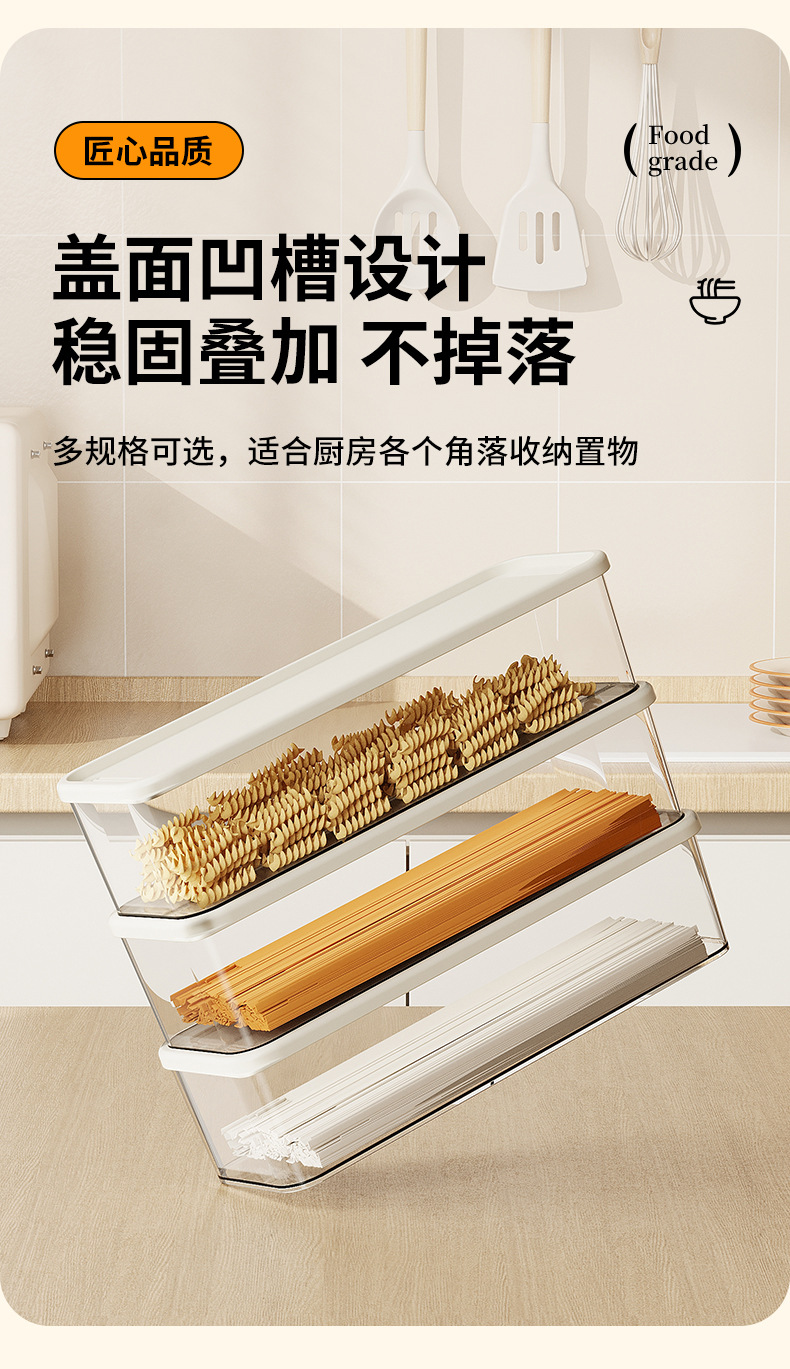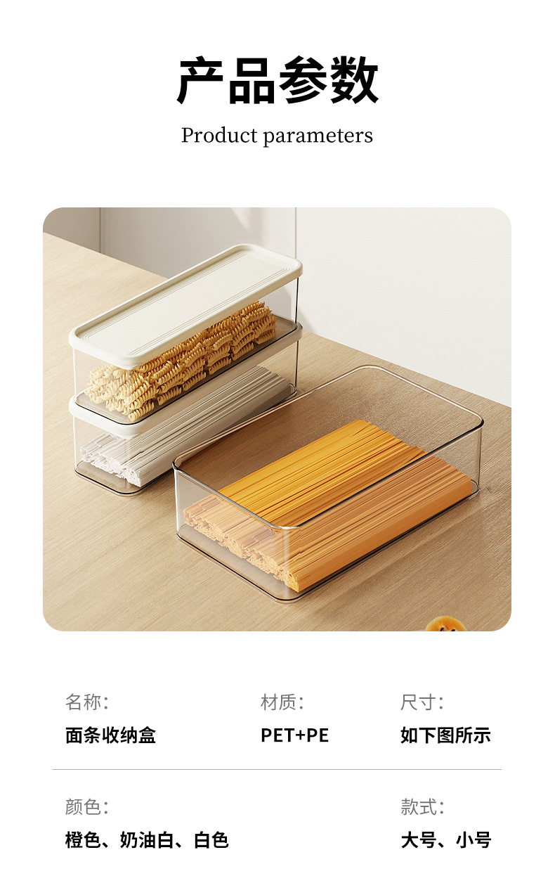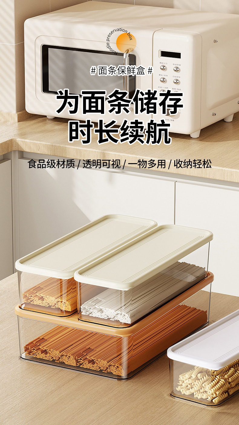 面条收纳盒杂粮意面挂面盒带盖长方形厨房冰箱密封保鲜盒批发