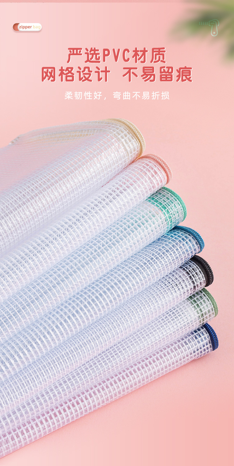 网格莫兰迪拉链袋加厚a4文件袋透明防水资料收纳袋试卷袋现货批发