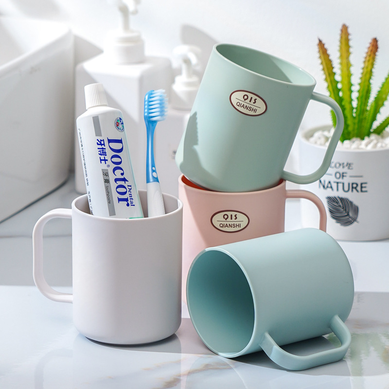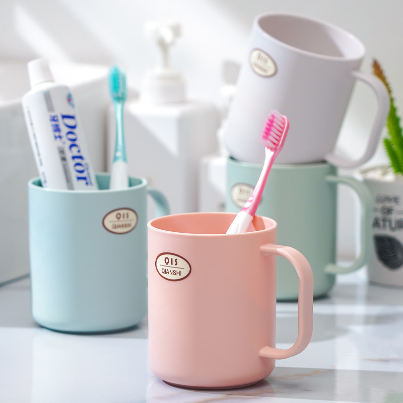 情侣纯色洗漱水杯家用卡通可爱造型杯子带手柄刷牙杯创意漱口牙缸