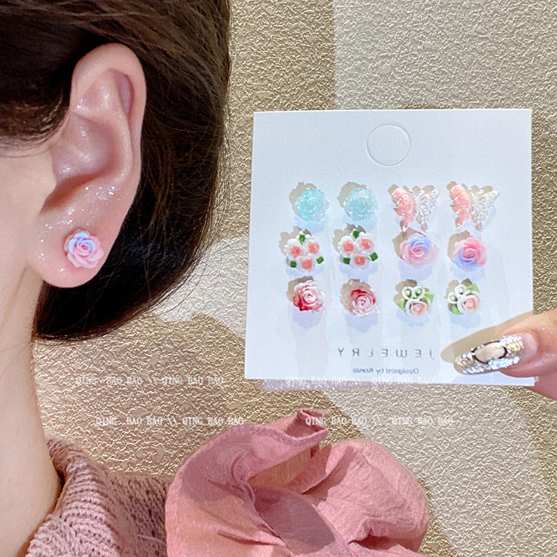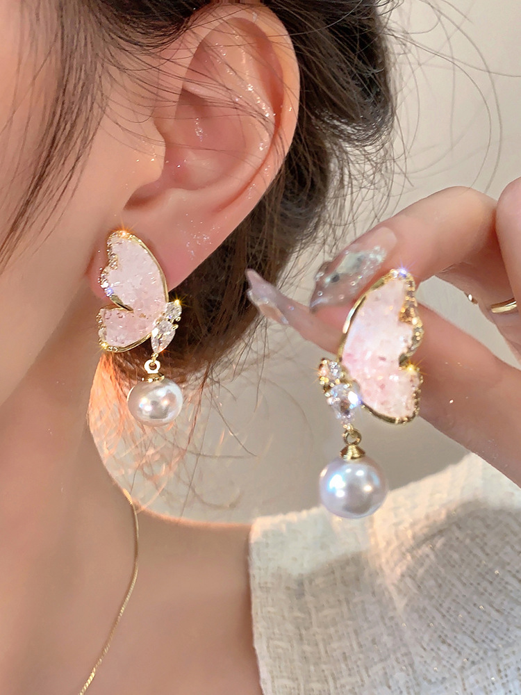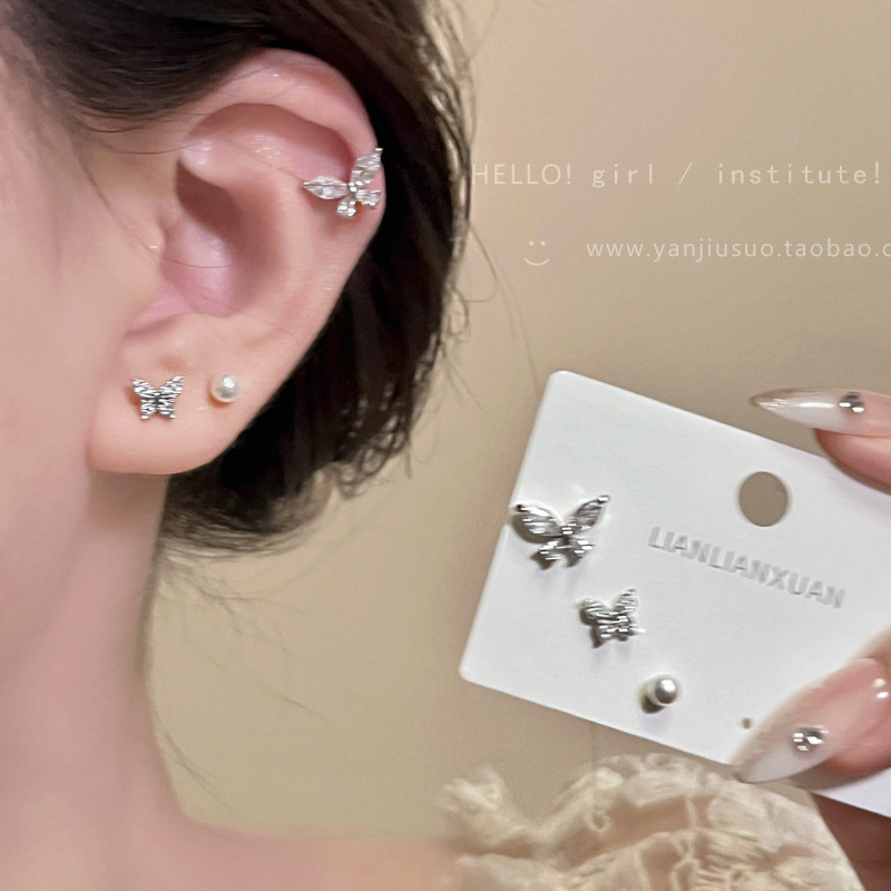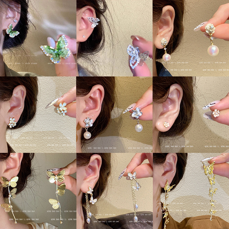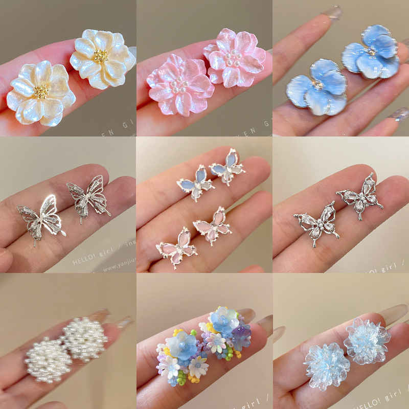 超仙蝴蝶花朵合集~S925银针轻奢微镶耳钉女2025新款爆款义乌耳饰