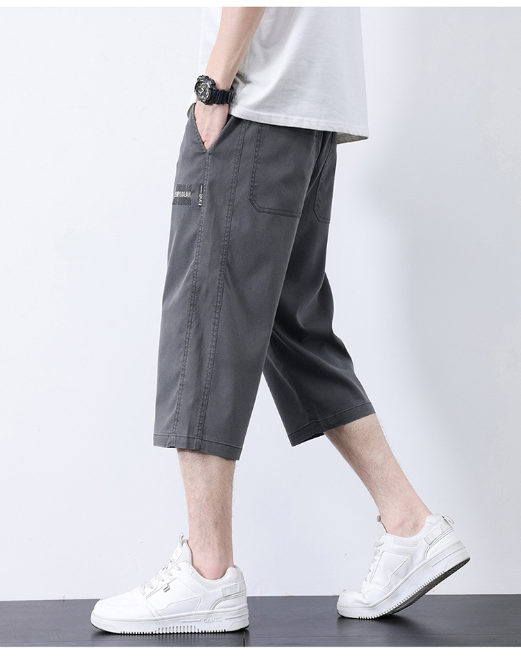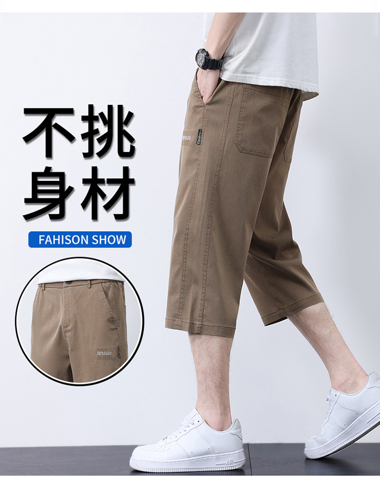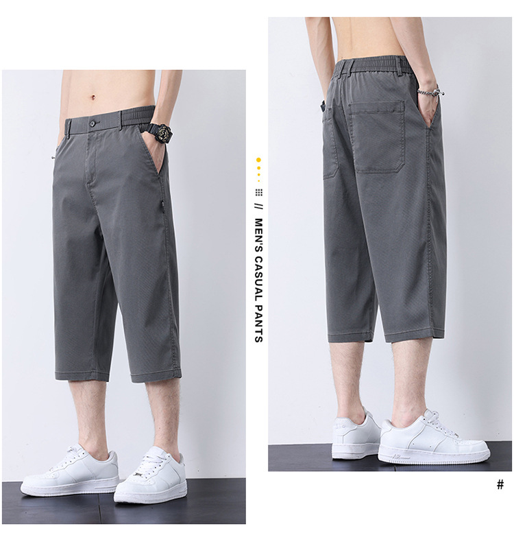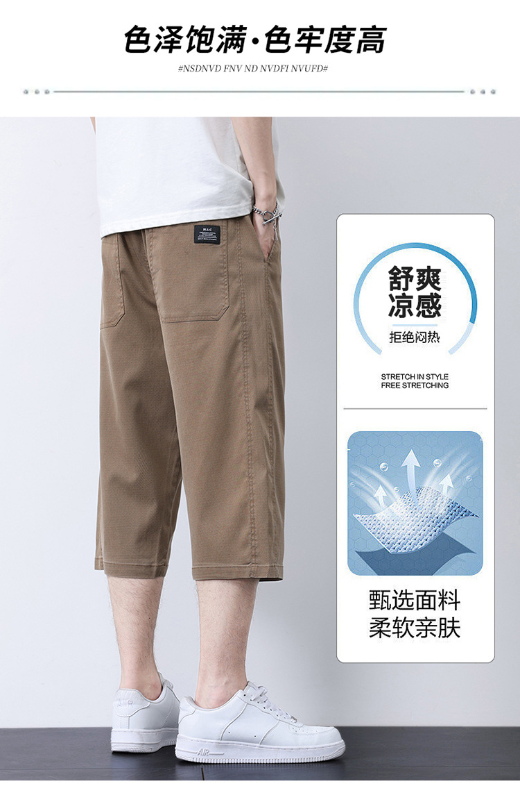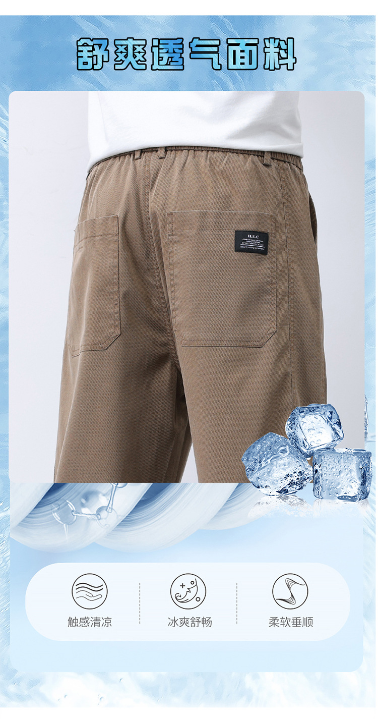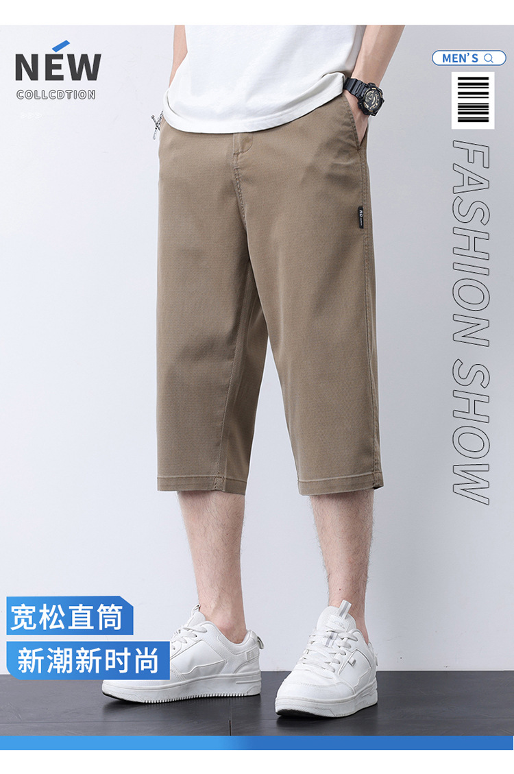莱赛尔夏季薄款七分休闲裤男士宽松直筒垂感冰丝运动速干休闲中裤