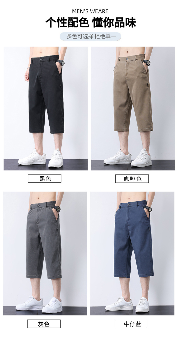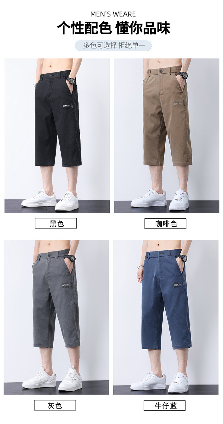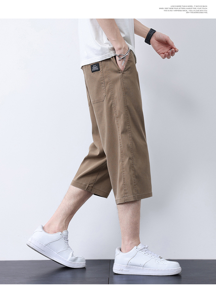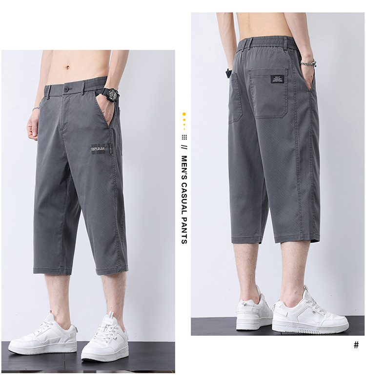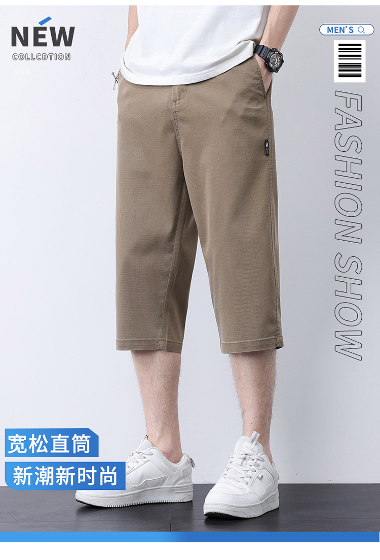 莱赛尔夏季薄款七分休闲裤男士宽松直筒垂感冰丝运动速干休闲中裤